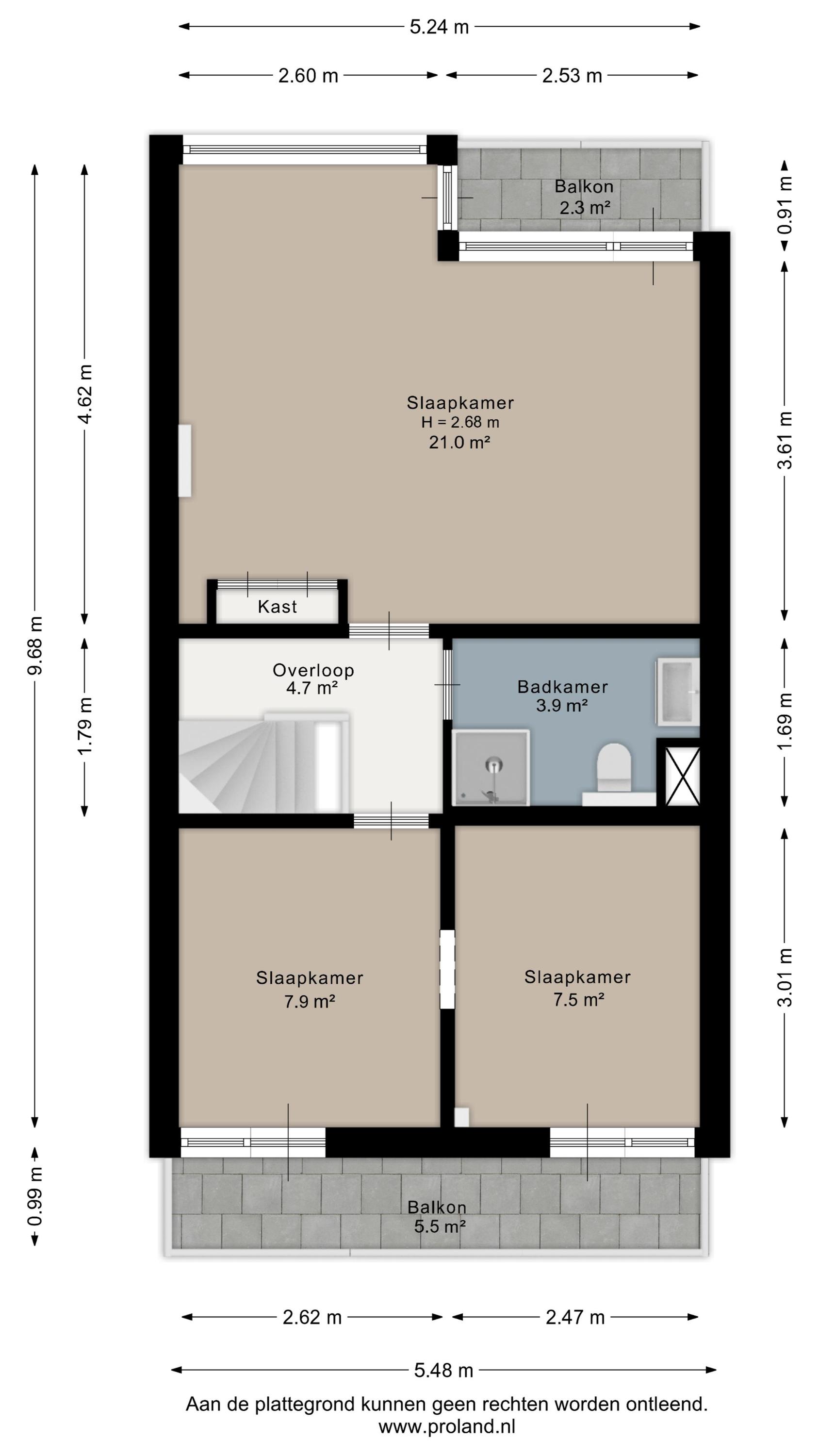 De woning beschikt in totaal over drie balkons met een gezamenlijk oppervlak van ca. 13 m², waardoor je op verschillende momenten van de dag een fijne buitenplek hebt.