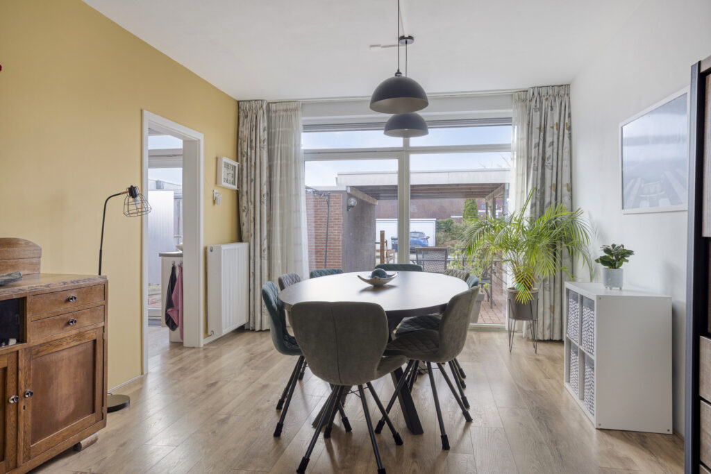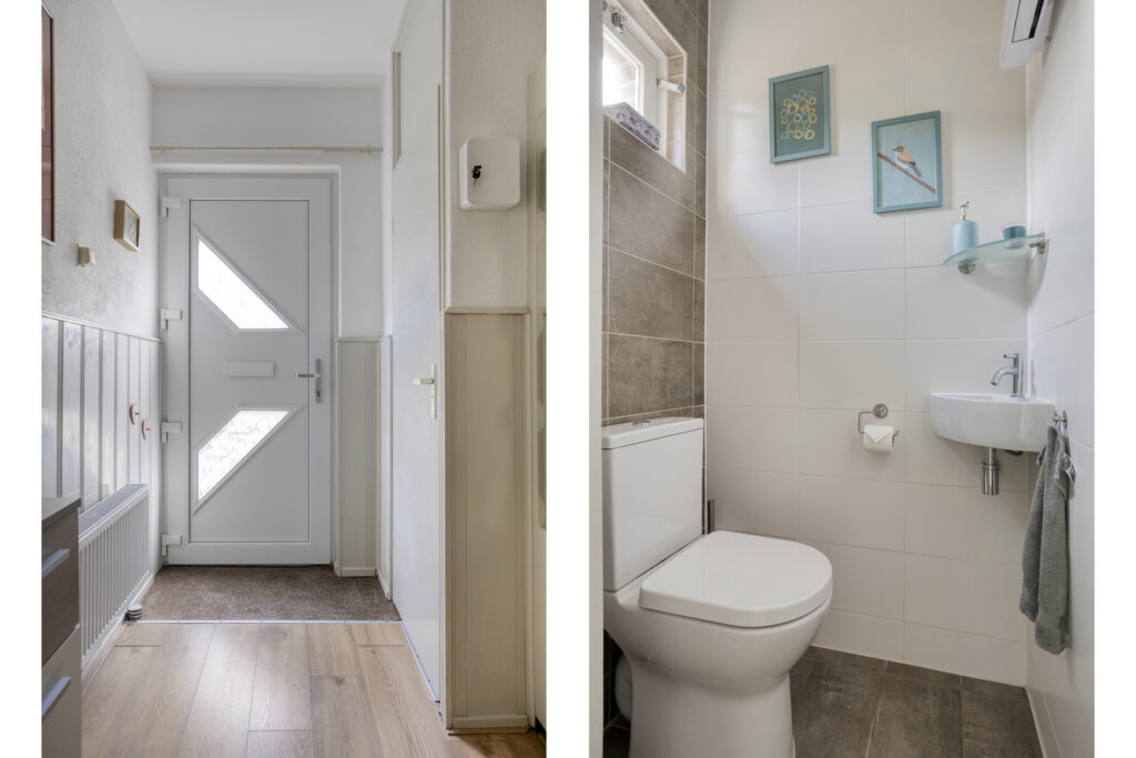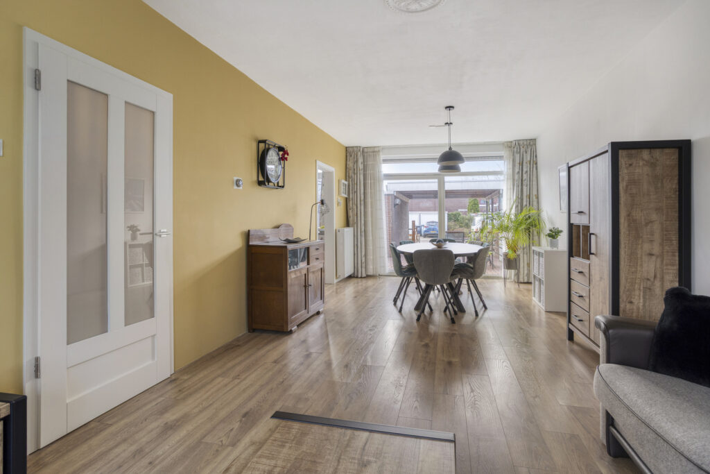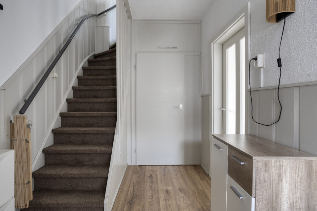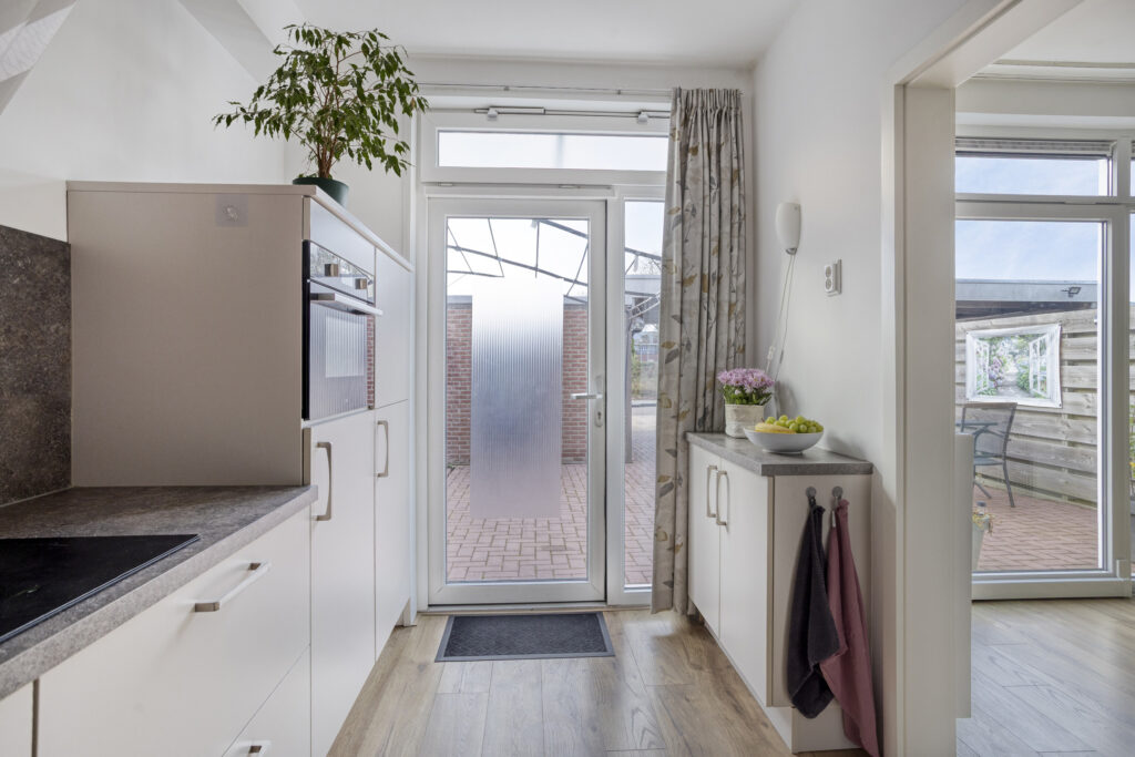 Indeling: voorentree; hal met toilet en trapopgang; woonkamer met kunststof tuindeuren; moderne open keuken (2017) met inductiekookplaat, afzuigkap, combioven, koelkast, diepvries en vaatwasser(2023)