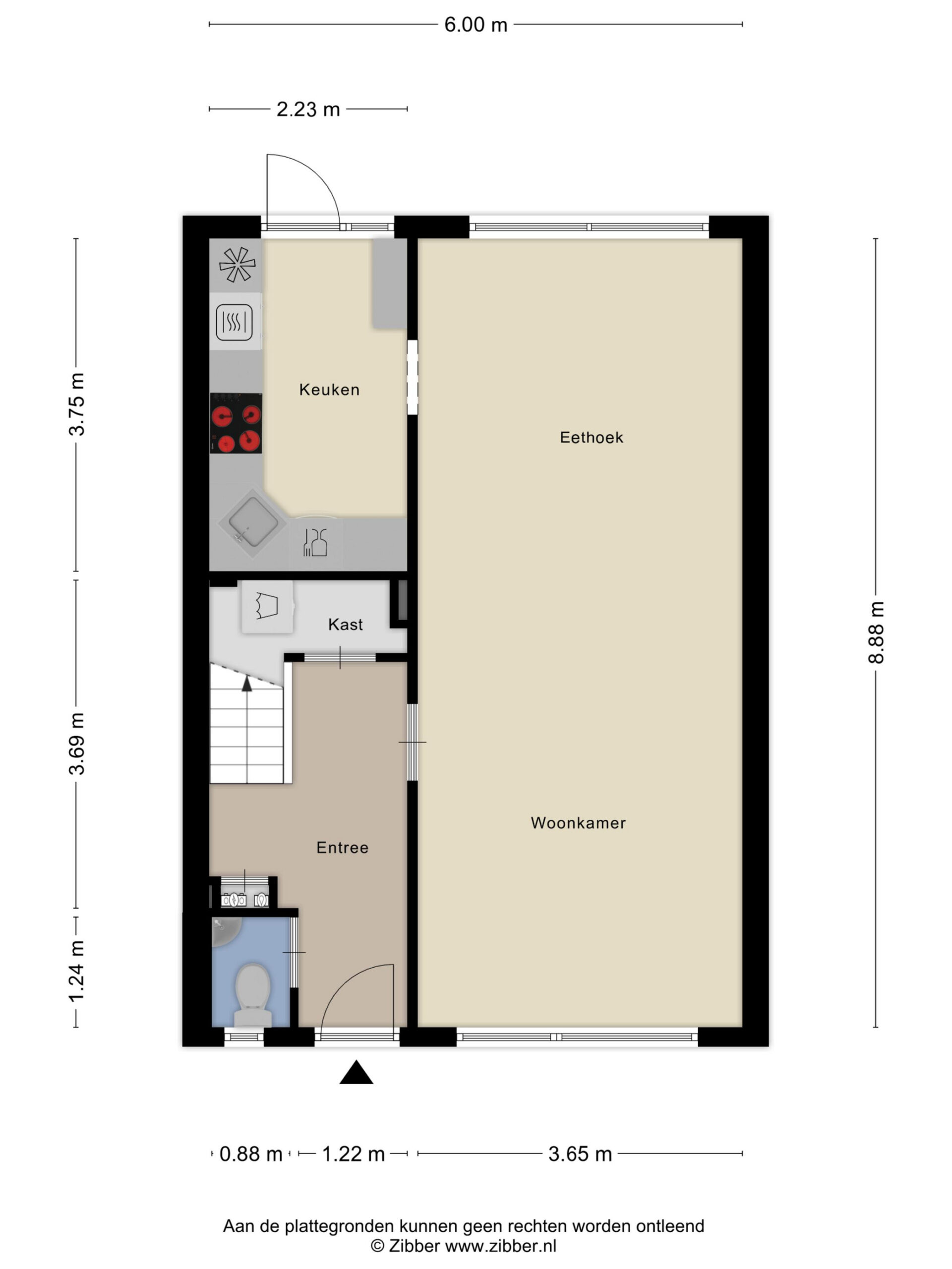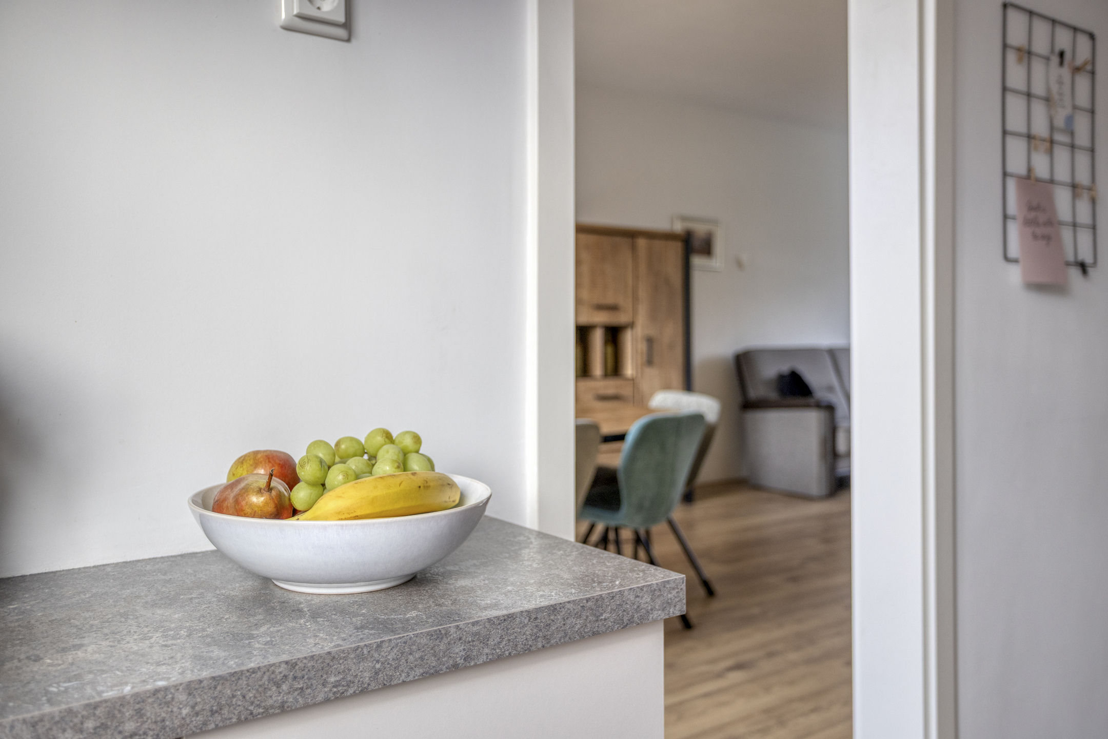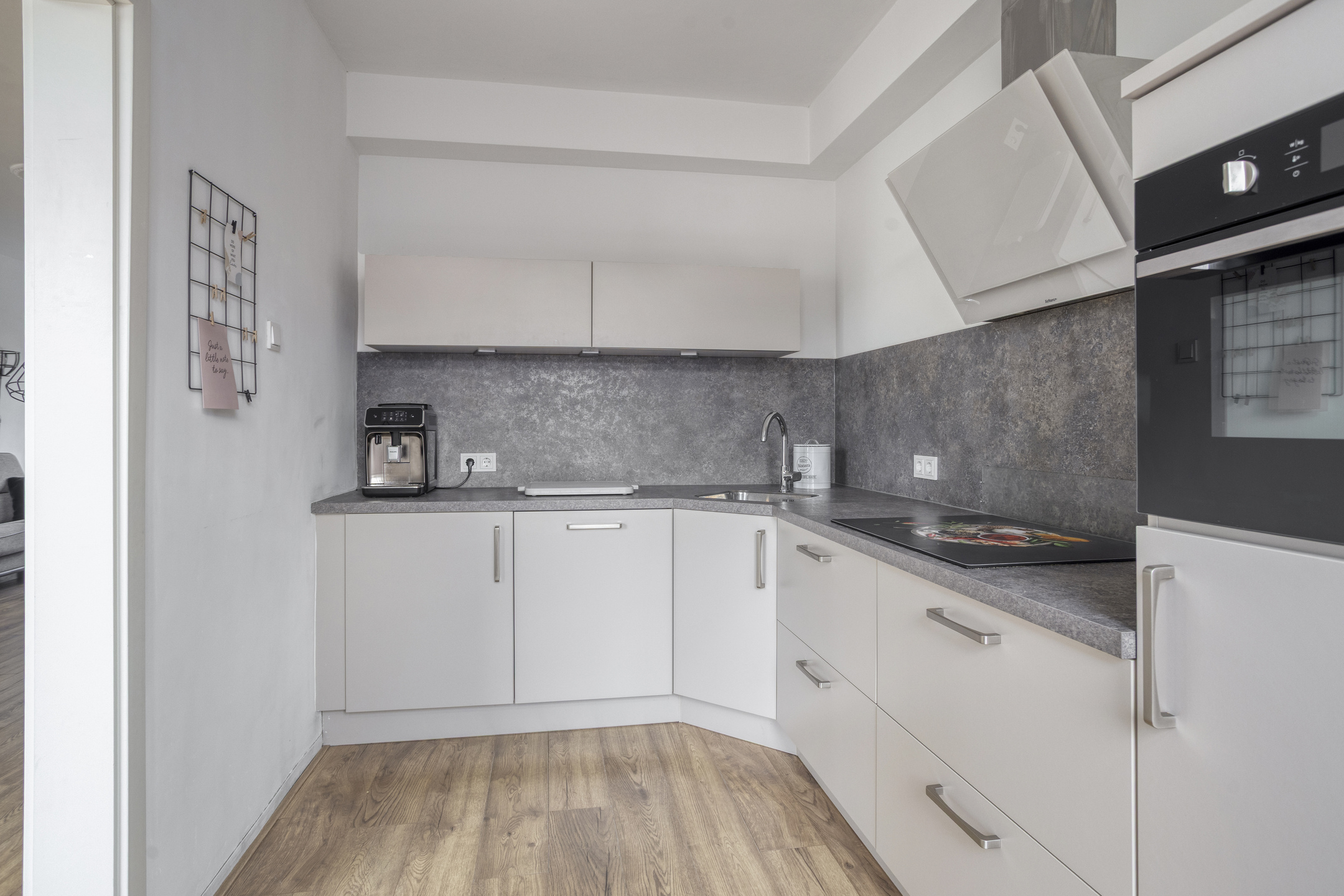 Indeling: voorentree; hal met toilet en trapopgang; woonkamer met kunststof tuindeuren; moderne open keuken (2017) met inductiekookplaat, afzuigkap, combioven, koelkast, diepvries en vaatwasser(2023)