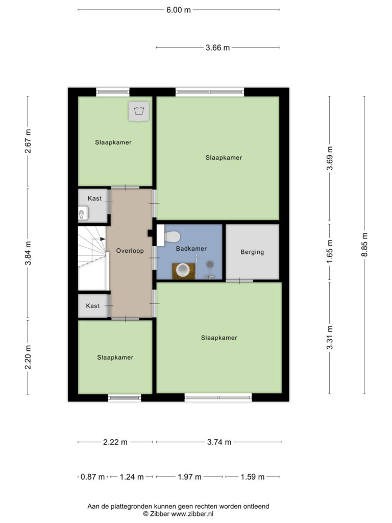 eerste verdieping: overloop voorzien van handige bergkasten; vier slaapkamers; badkamer met douche en tweede toilet.