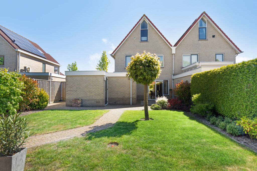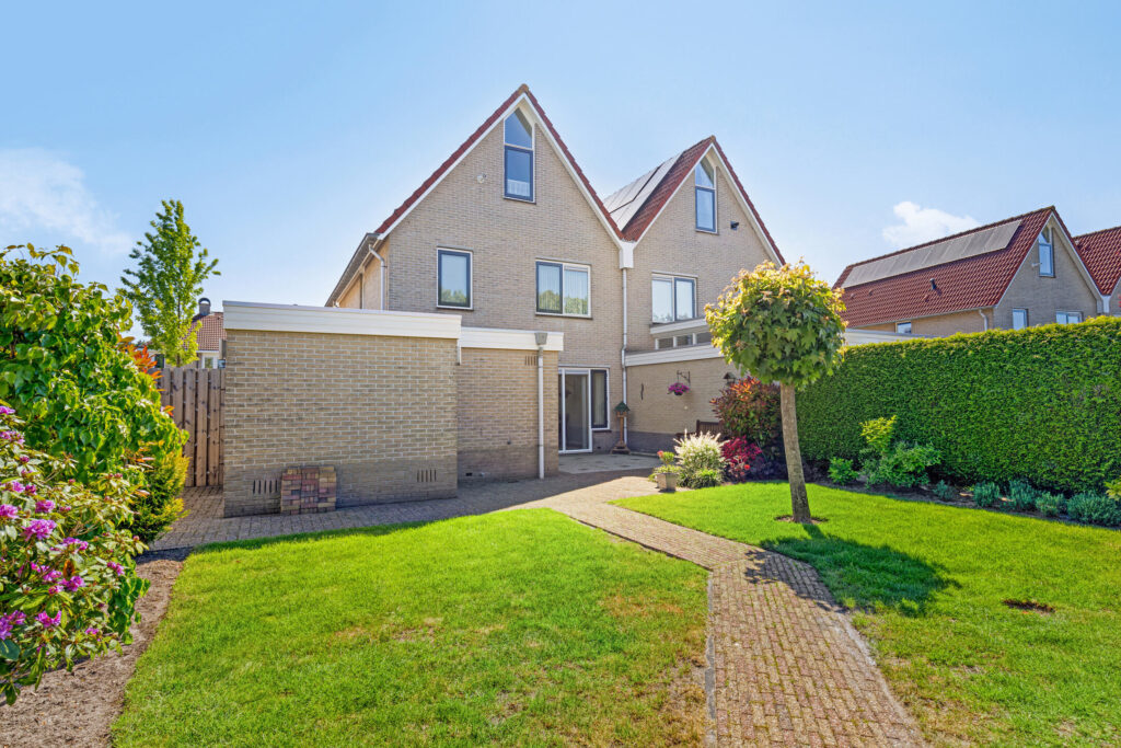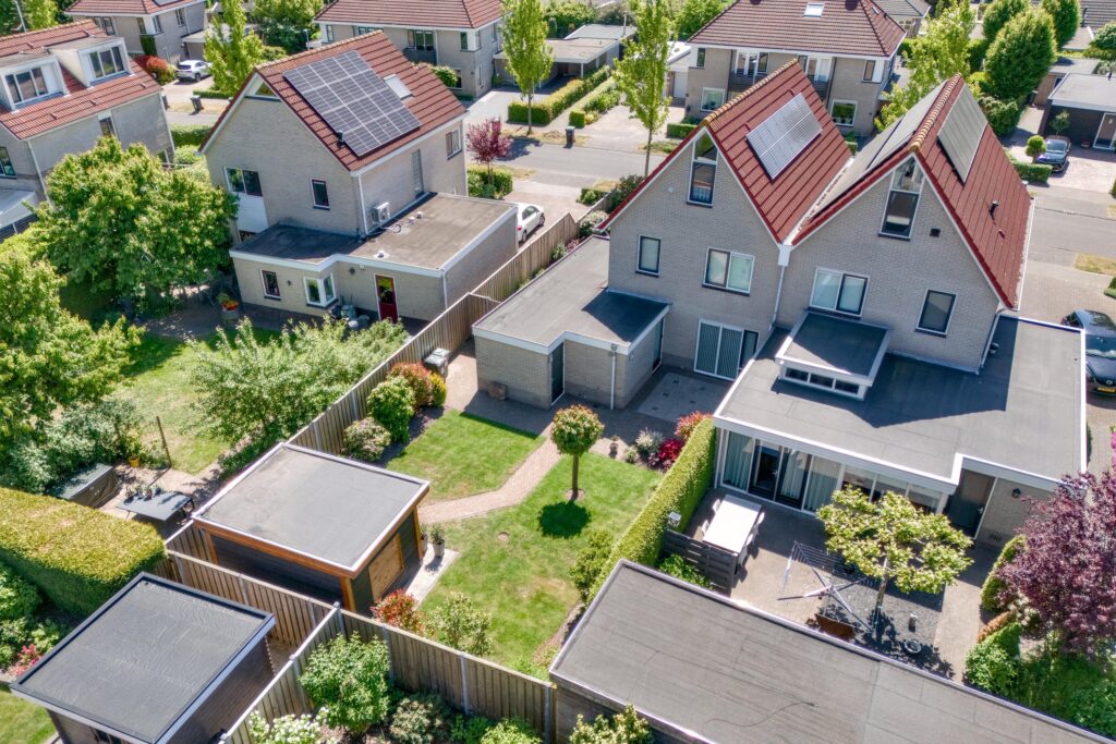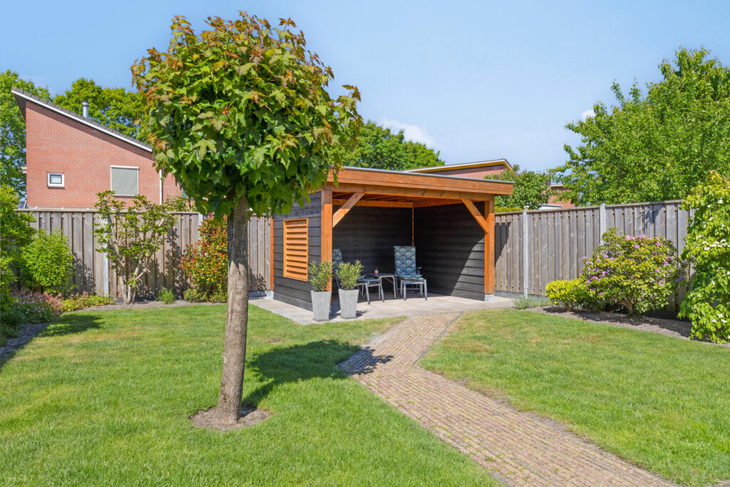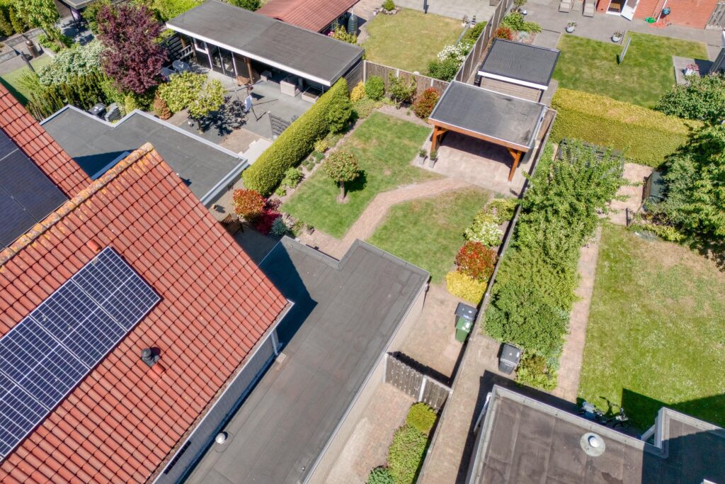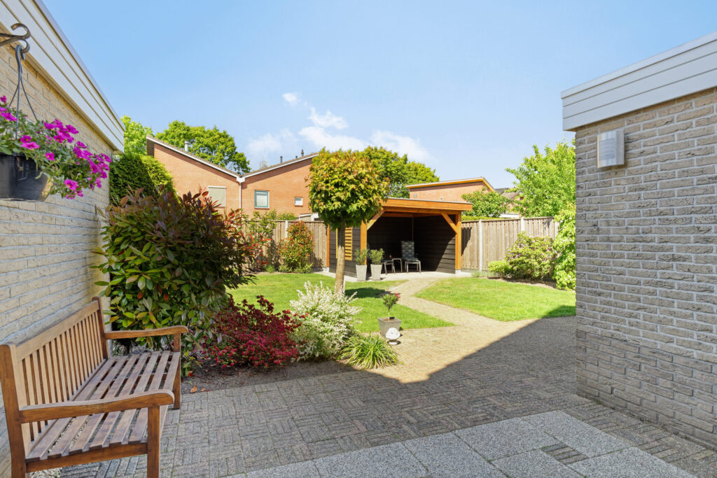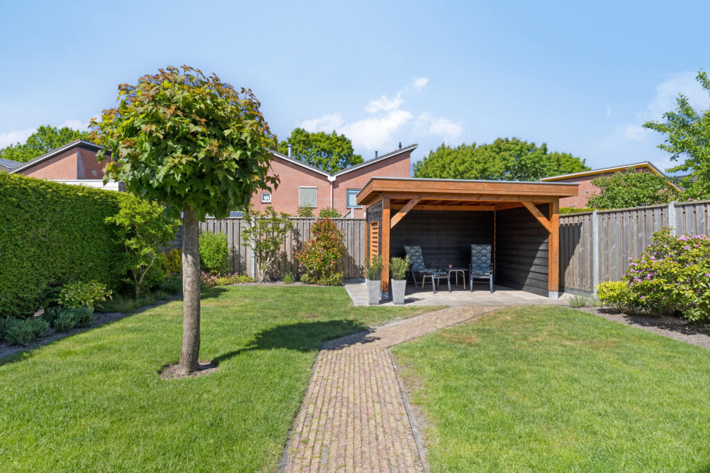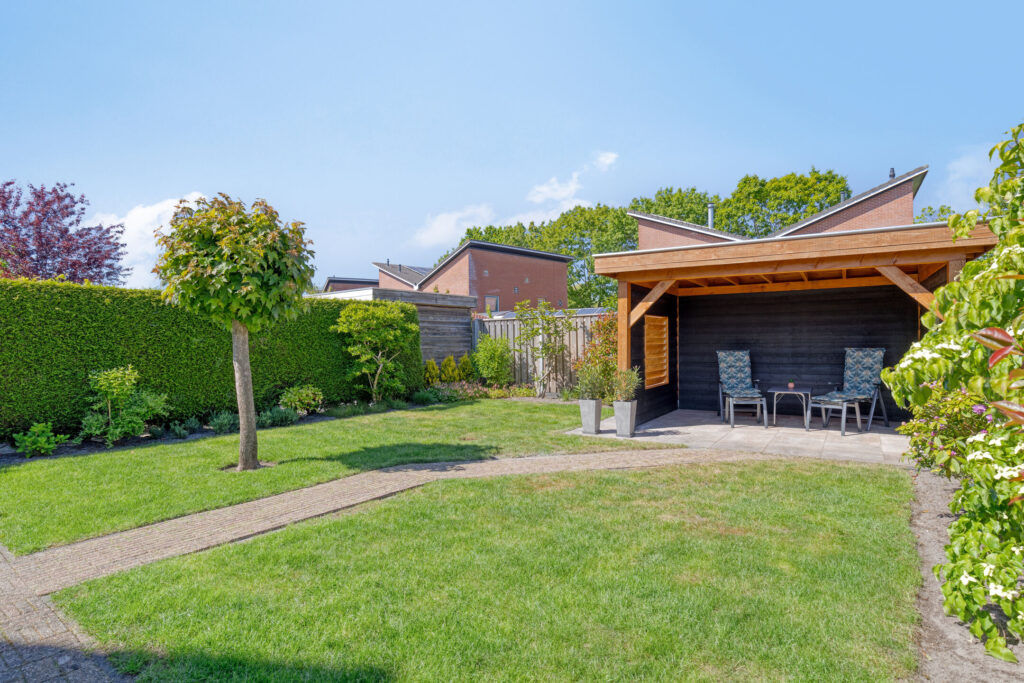 Aan de achterzijde beschikt de woning over een verzorgde en zonnige tuin met veel privacy. In de tuin is een sfeervolle overkapping geplaatst waar je heerlijk kan genieten van het buitenleven. Het geheel staat op een kavel van 381m2 en er is op de oprit parkeerruimte voor meerdere auto's.