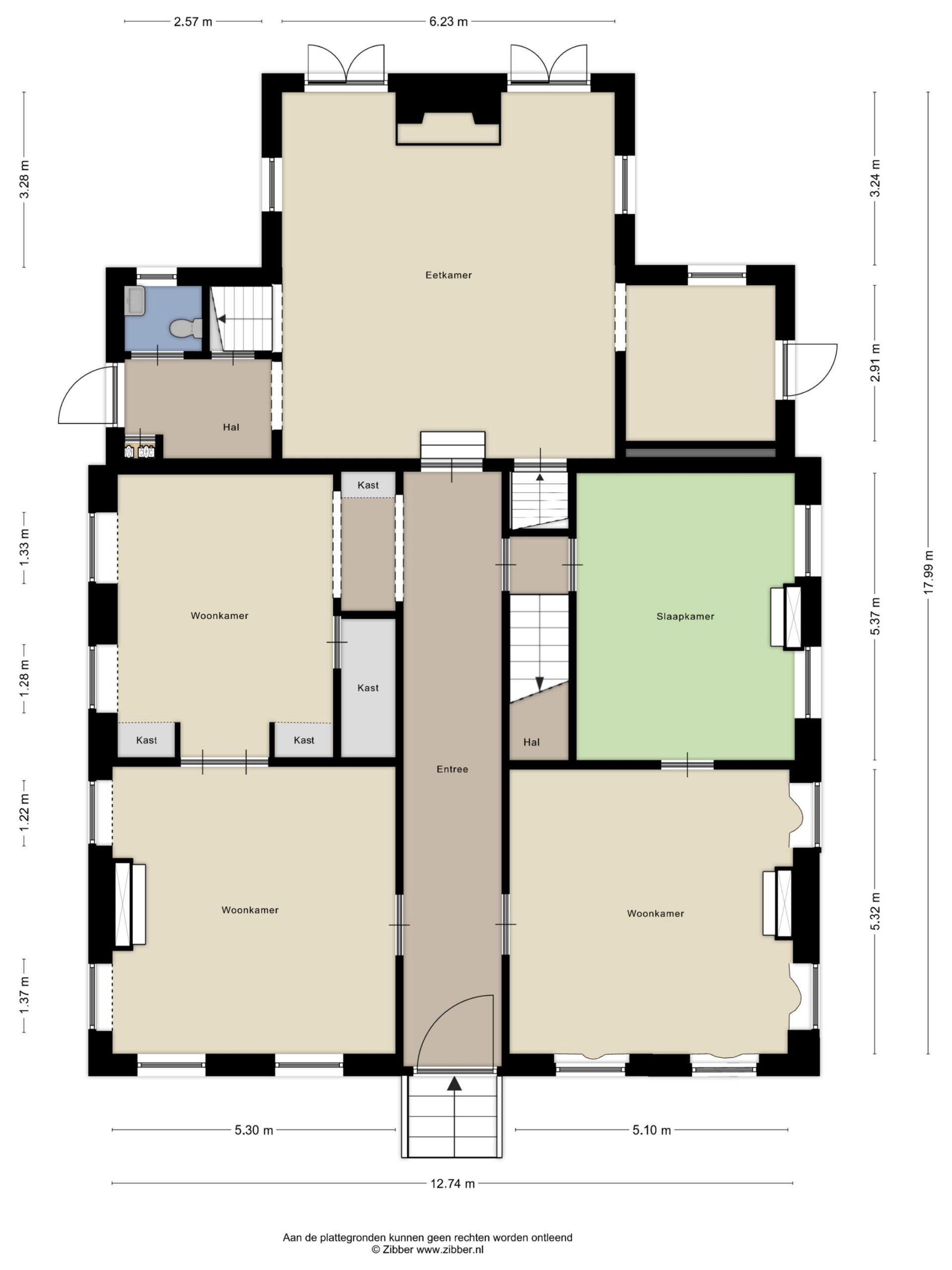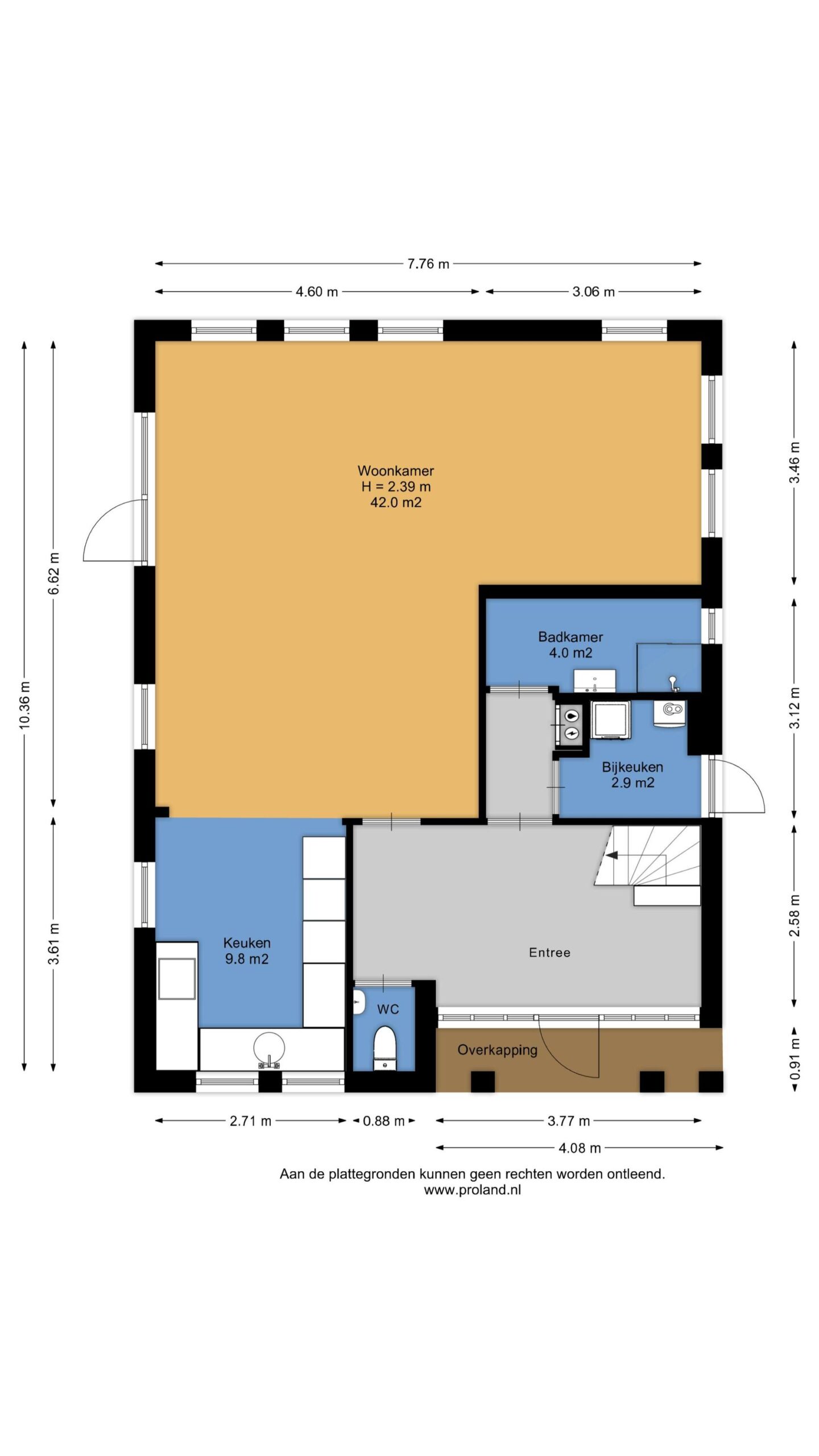 Begane grond: portiek met brievenbussen, liftinstallatie, intercom en trappenhuis.