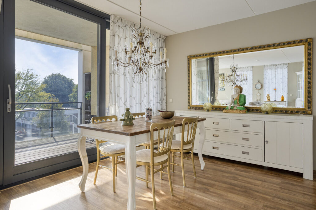 3e verdieping: entree appartement; lange hal met royale kastenwanden tot aan het plafond, waarin ontzettend veel opbergmogelijkheden; woonkamer met ruime eethoek en toegang naar het balkon; open keuken met moderne keukenopstelling voorzien van inductiekookplaat, afzuigkap, koelkast en combi-oven(Pelgrim 2024) vaatwasser (Bosch 2025); wasruimte met cv-opstelling bereikbaar via deur in de woonkamer; via de centrale hal is tevens bereikbaar de badkamer met dubbele wastafel, extra ruim en ligbad en douche; toilet; slaapkamer met vaste kastenwand; tweede slaapkamer en vervolgens de derde slaapkamer/studeerkamer.