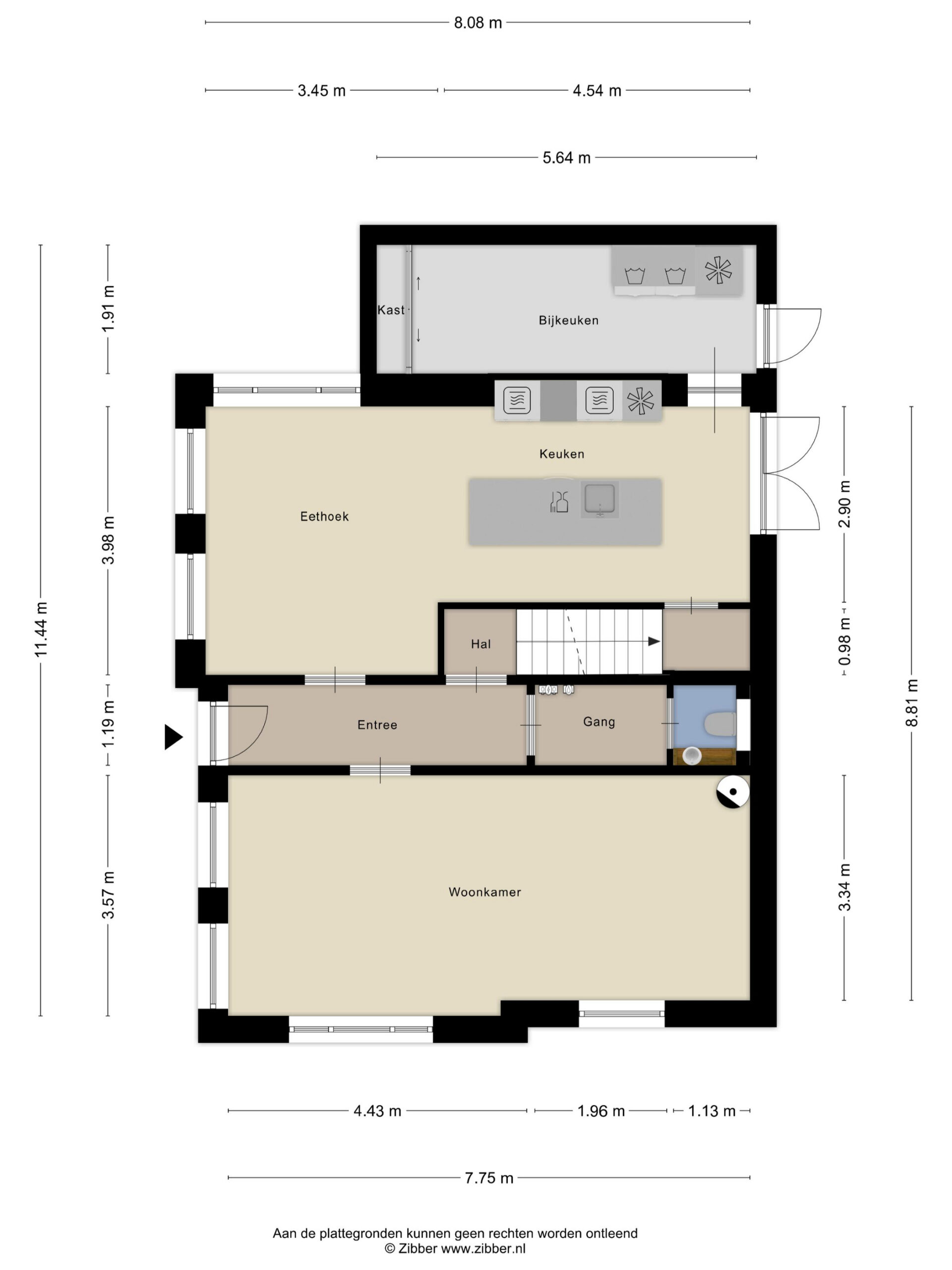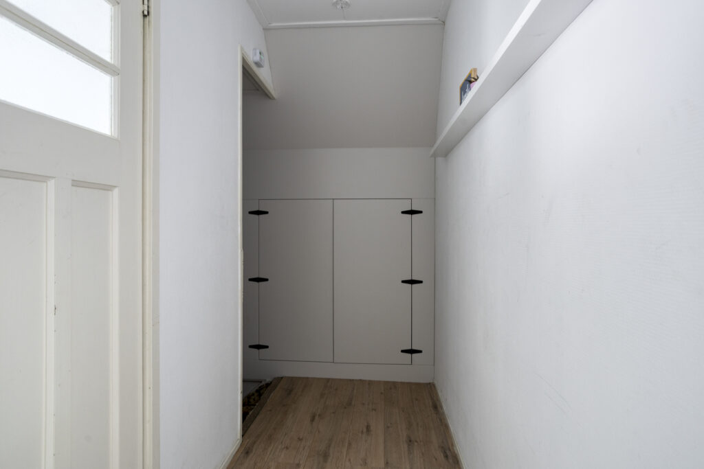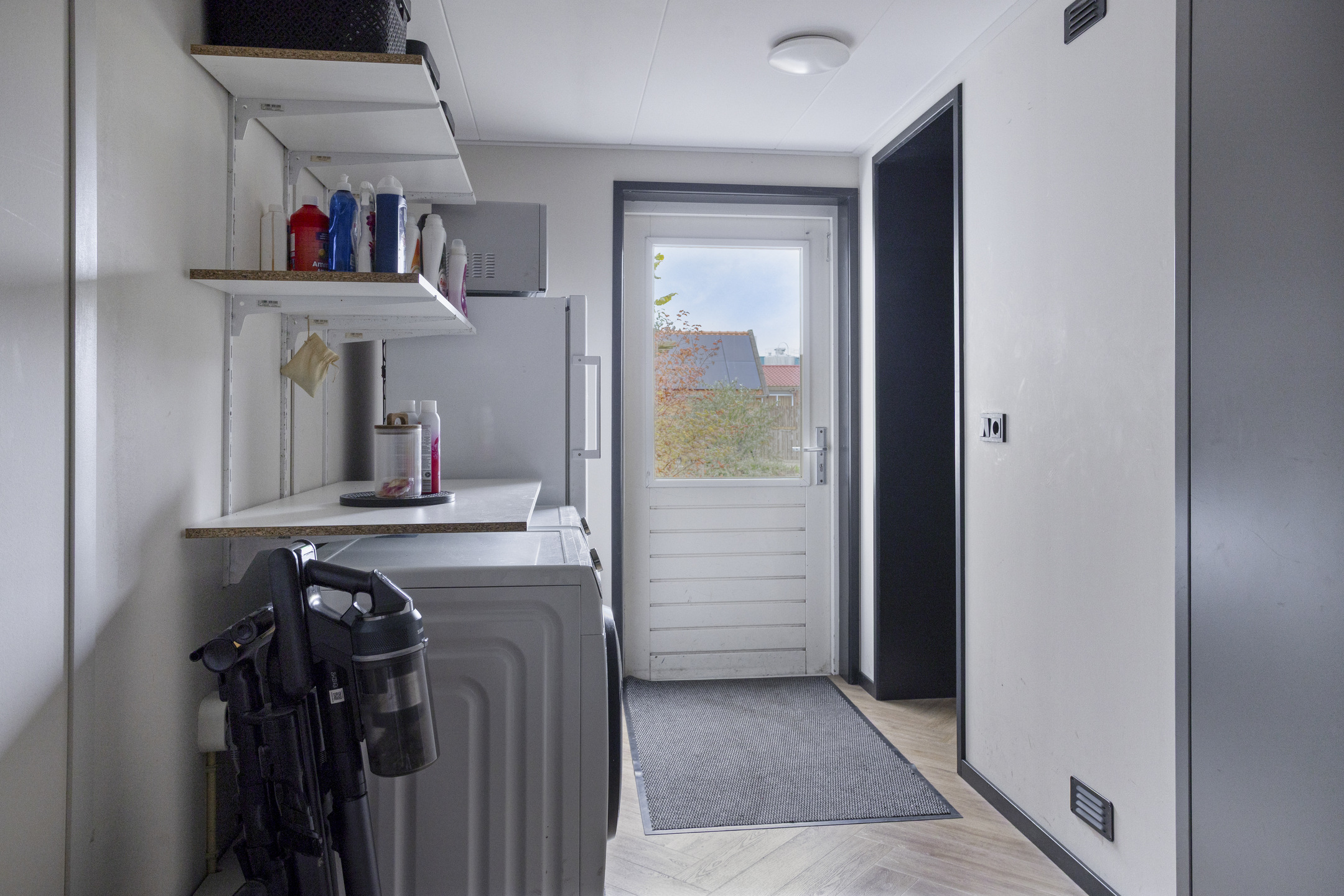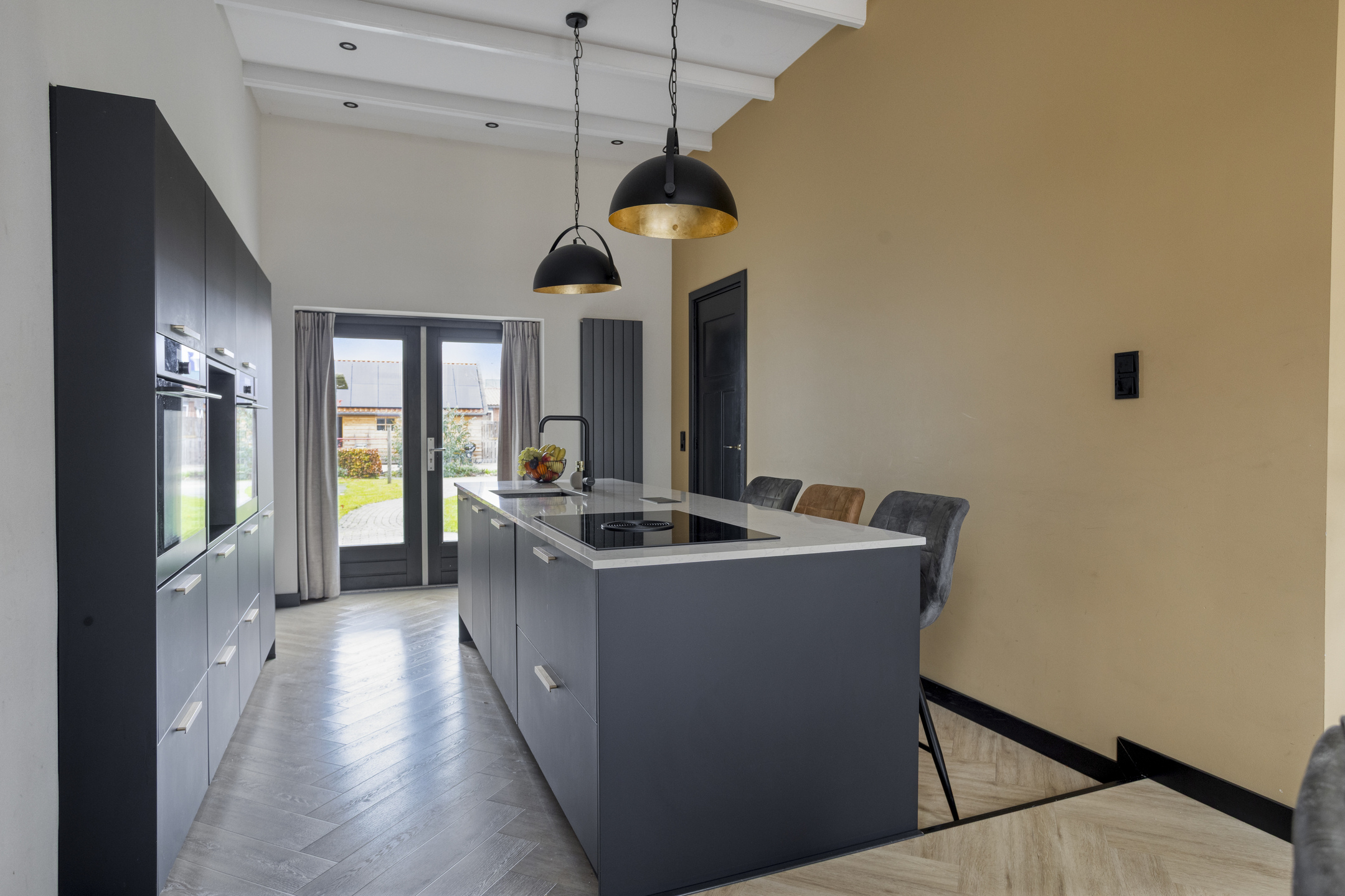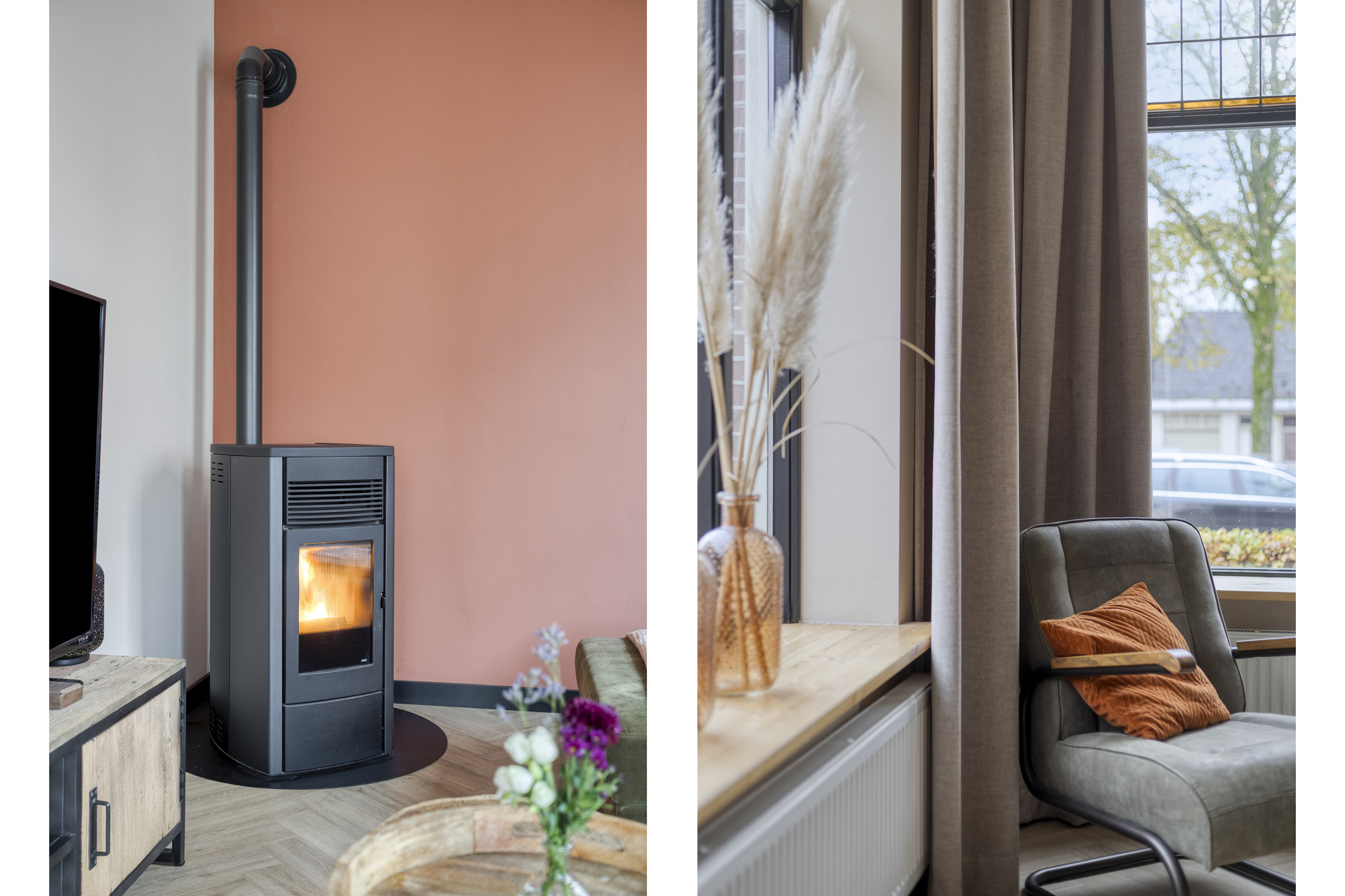 Indeling: voorentree; hal met meterkast, toilet en trapopgang; woonkamer met pelletkachel; woonkeuken met moderne keukenopstelling die voorzien is van inductiekookplaat met afzuiging; koelkast, oven, stoomoven en vaatwasser; kelderruimte; bijkeuken/achterhal met witgoedaansluiting en achterentree.