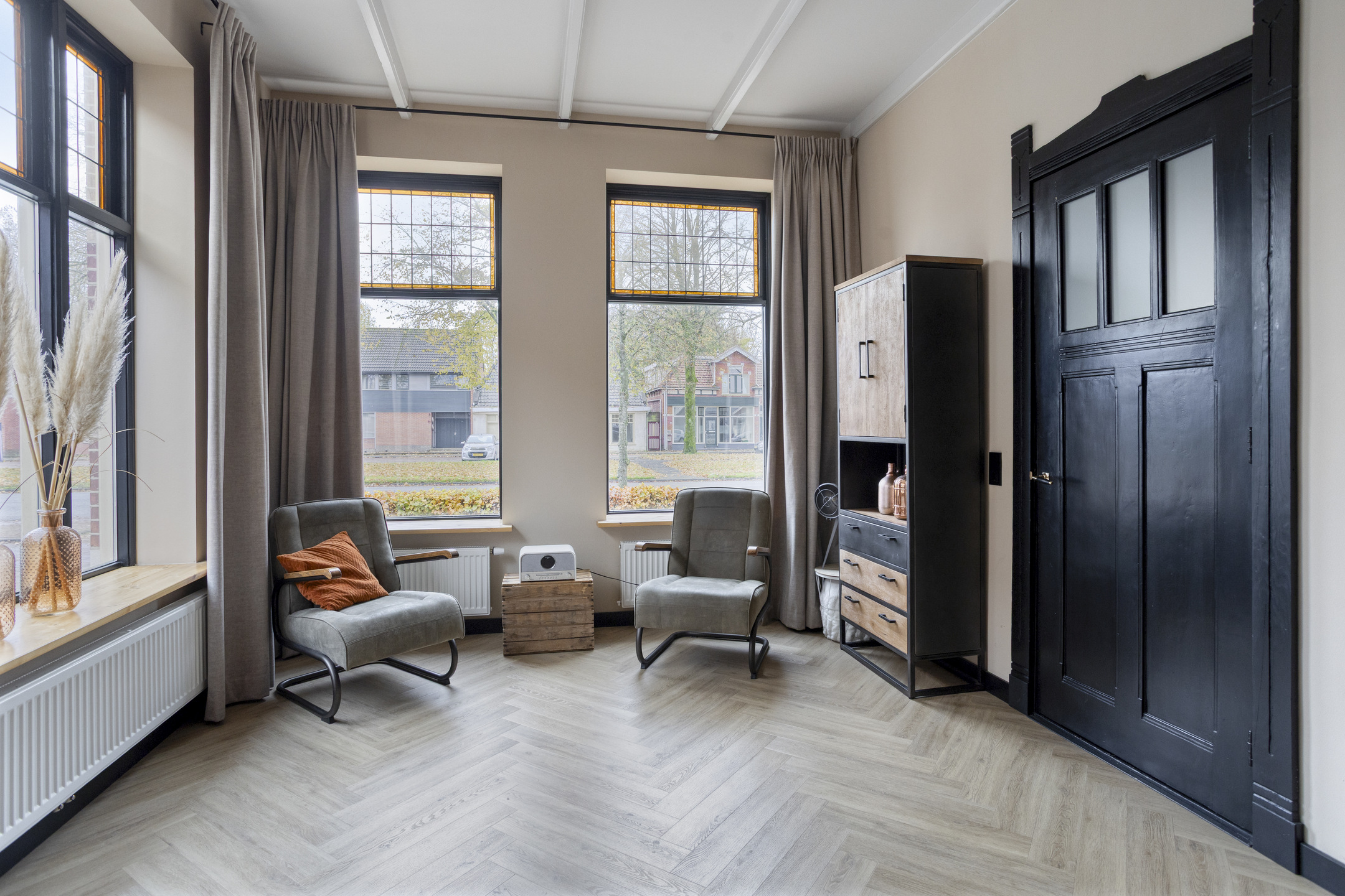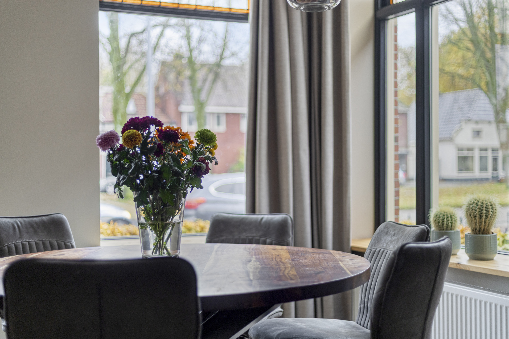 Op een goed bereikbare locatie nabij vele voorzieningen staat deze karakteristieke vrijstaande woning met een ruime zonnige achtertuin en vrijstaande houten garage. Het woonhuis is afgelopen jaren flink gemoderniseerd. Op de begane grond is de woning gestript, geïsoleerd en opnieuw afgewerkt met strak gestucte wanden. De woonkeuken is smaakvol gemoderniseerd en van alle gemakken voorzien. De woonkeuken is een heerlijke plek om te tafelen voor het hele gezin. Naast de keuken is ook de woonkamer comfortabele plek om tot rust te komen. Het is gemoderniseerd, voorzien van visgraat pvc vloer en sfeervolle pelletkachel.
