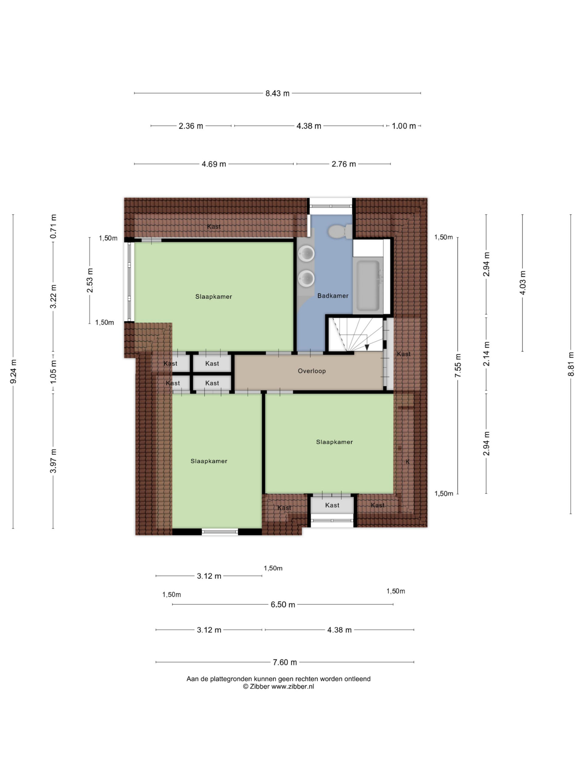 Eerste verdieping: overloop; drie slaapkamers; badkamer met ligbad, wastafelmeubel en toilet.