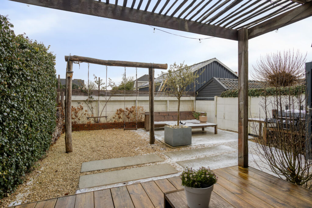 Een absolute blikvanger is de royale overkapping/veranda met gashaard. Hier kunt u het hele jaar door comfortabel buiten zitten — of het nu gaat om lange zomeravonden of gezellige wintermomenten. Deze ruimte vormt een verlengstuk van de woning en biedt een heerlijke plek om te ontspannen of gasten te ontvangen.
