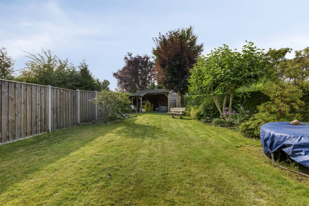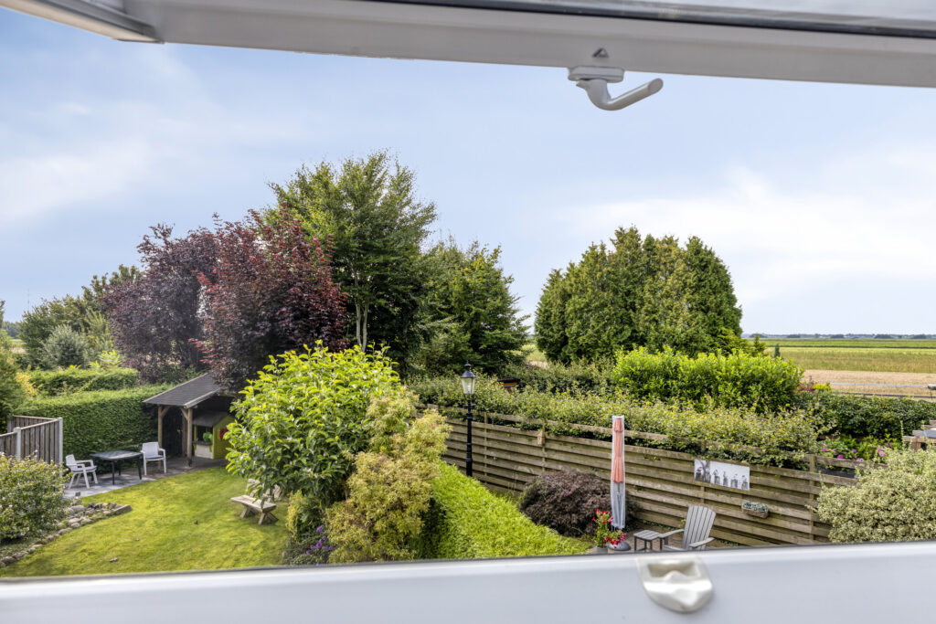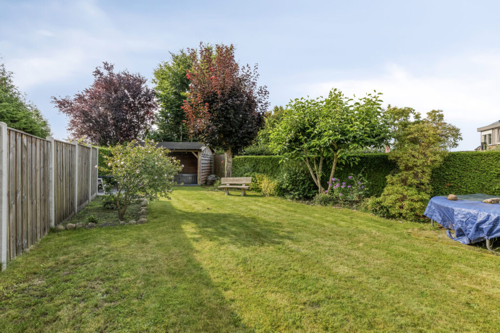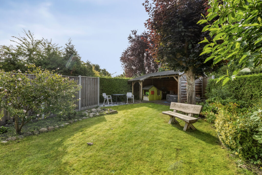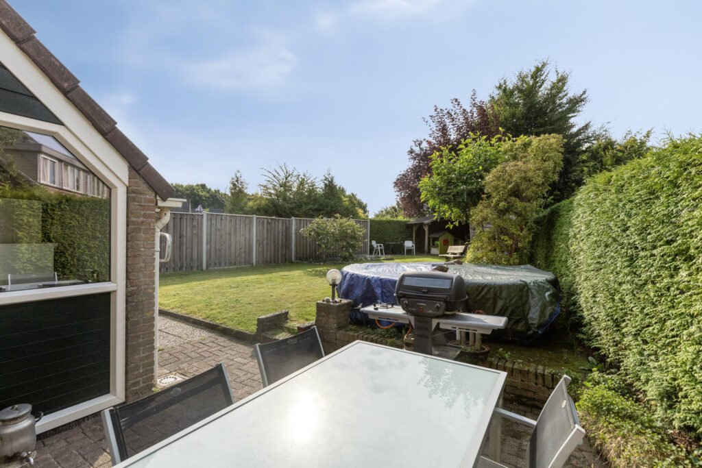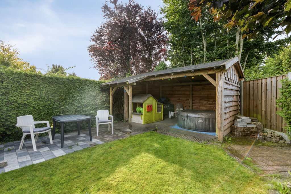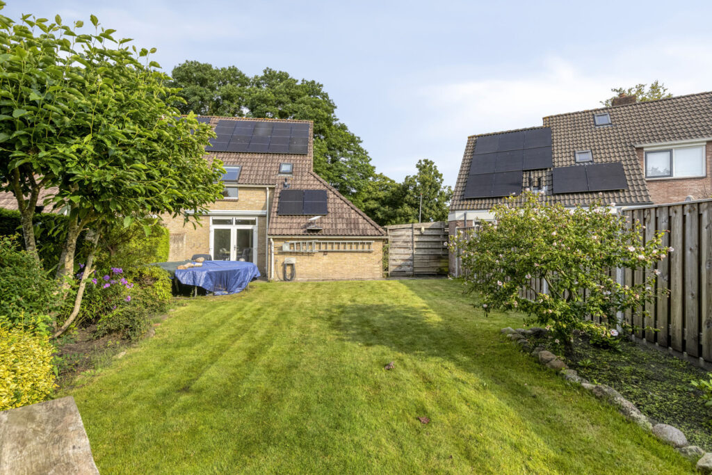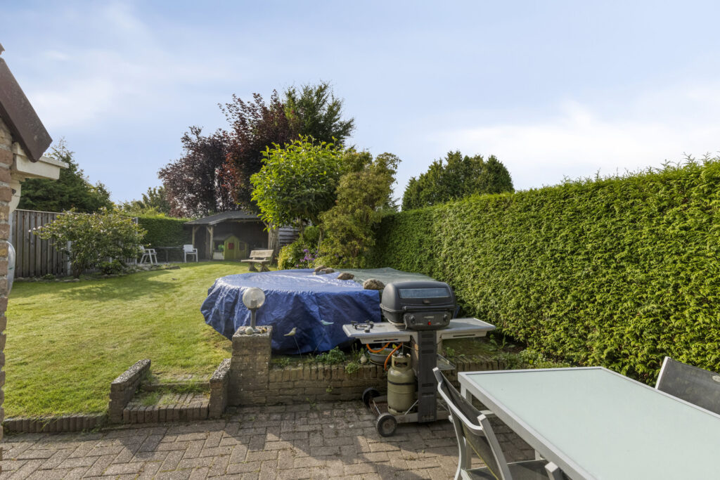 De zonnige op het zuiden gelegen tuin is bereikbaar via een achterom (berging/carport) en beschikt over een terrasoverkapping. Er is veel privacy en terrassen om in zon- en schaduw te zitten. De verzorgde tuin is daarmee de perfecte plek om te ontspannen of samen te genieten met familie en vrienden.