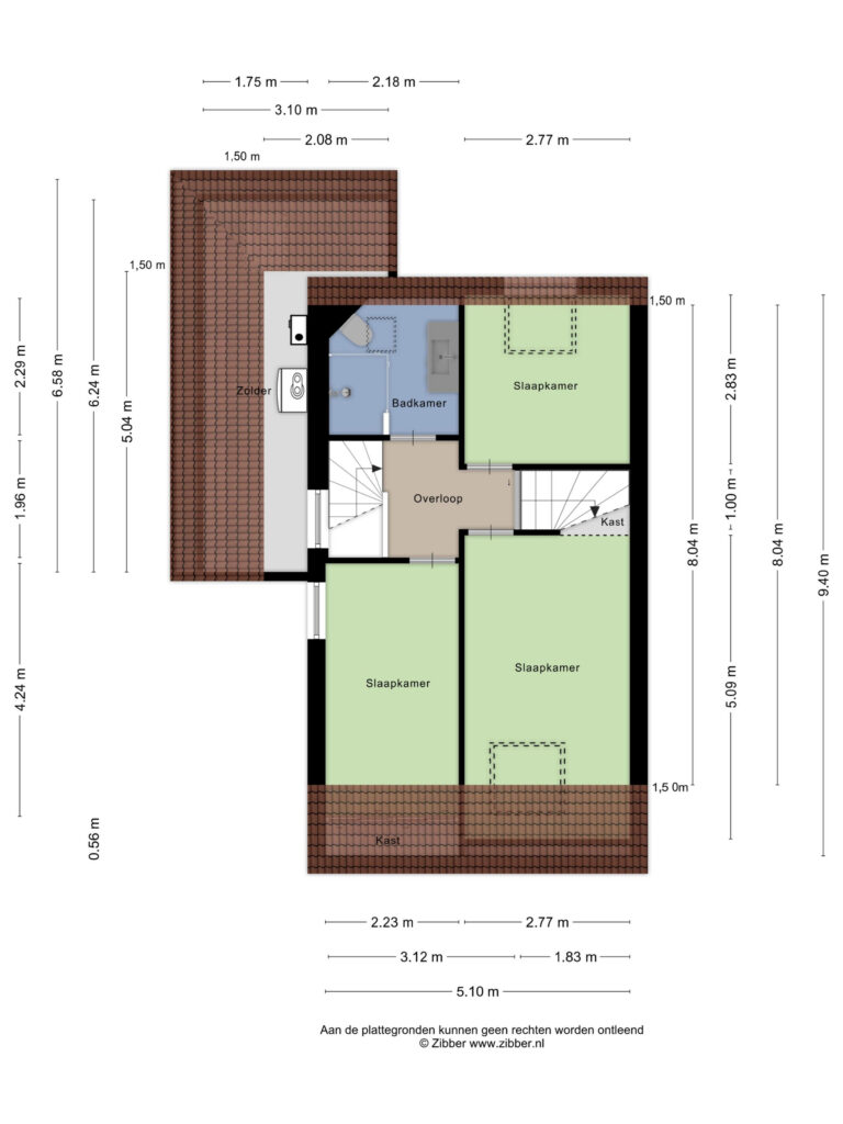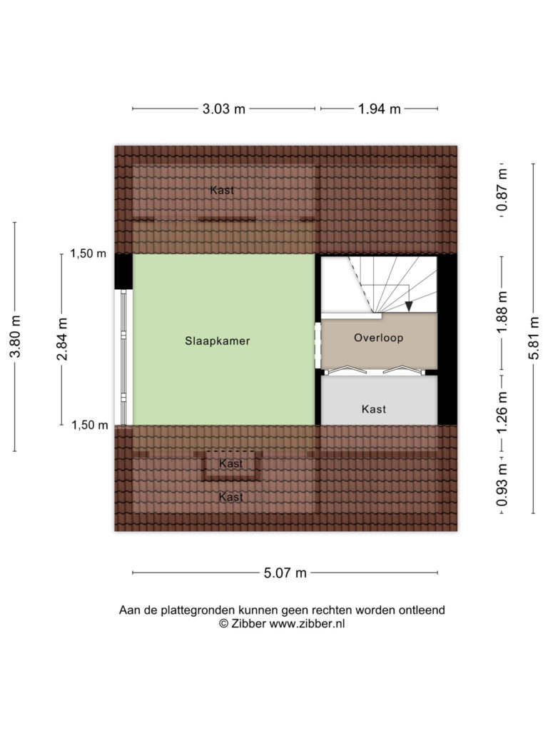 Tweede verdieping: bergzolder en vierde slaapkamer.