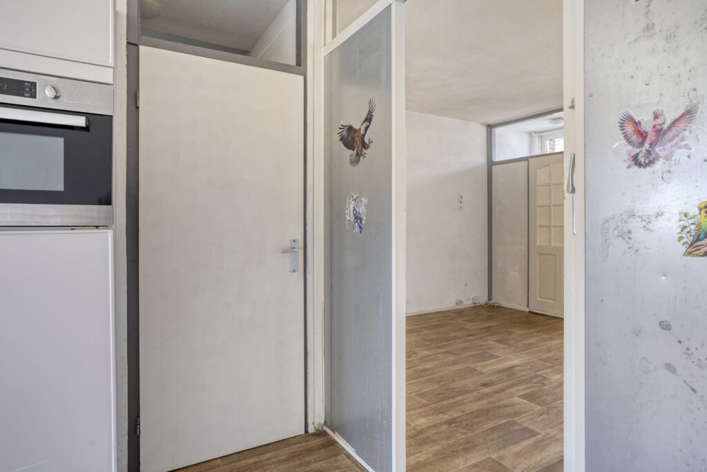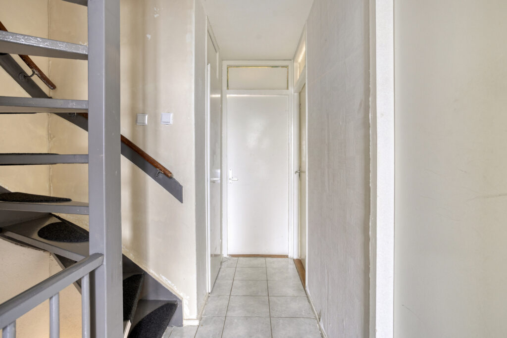 Indeling: entree/hal met meterkast; straatgerichte lichte doorzonwoonkamer; halfopen keuken met keukenopstelling die voorzien is van inductiekookplaat, afzuigkap, vaatwasser, koelkast en magnetron; tussenhal met trapopgang en toilet.