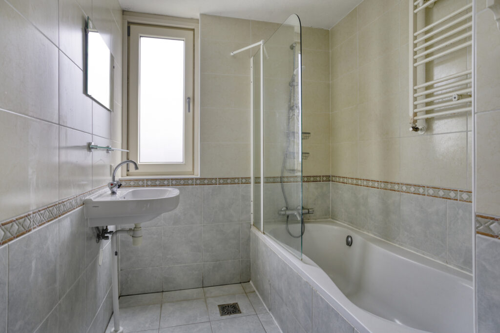 Eerste verdieping: overloop met bergkast; drie slaapkamers; badkamer met douche/ligbad, wastafel en tweede toilet.