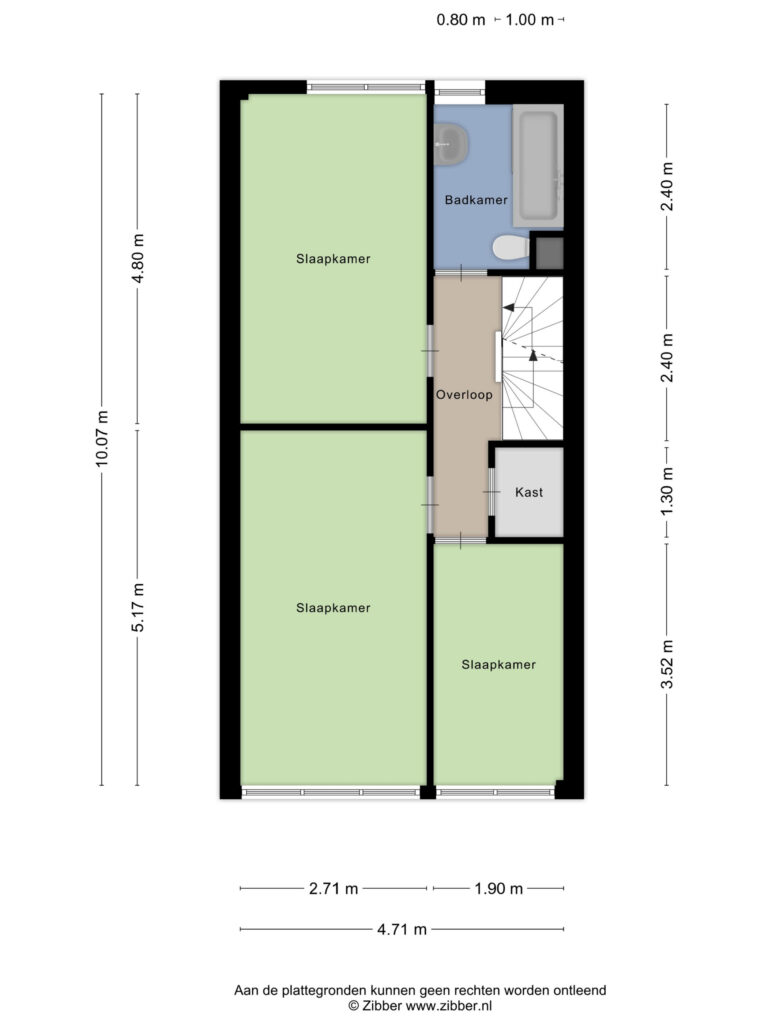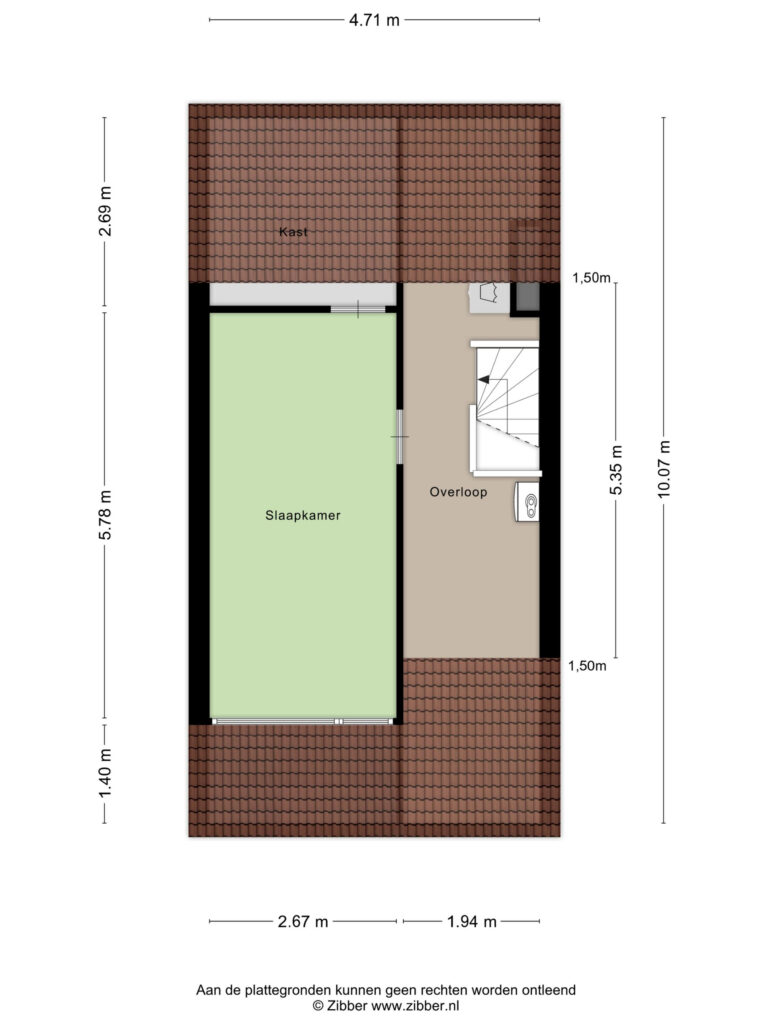 Tweede verdieping: overloop met bergruimte en cv-opstelling; vierde slaapkamer met dakkapel.