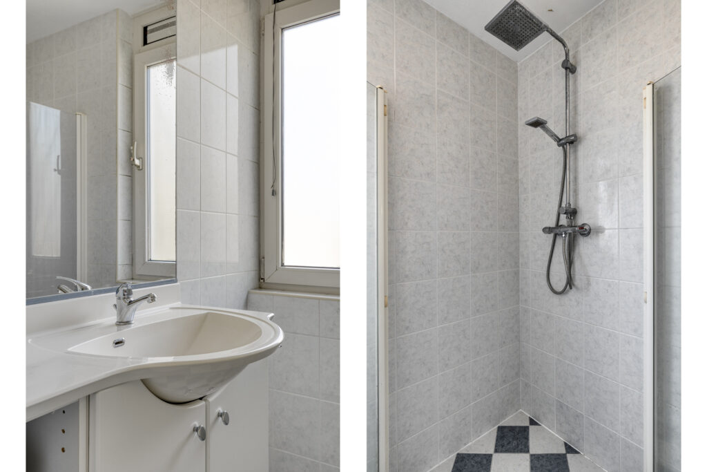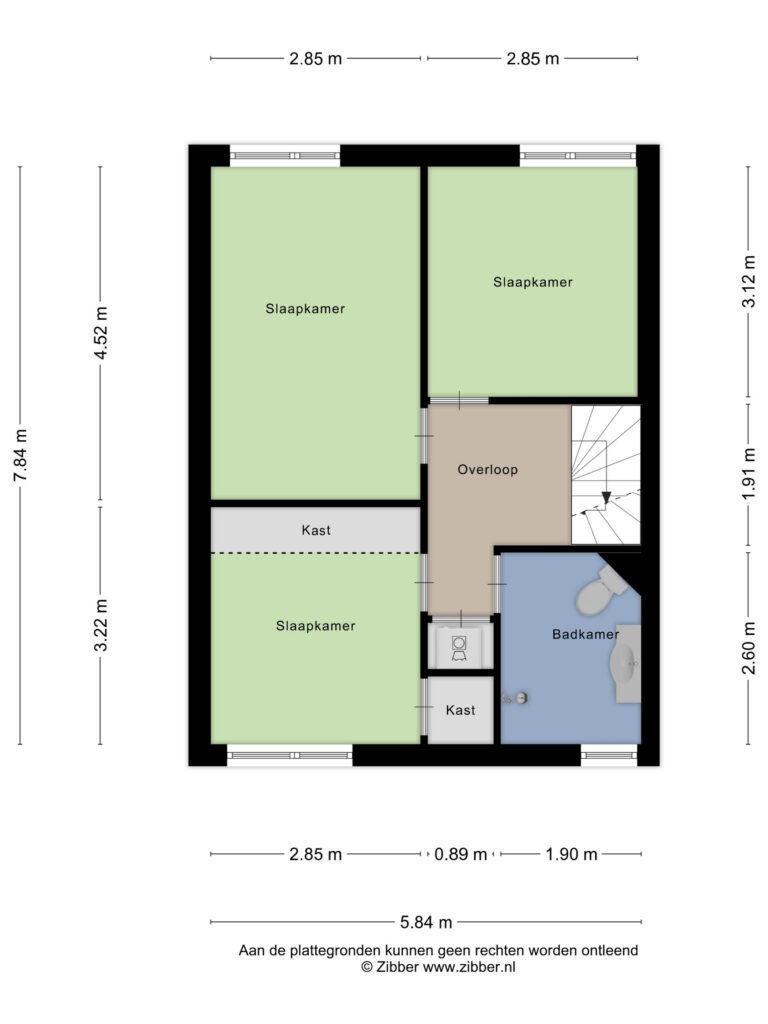 Eerste verdieping: overloop; drie slaapkamers; badkamer met douchehoek toilet en wastafelmeubel