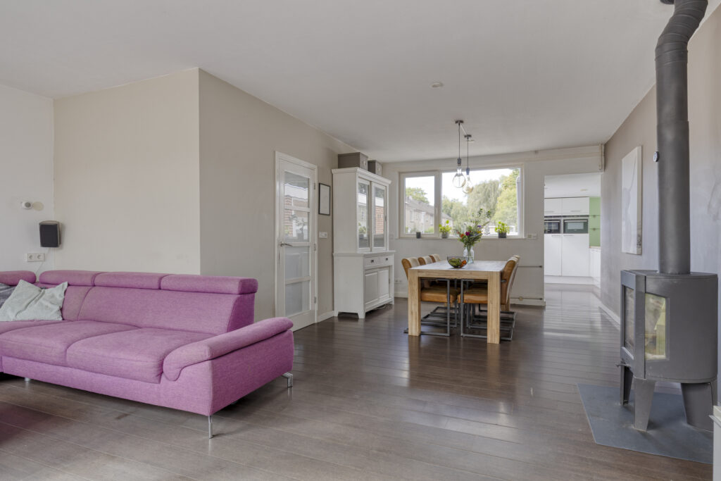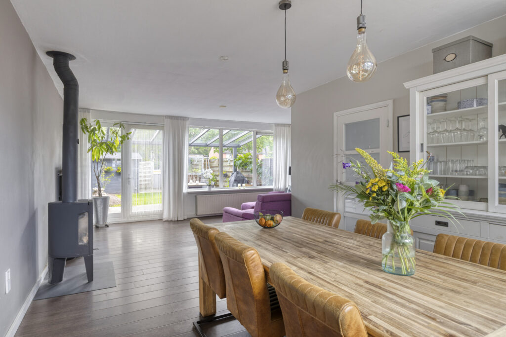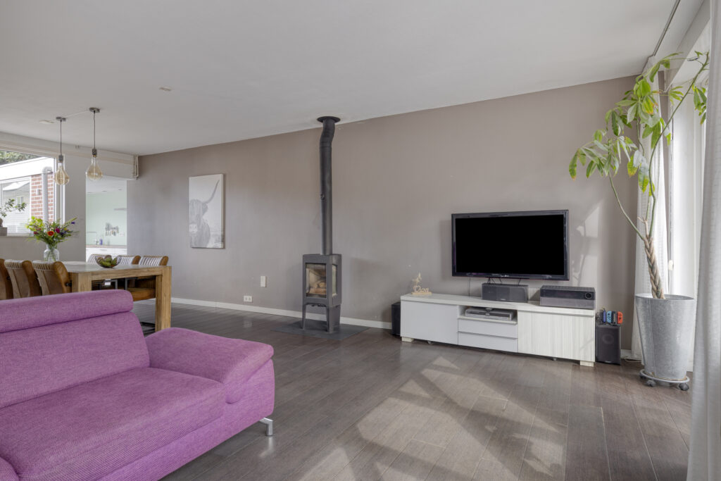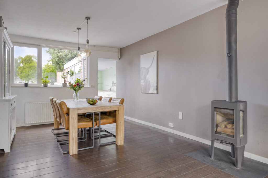 - woonkamer met hoog rendement houtkachel;
