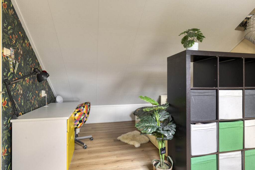 Tweede verdieping: overloop; twee bergruimtes waarvan één met cv-opstelling; ruime vierde slaapkamer.