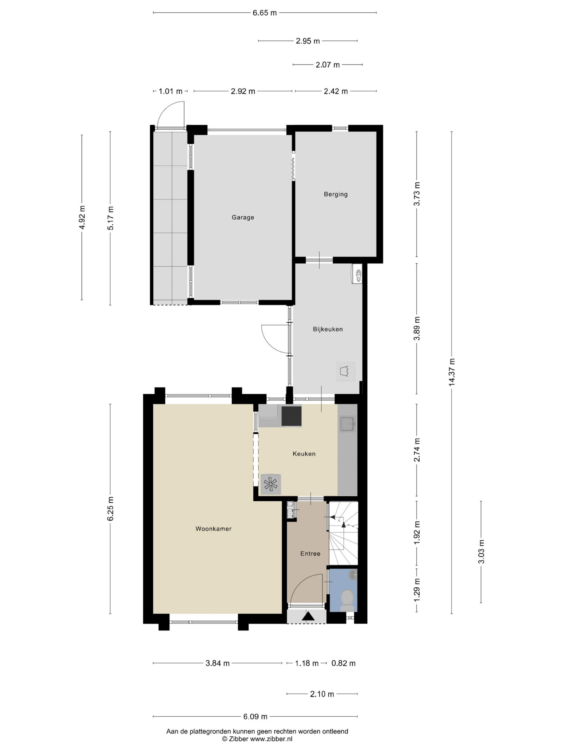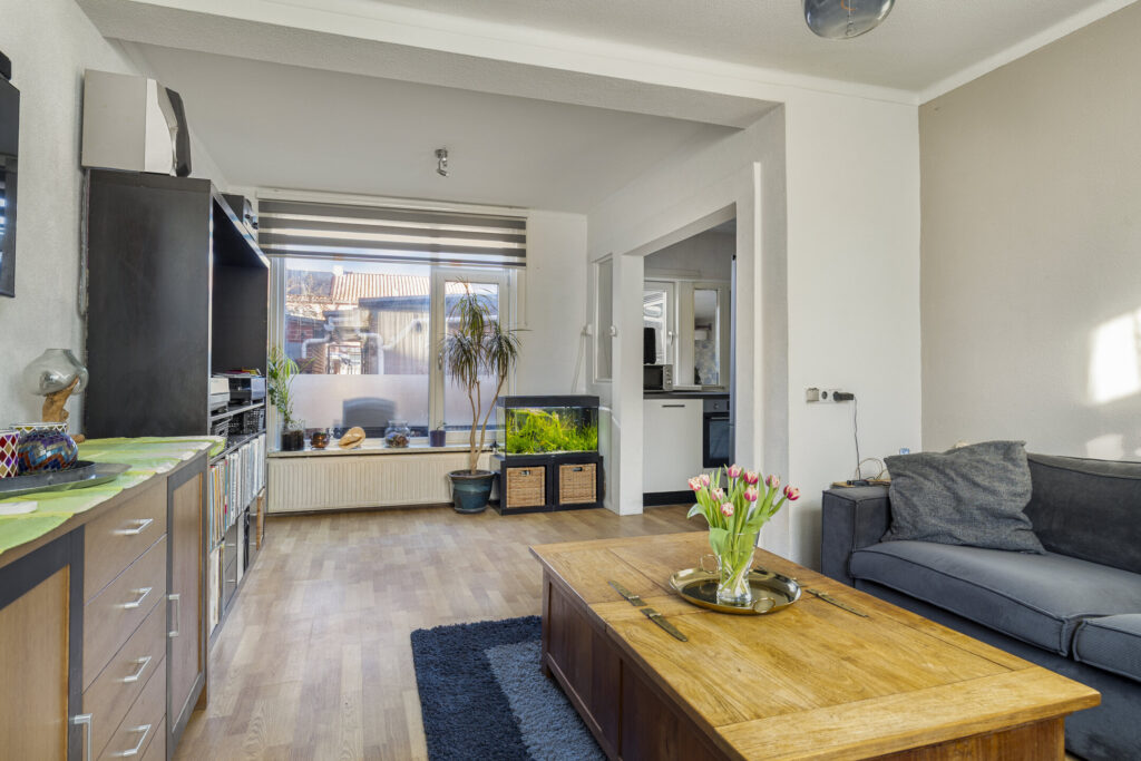 Indeling: voorentree/hal met toilet, trapopgang en trapkast; doorzonwoonkamer met moderne keukenopstelling die voorzien is van gasfornuis, afzuigkap, vaatwasser en oven; bijkeuken met achterentree en witgoedaansluiting; berging; garage met elektrische sectionaaldeur.