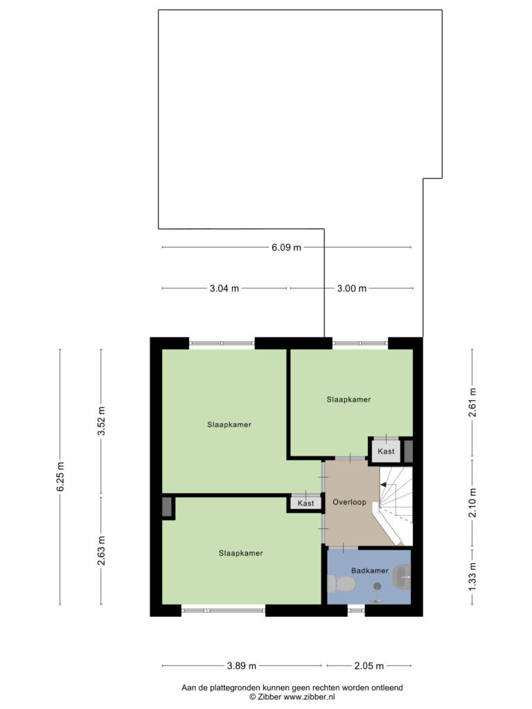 Eerste verdieping: overloop; drie slaapkamers; badkamer met toilet en douche.