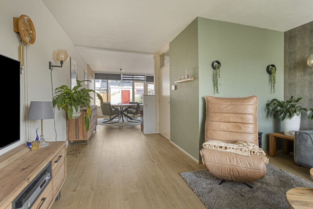 In kindvriendelijk woonwijk staat deze goed onderhouden tussenwoning met vrijstaande stenen berging. De woning beschikt over een uitgebouwde woonkamer, waardoor er een heerlijke, lichte en royale leefruimte is ontstaan. Dankzij de grote raampartijen geniet je hier van veel natuurlijk lichtinval en een prettige sfeer.