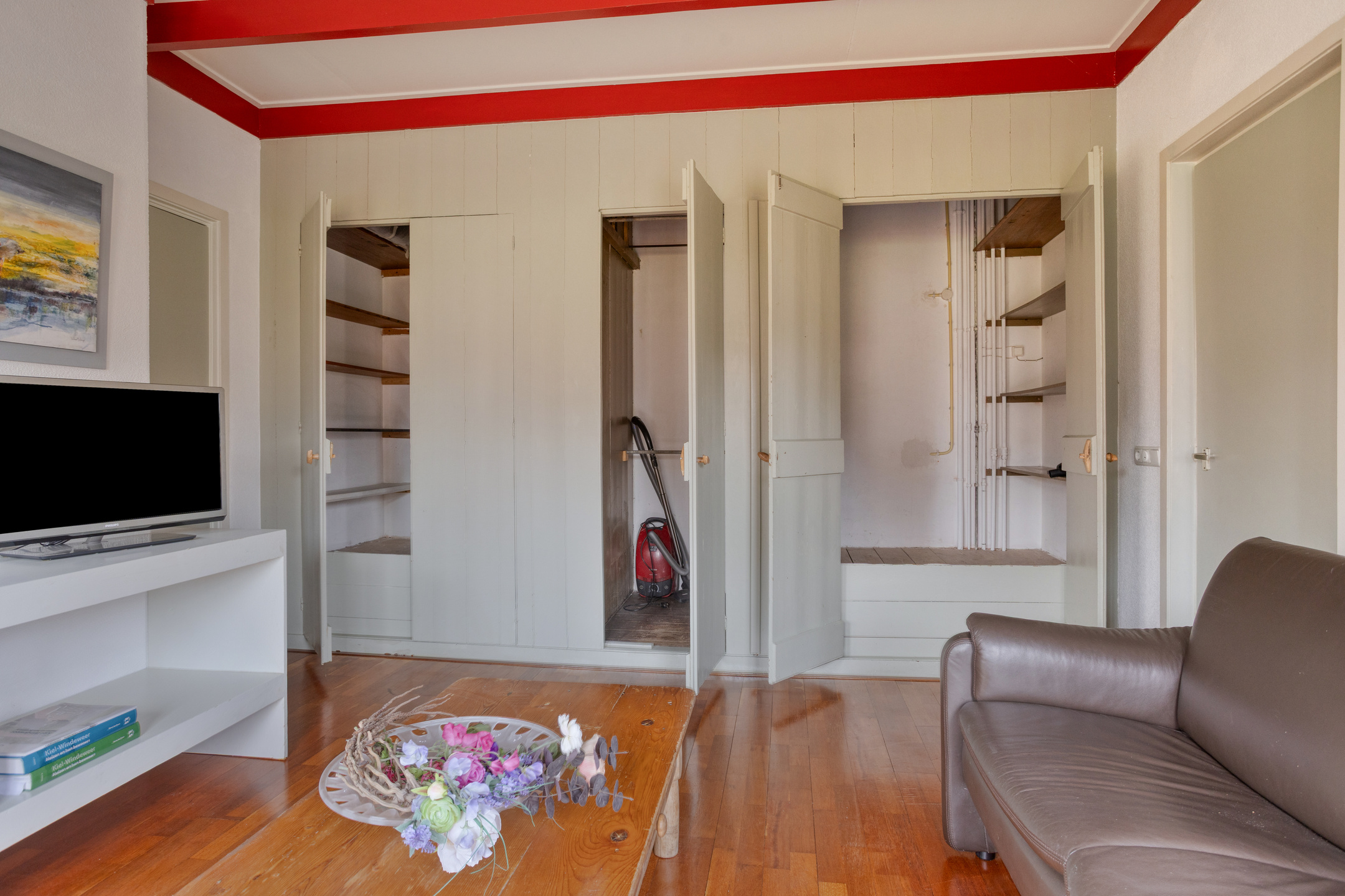 Indeling: voorentree; woonkamer met veel lichtinval en authentiek bedstedes (thans kastruimte); studeer-/hobbykamer; gesloten woonkeuken met terrasdeuren en moderne keukenopstelling die voorzien is van inductiekookplaat, afzuigkap, vaatwasser, koelvriescombinatie en combioven; achterhal met trapopgang, achterentree en toilet; badkamer met douche, wastafel en witgoedaansluiting.