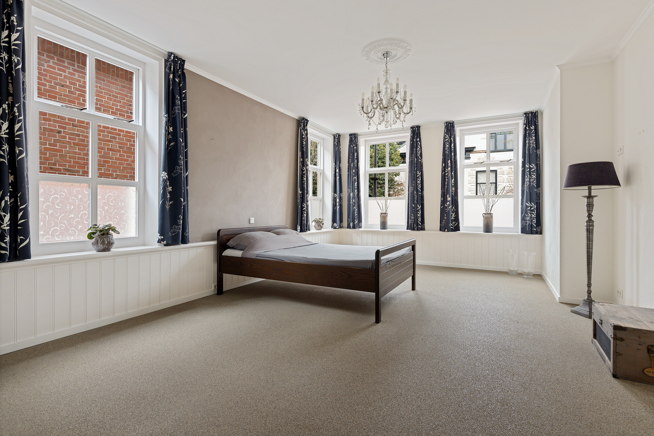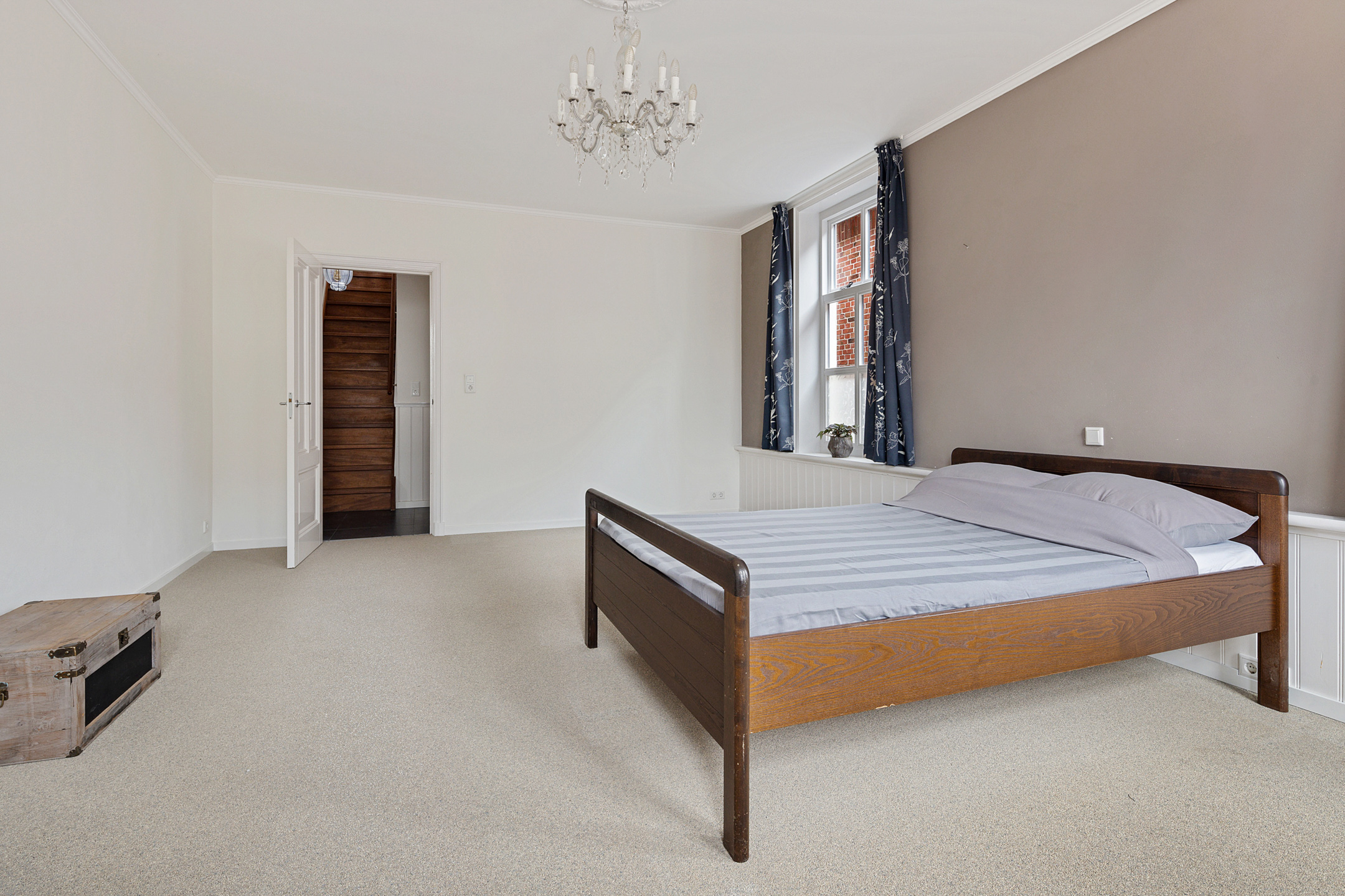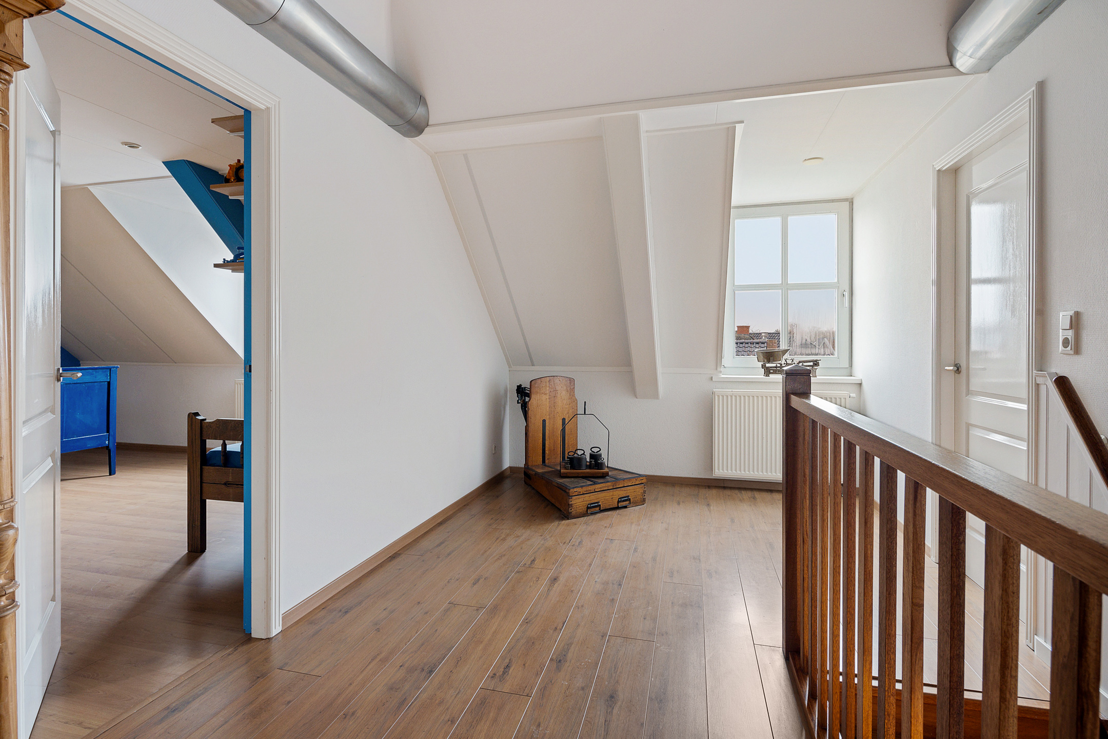Verdieping: overloop met toegang tot 5 slaapkamers van ca. 12, 17 18, 21 en 22 m², en de 2e badkamer met douche, toilet en wastafel. De grootste slaapkamer beschikt over een keukenblok, waardoor dit gebruikt kan worden voor een ouder gezinslid die wat zelfstandigheid wil, maar ook bijvoorbeeld voor mantelzorg van een familielid.