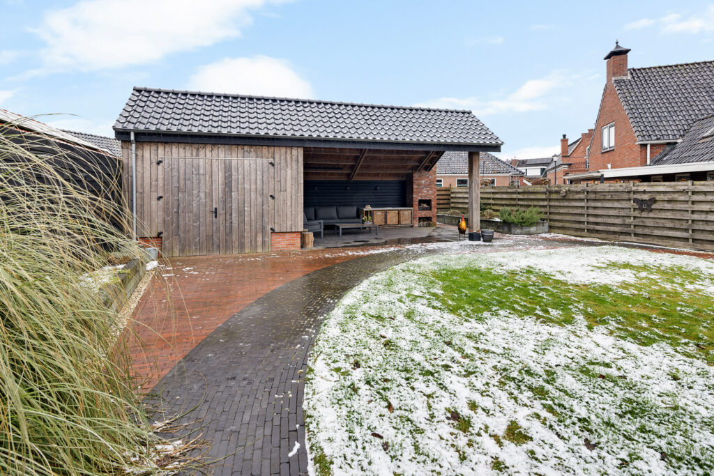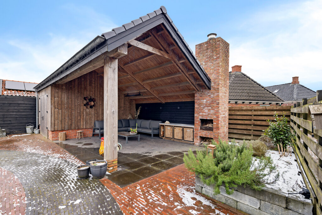 Achter de woning ligt een besloten tuin waar je volop kunt genieten van het buitenleven. Dankzij de overkapping kun je ook bij mindere weersomstandigheden buiten zitten, waardoor het tuinseizoen aanzienlijk wordt verlengd.