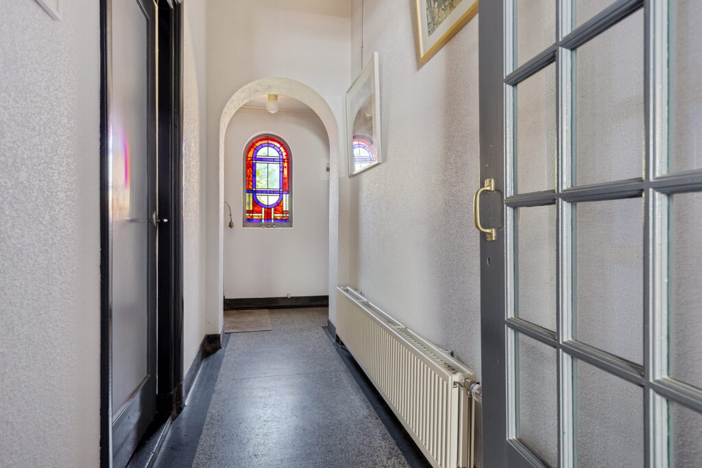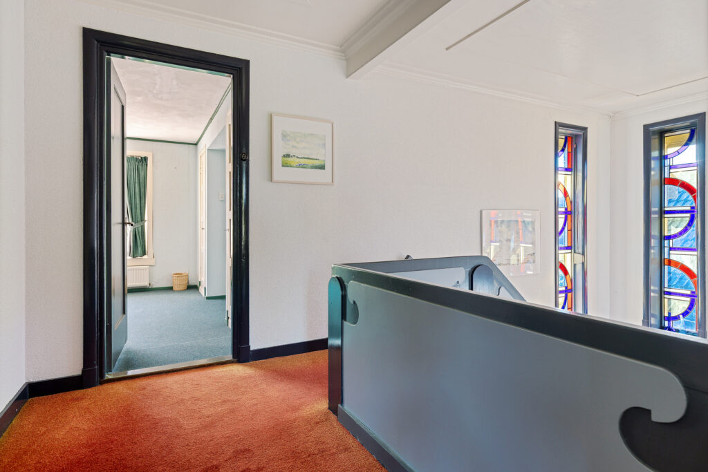 In de oorspronkelijke schuur die bij de nieuwbouw is blijven bestaan is tegenwoordig een achterhal met toilet en aangrenzende badkamer aanwezig. Verder is het ‘anno nu’ ingericht als werkplaats met een aangrenzende kamer annex hobbyruimte. De eerste verdieping is te bereiken via de fraaie trapopgang met bordes en glas-in-lood ramen. Vanaf de overloop zijn vervolgens drie slaapkamers te betreden, waarvan twee voorzien van vaste kasten. Op de eerste verdieping is een tweede badkamer gerealiseerd met douchecabine, wastafelmeubel en tweede toilet. Het geheel wordt op de eerste verdieping gecompleteerd door een zolderberging. Tot slot is er vanuit de werkplaats nog een royale zolderberging met mogelijkheden te bereiken. Kortom, een heerlijk huis met veel mogelijkheden en toegang tot diverse subsidies!