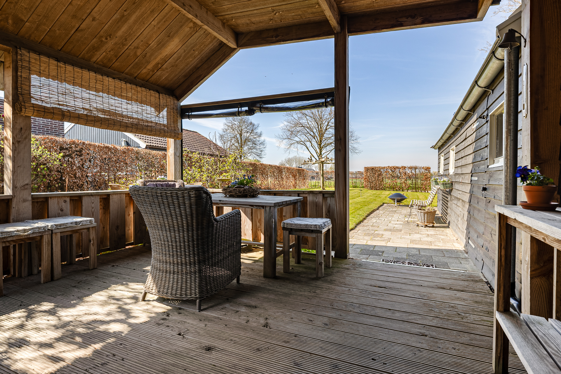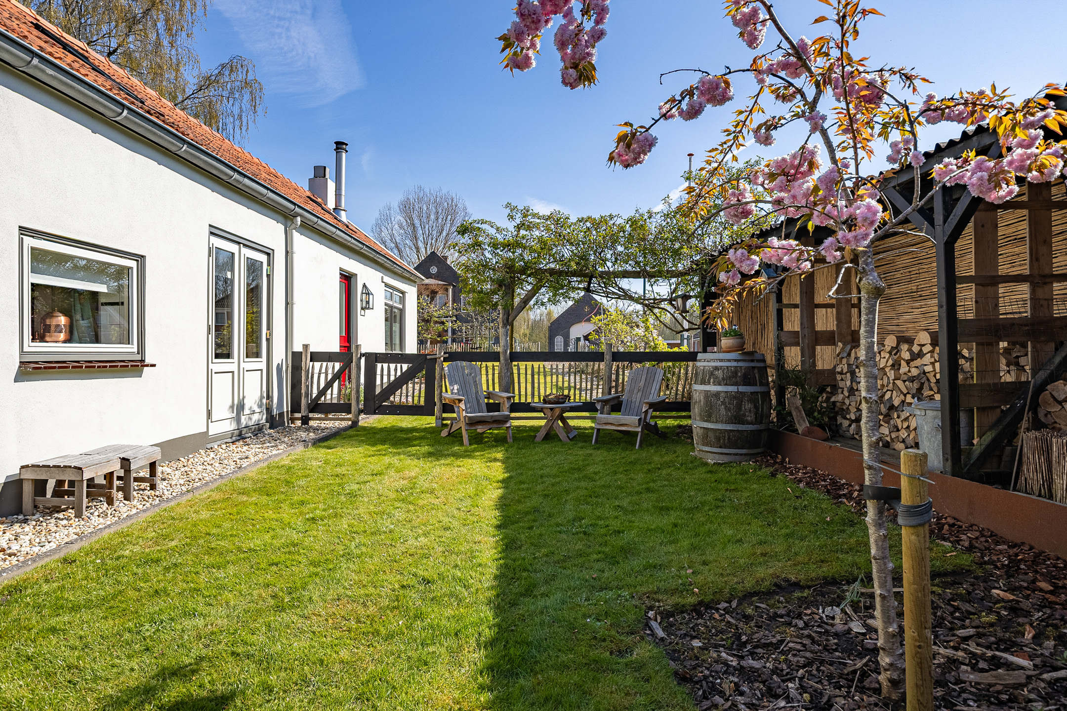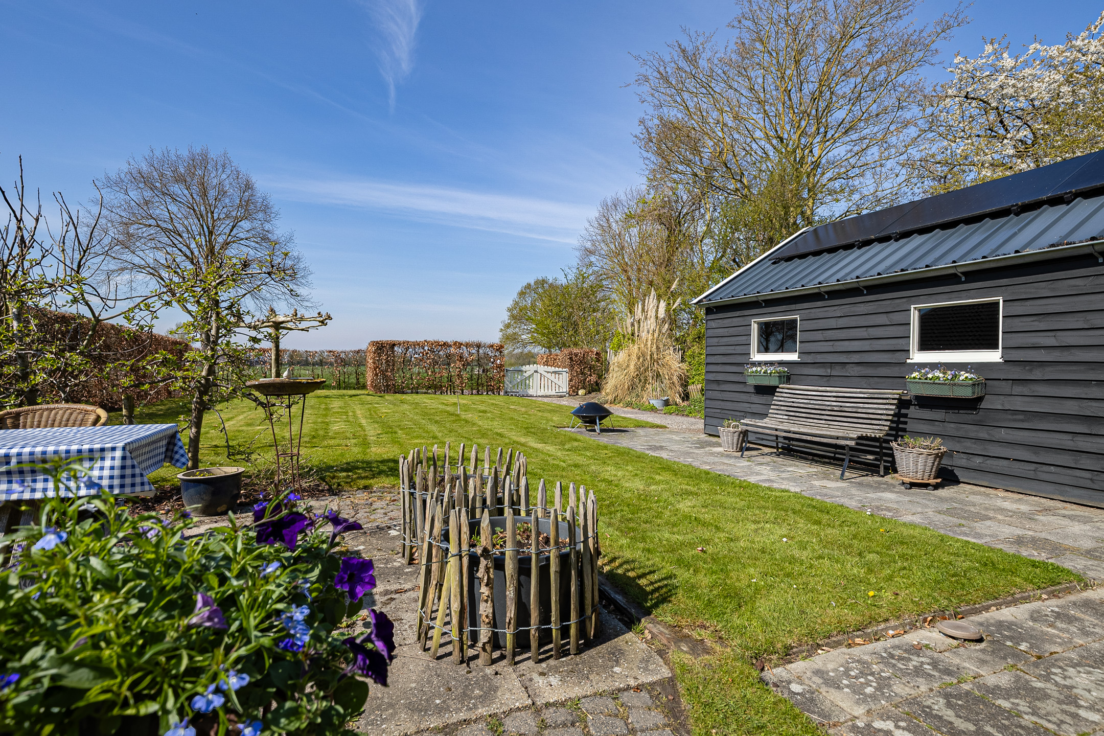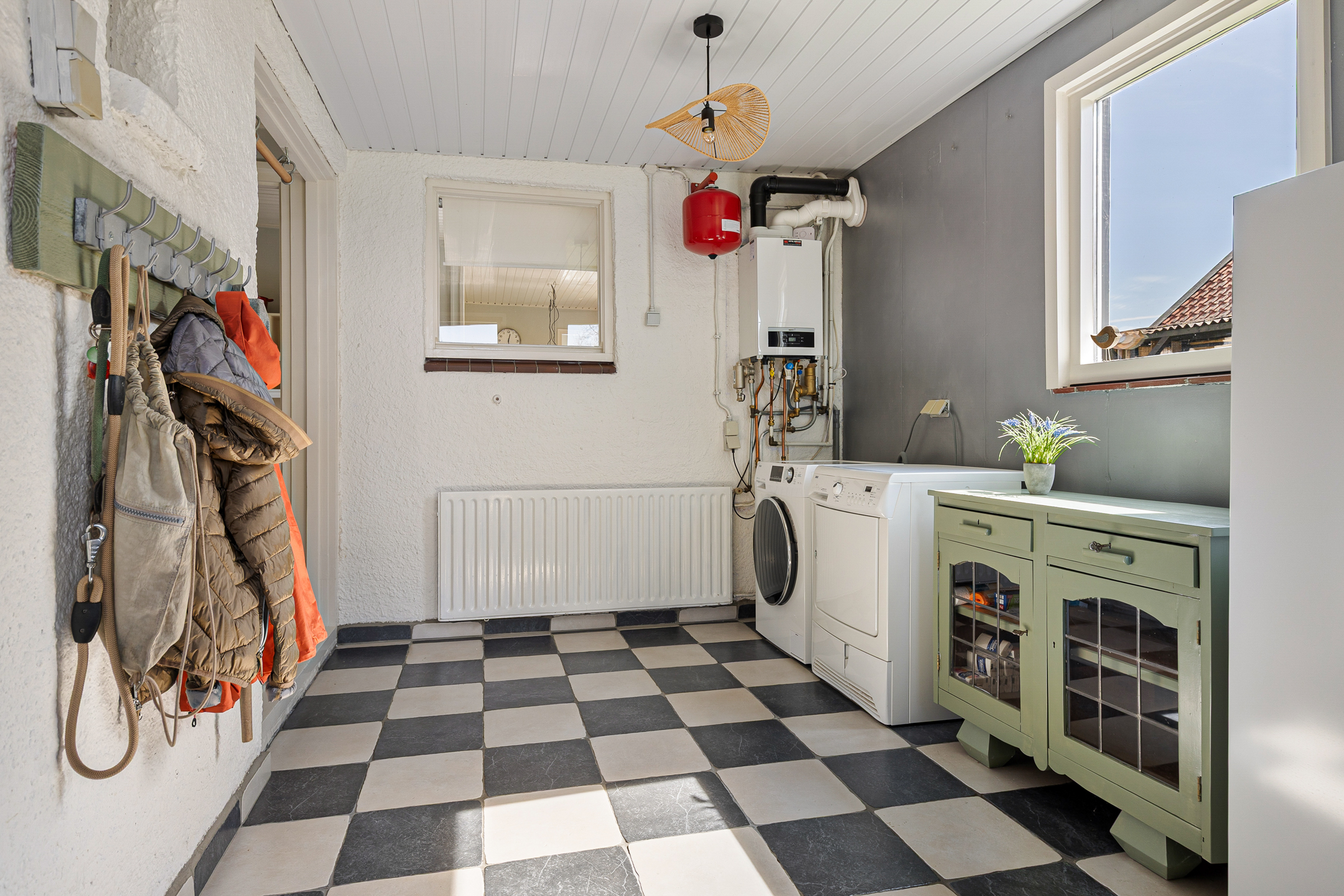 Entree/hal met meterkast, woonkamer (ca. 16 m²; met houtkachel), woonkeuken (ca. 17,5 m²; met tuindeuren en hoekopstelling voorzien van 5-pits gaskookplaat, afzuigkap en losse apparatuur) met ingang naar de slaapkamer (ca. 12 m²). Vanuit de keuken te bereiken bijkeuken (ca. 11,5 m²; met witgoedaansluitingen, cv-opstelling en achterentree) met aangrenzend toilet, badkamer (ca. 3,5 m²; met inloopdouche en wastafel) en aangrenzend kleedkamer (ca. 9 m²).