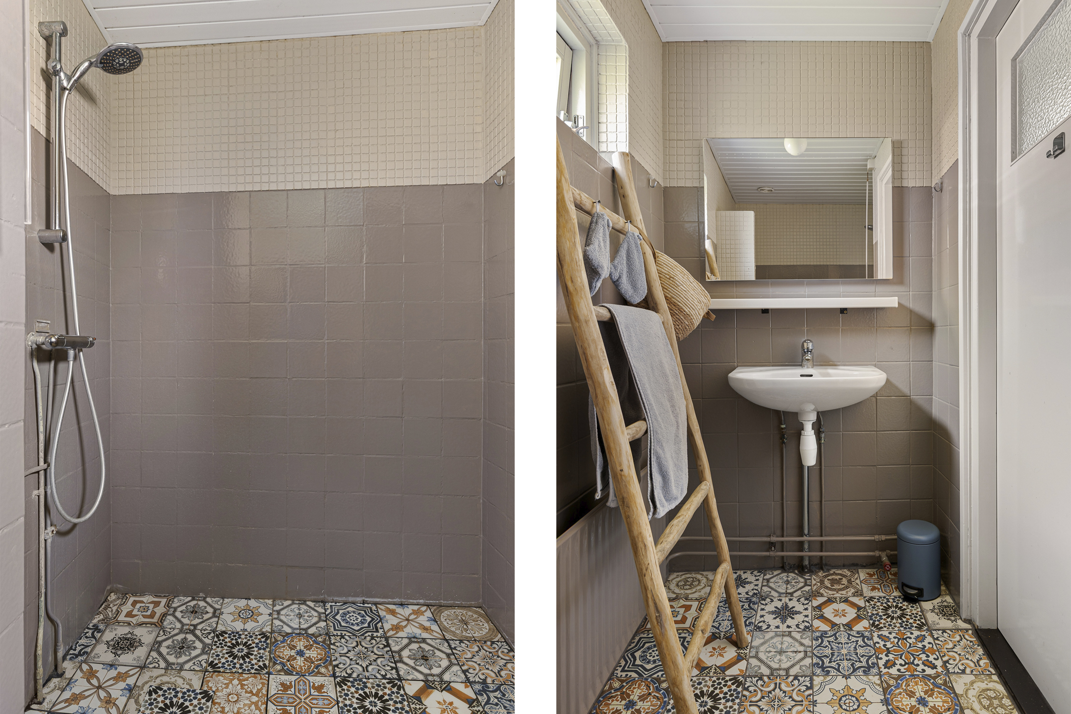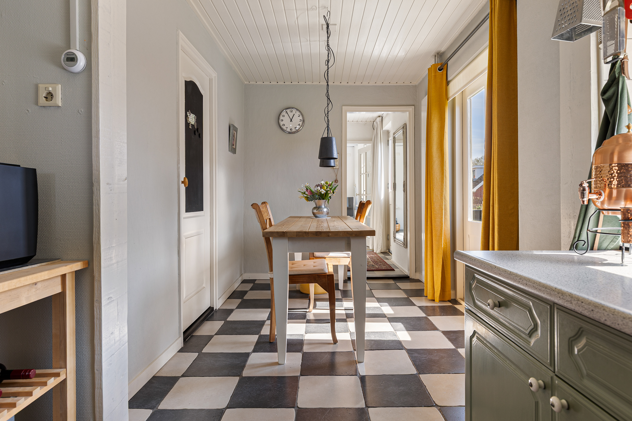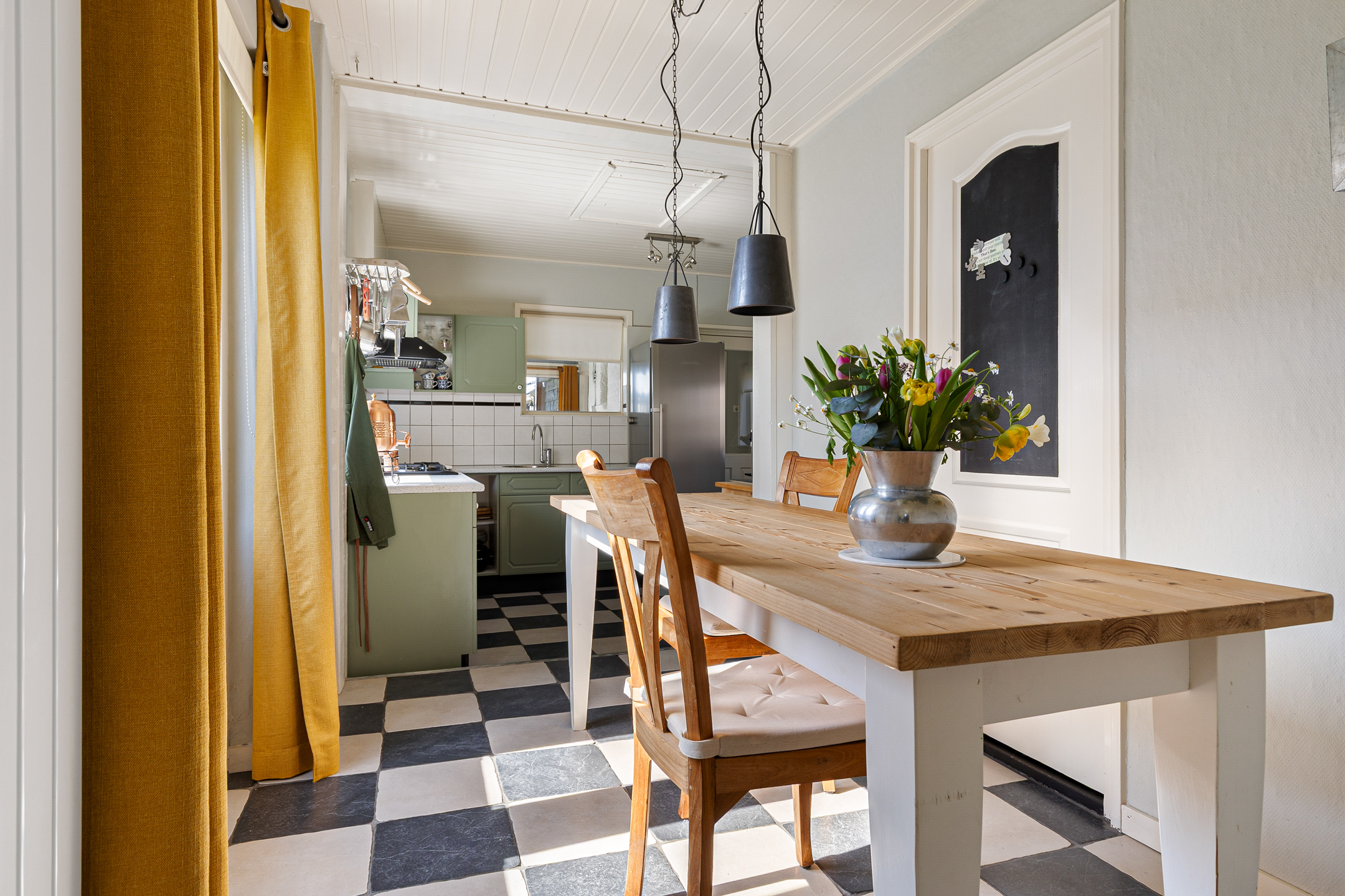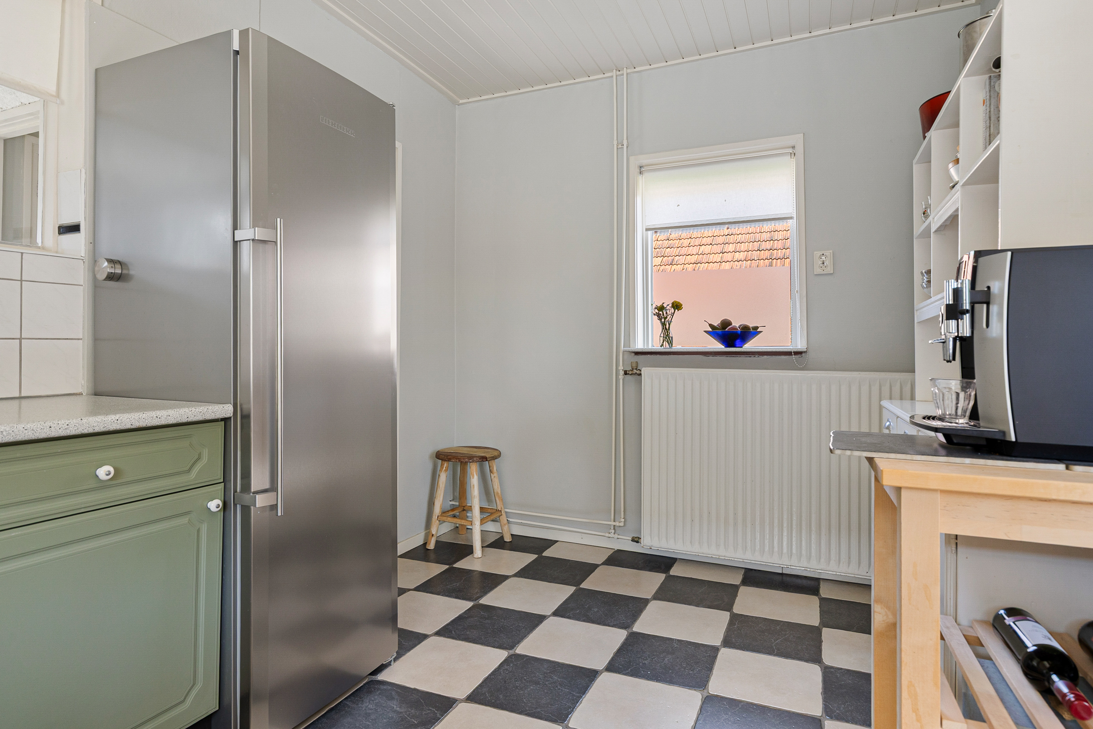 Entree/hal met meterkast, woonkamer (ca. 16 m²; met houtkachel), woonkeuken (ca. 17,5 m²; met tuindeuren en hoekopstelling voorzien van 5-pits gaskookplaat, afzuigkap en losse apparatuur) met ingang naar de slaapkamer (ca. 12 m²). Vanuit de keuken te bereiken bijkeuken (ca. 11,5 m²; met witgoedaansluitingen, cv-opstelling en achterentree) met aangrenzend toilet, badkamer (ca. 3,5 m²; met inloopdouche en wastafel) en aangrenzend kleedkamer (ca. 9 m²).