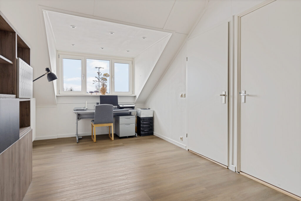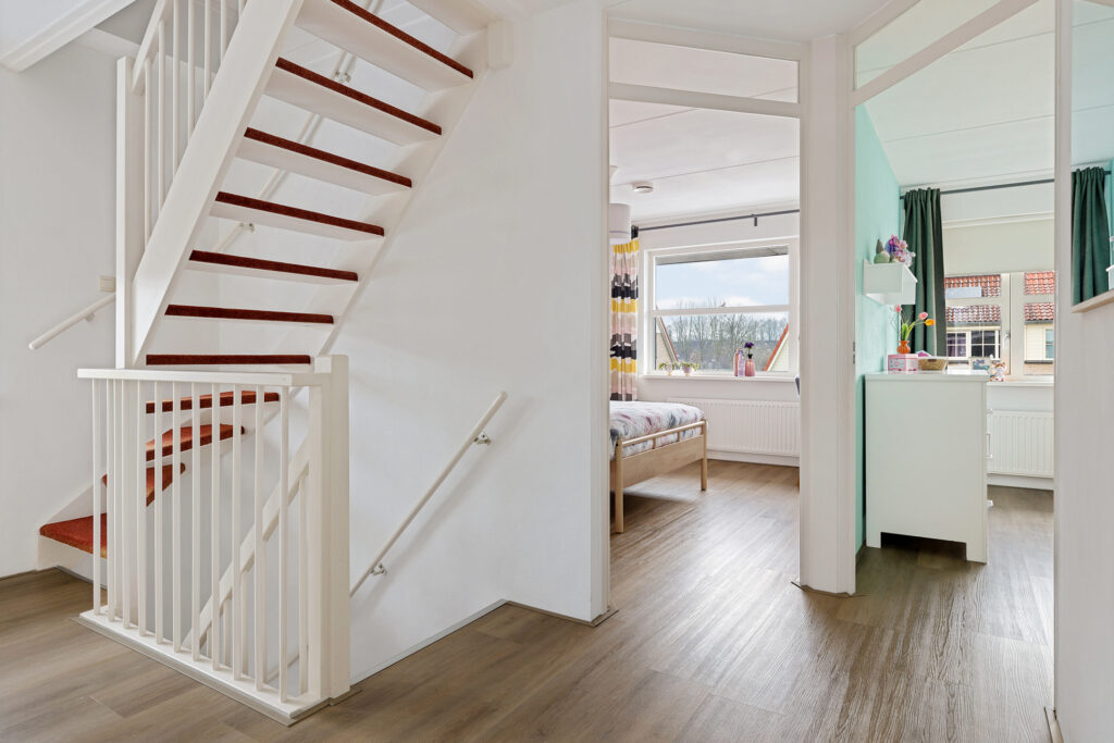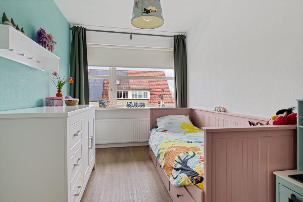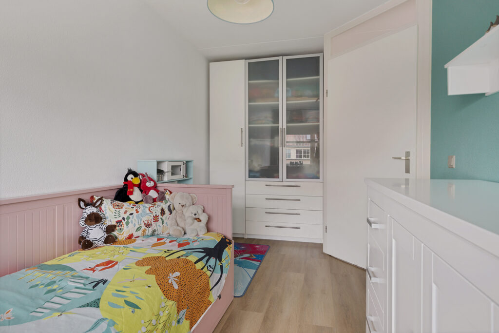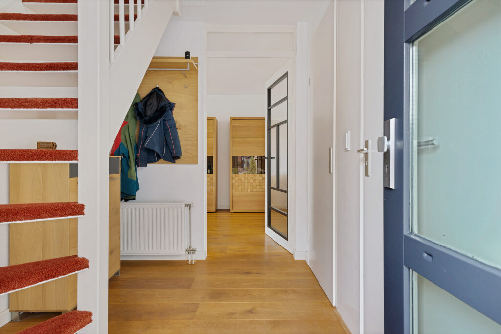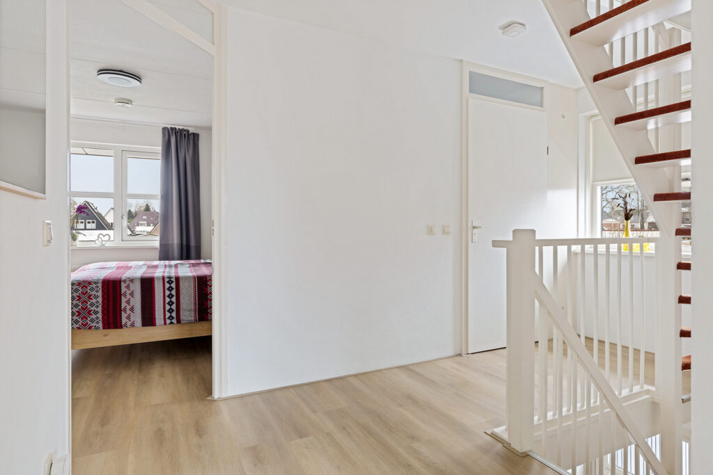 De indeling van de woning is voor - grote - gezinnen ideaal te noemen. Op de begane grond valt namelijk direct de ruime, L-vormige woonkamer met Eiken vloer en fraaie raampartij in de voorgevel op. Aan de tuinzijde de keuken, modern uitgevoerd, voorzien van alle inbouwapparatuur en tuindeur. Het geheel wordt op de begane grond gecompleteerd door een modern toilet en trapopgang naar de eerste verdieping. Op deze eerste verdieping zijn drie van de vier slaapkamers gesitueerd. Allen voorzien van PVC-vloeren en twee met ruimte voor vaste kasten. Ook de moderne badkamer is op deze woonlaag aanwezig. Uitgevoerd met een ligbad, ruime inloopdouche, wastafelmeubel en tweede toilet. Op de tweede verdieping - uiteraard eveneens bereikbaar met vaste trap - de vierde slaapkamer. Uitgerust met dezelfde PVC-vloer maar bovenal een royale dakkapel en separate stook- annex wasruimte.