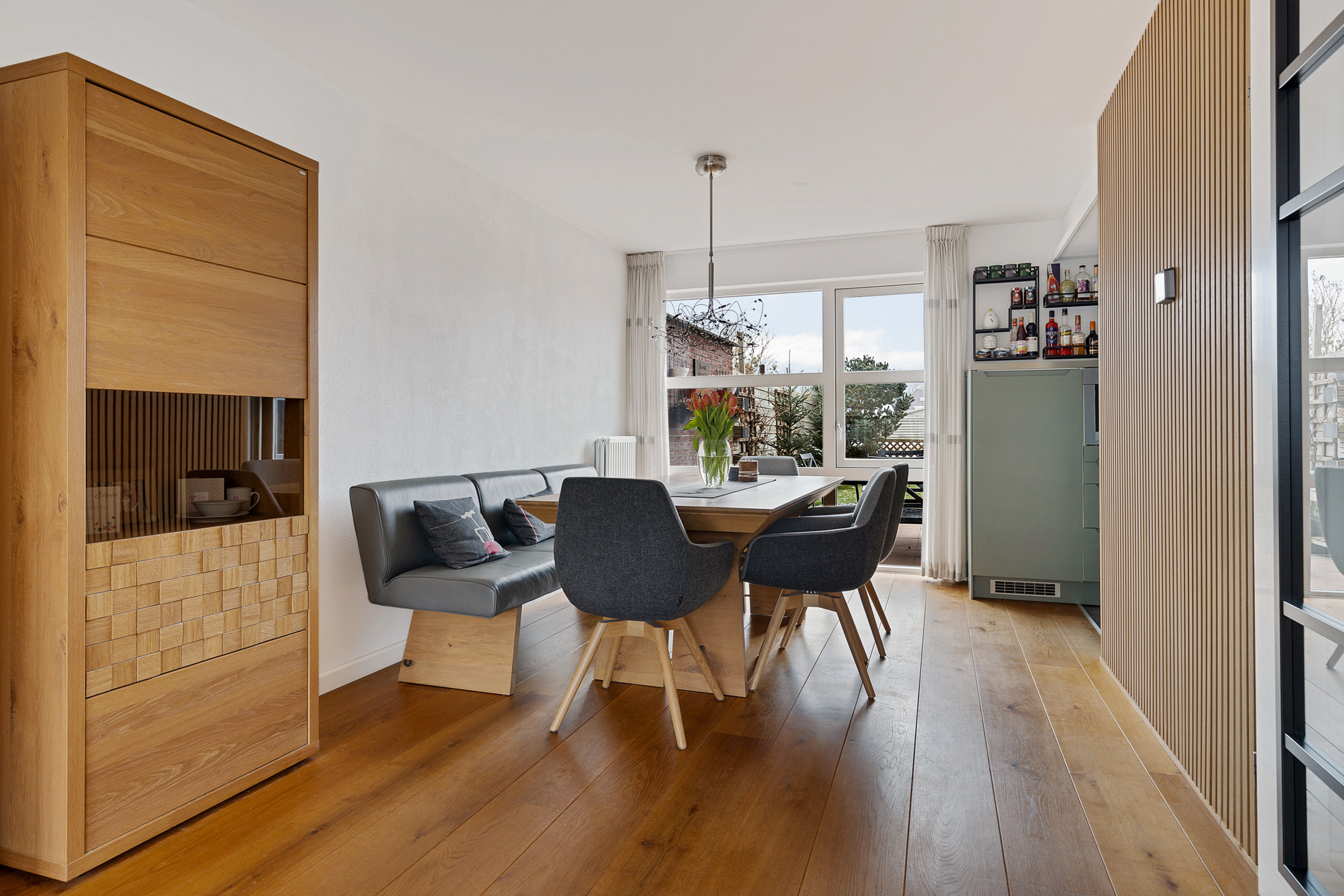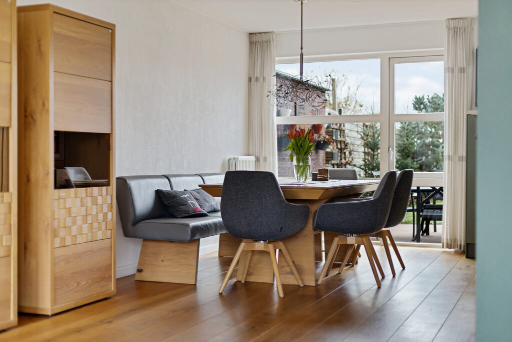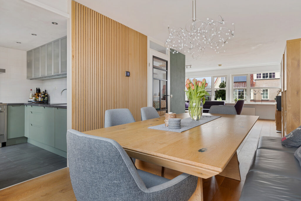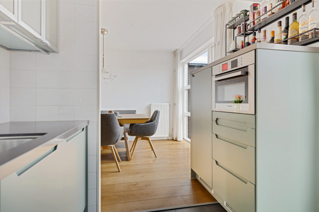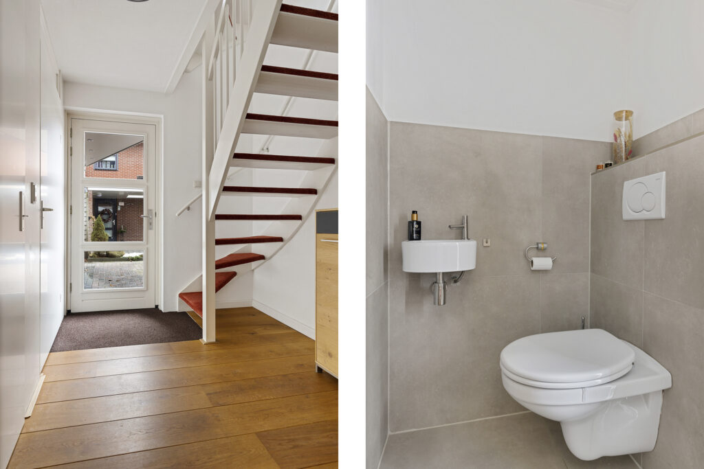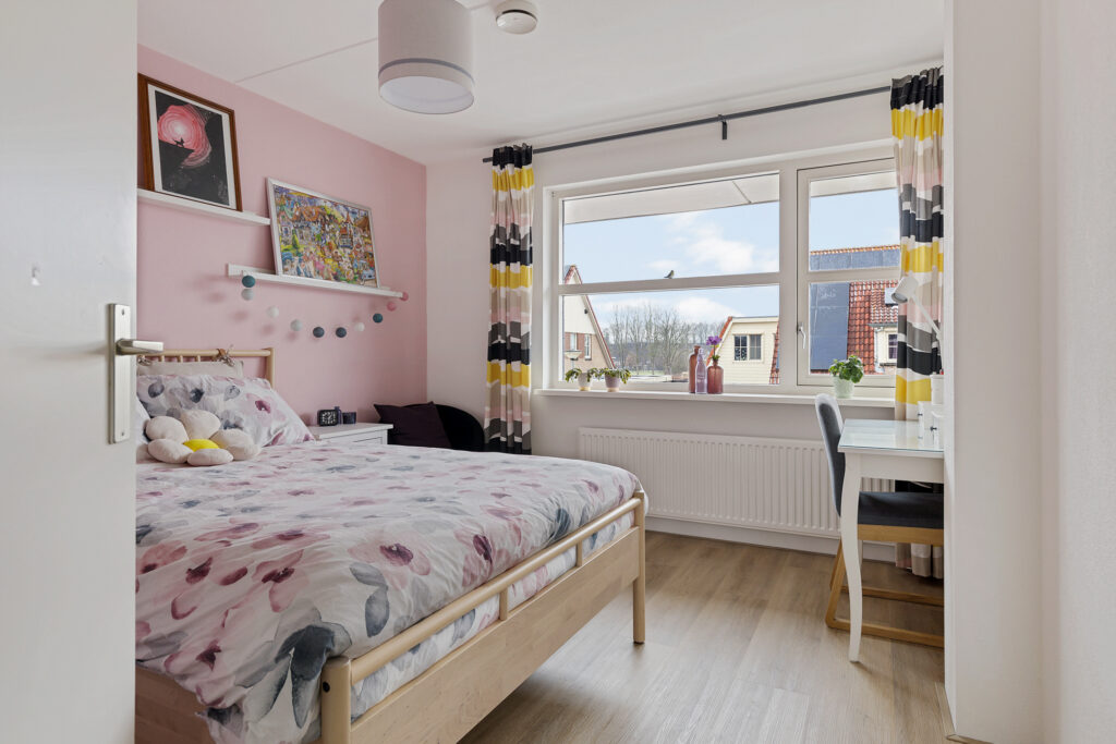 De indeling van de woning is voor - grote - gezinnen ideaal te noemen. Op de begane grond valt namelijk direct de ruime, L-vormige woonkamer met Eiken vloer en fraaie raampartij in de voorgevel op. Aan de tuinzijde de keuken, modern uitgevoerd, voorzien van alle inbouwapparatuur en tuindeur. Het geheel wordt op de begane grond gecompleteerd door een modern toilet en trapopgang naar de eerste verdieping. Op deze eerste verdieping zijn drie van de vier slaapkamers gesitueerd. Allen voorzien van PVC-vloeren en twee met ruimte voor vaste kasten. Ook de moderne badkamer is op deze woonlaag aanwezig. Uitgevoerd met een ligbad, ruime inloopdouche, wastafelmeubel en tweede toilet. Op de tweede verdieping - uiteraard eveneens bereikbaar met vaste trap - de vierde slaapkamer. Uitgerust met dezelfde PVC-vloer maar bovenal een royale dakkapel en separate stook- annex wasruimte.