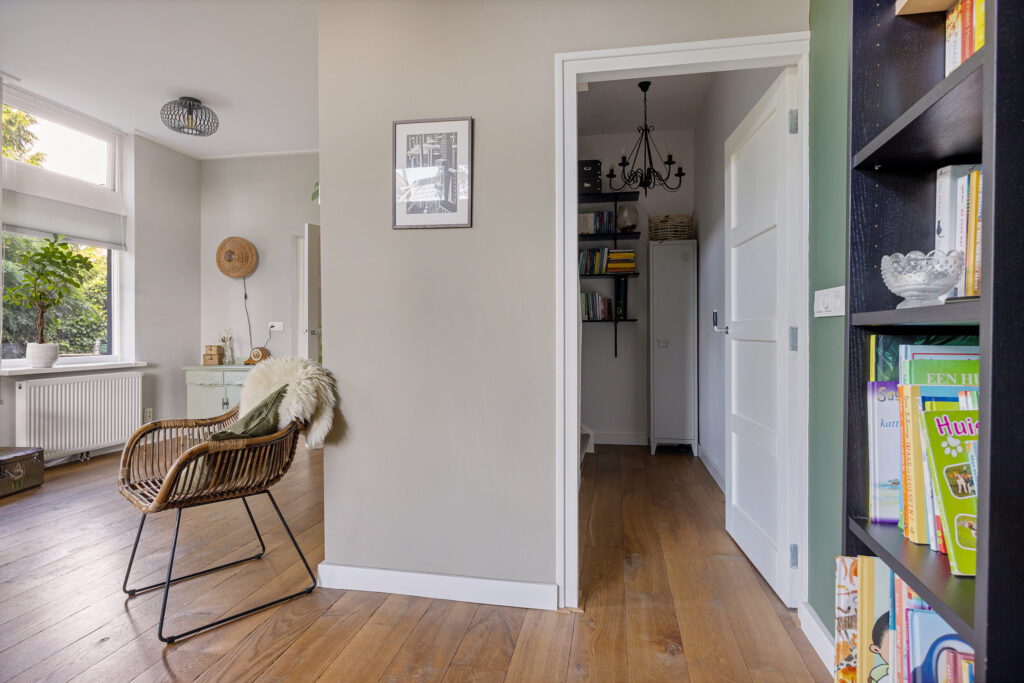 De woning beschikt bovendien over een zolderverdieping, bereikbaar via een vlizotrap, die ideaal kan dienen als extra bergruimte.