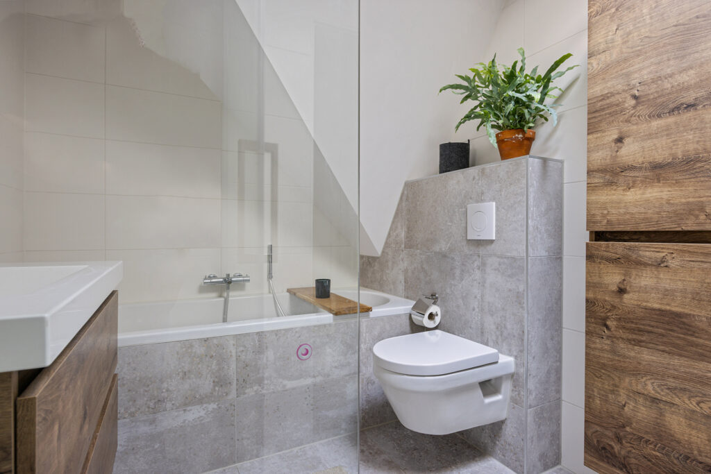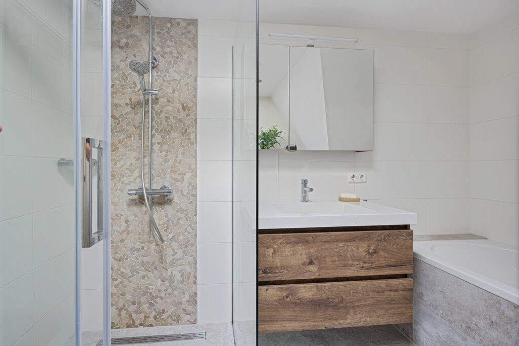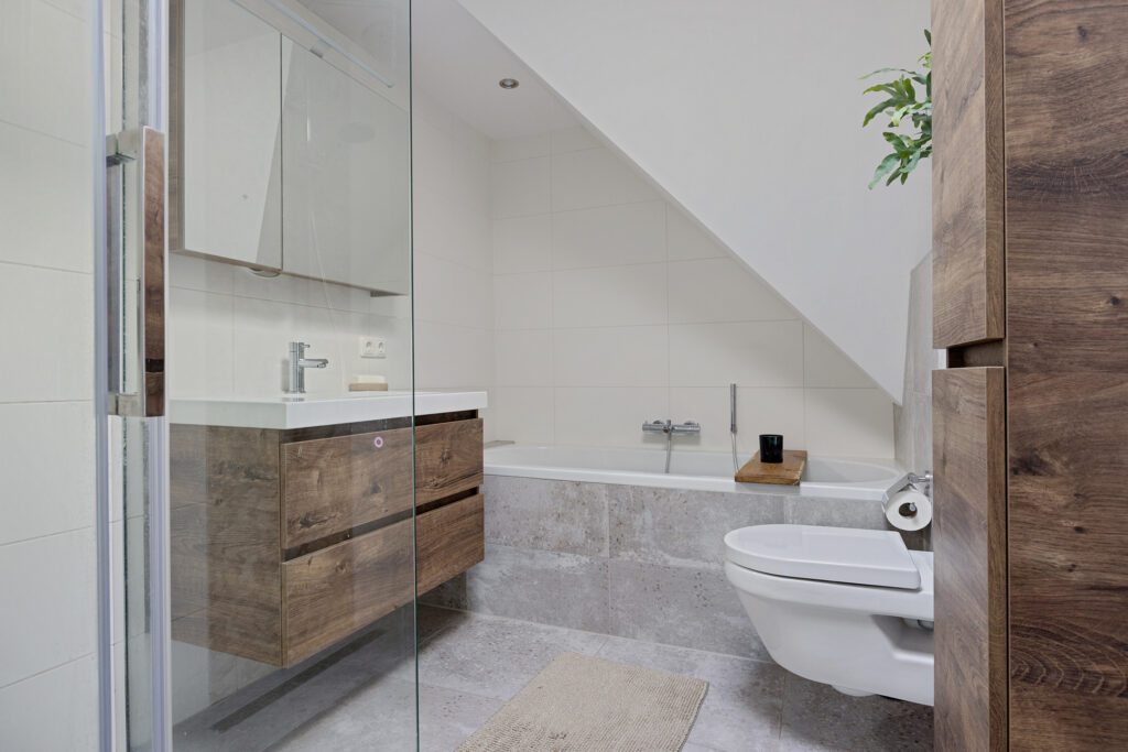 - Badkamer met ligbad, inloopdouche en tweede toilet