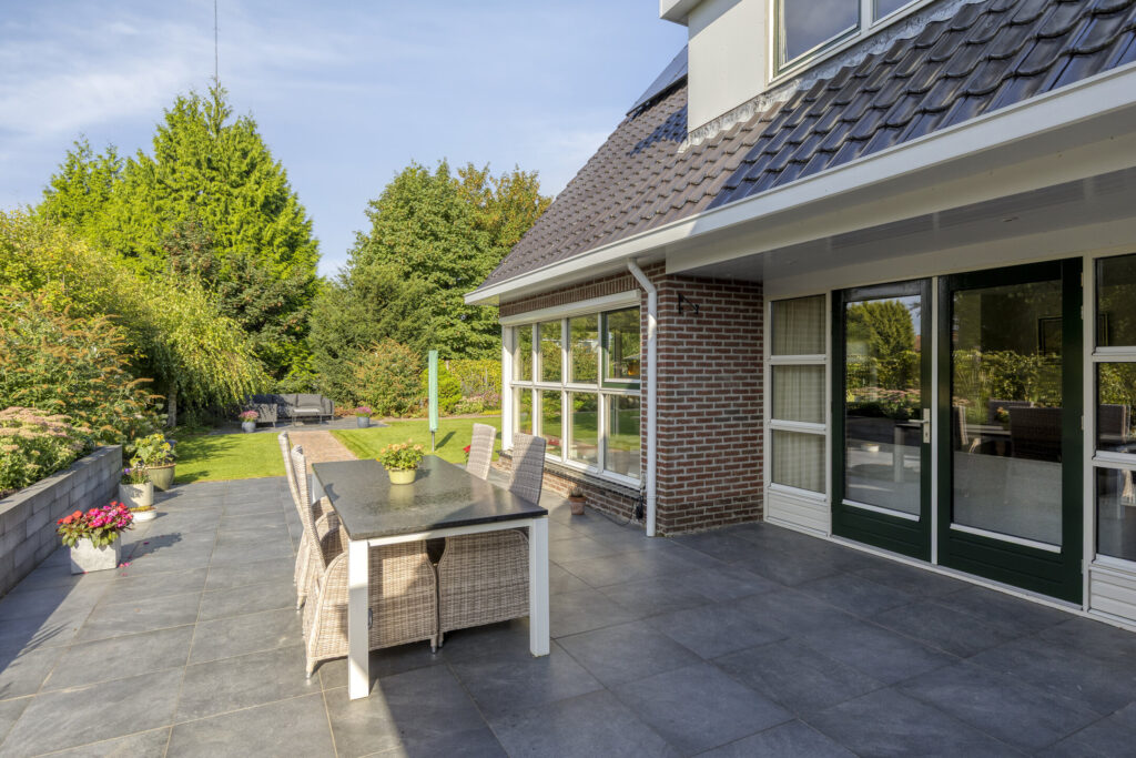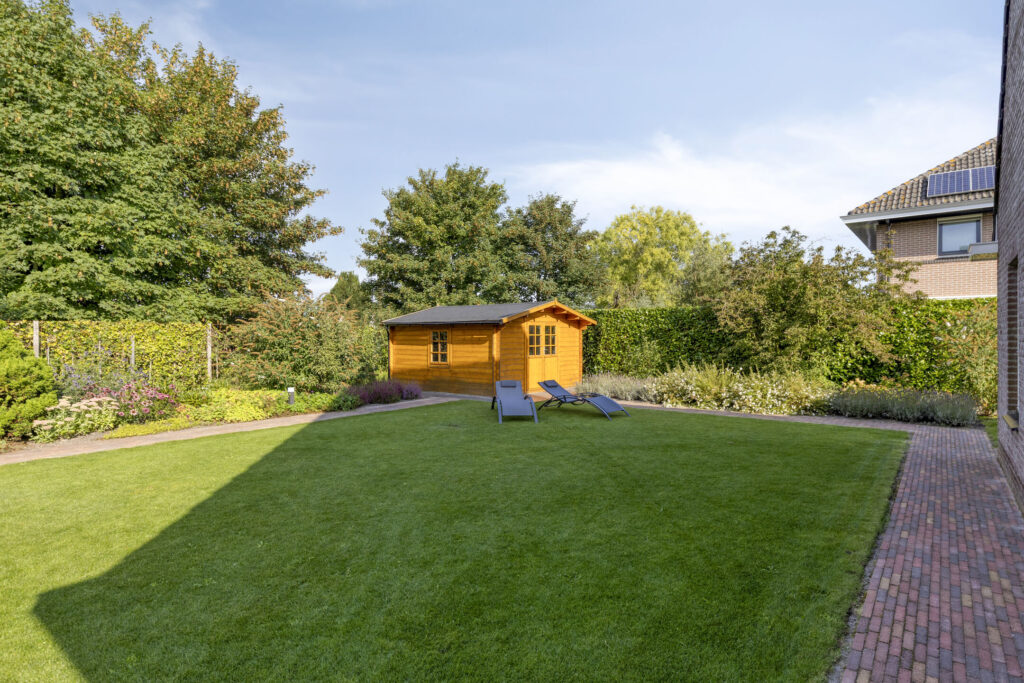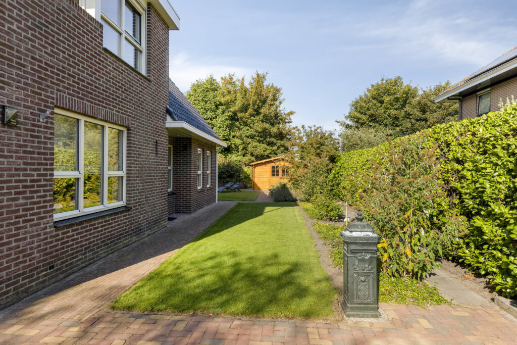 De woning is gelegen op een hoekperceel met veel privacy en zon. De tuin rondom is verzorgd en er zijn meerdere plekjes waar je in alle rust kunt genieten van de zon of schaduw.