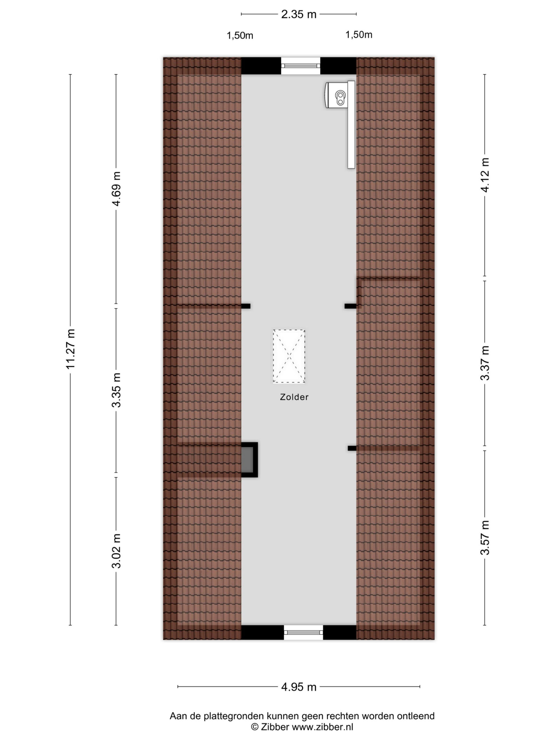 Tweede verdieping: ruime zolder, bereikbaar via vlizotrap