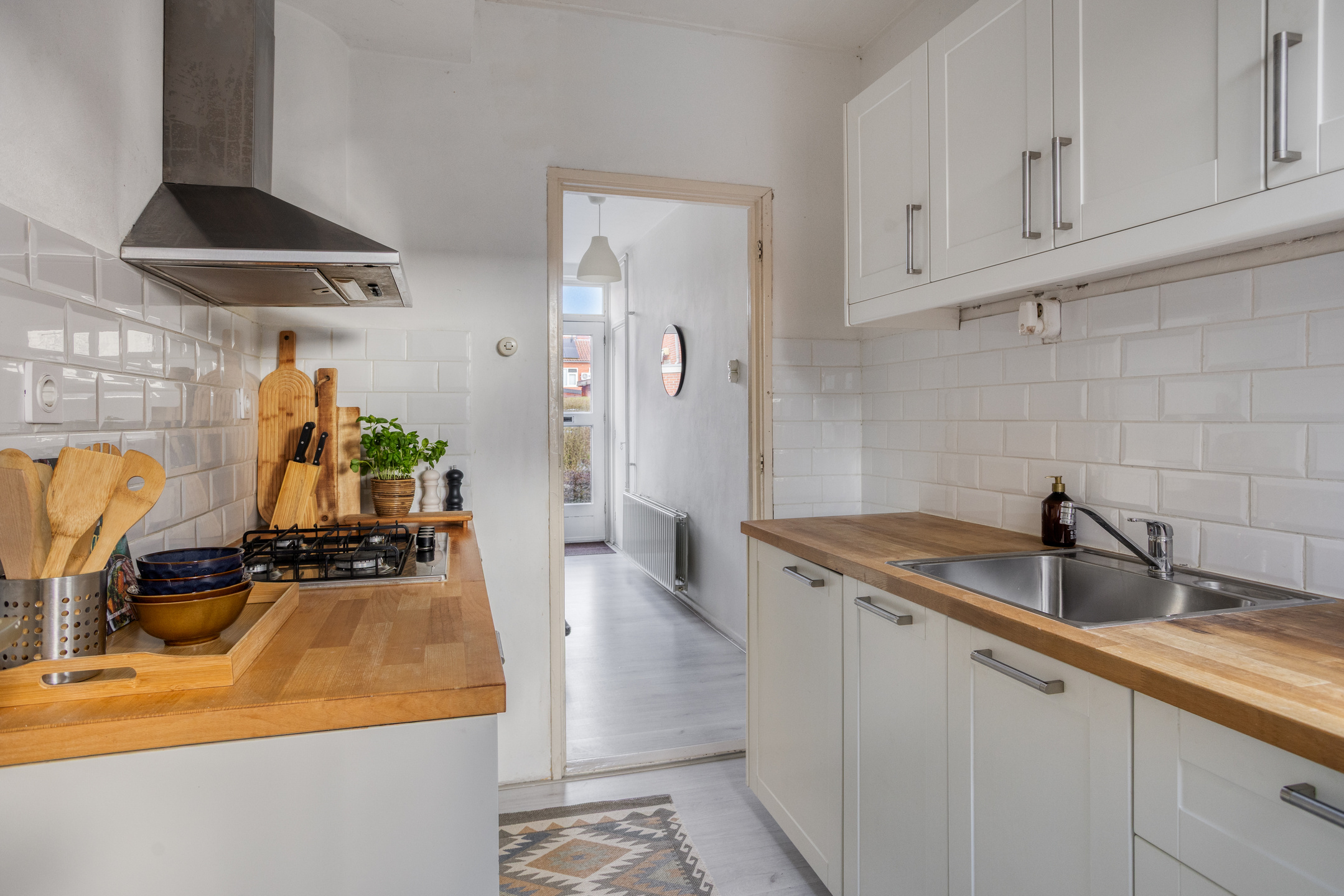 Indeling: voorentree; hal met toilet en provisiekelder; lichte doorzonwoonkamer; gesloten met keuken keukenopstelling welke voorzien is van een afzuigkap, gaskookplaat, vaatwasser en oven; bijkeuken met witgoedaansluiting en cv-opstelling.