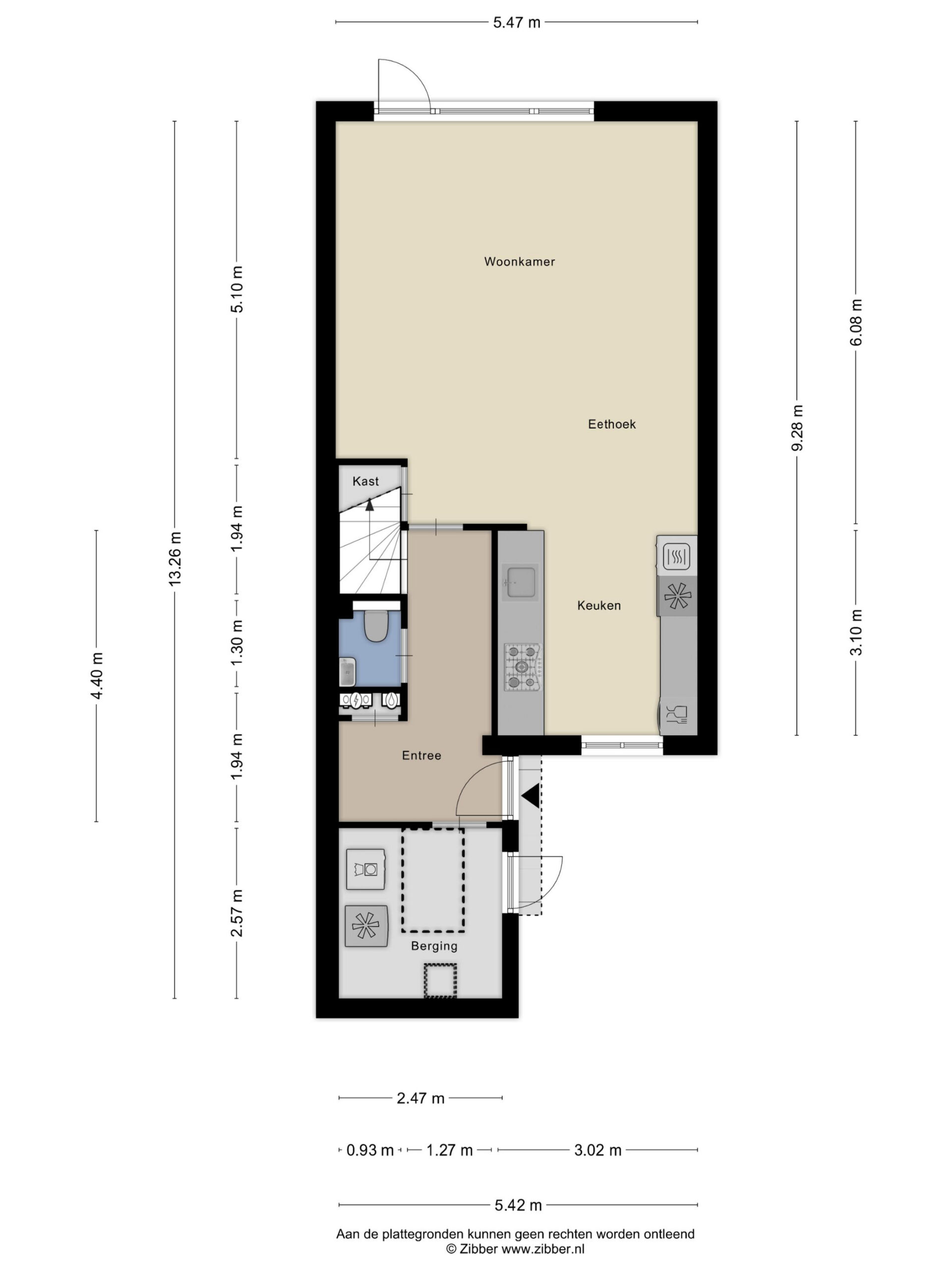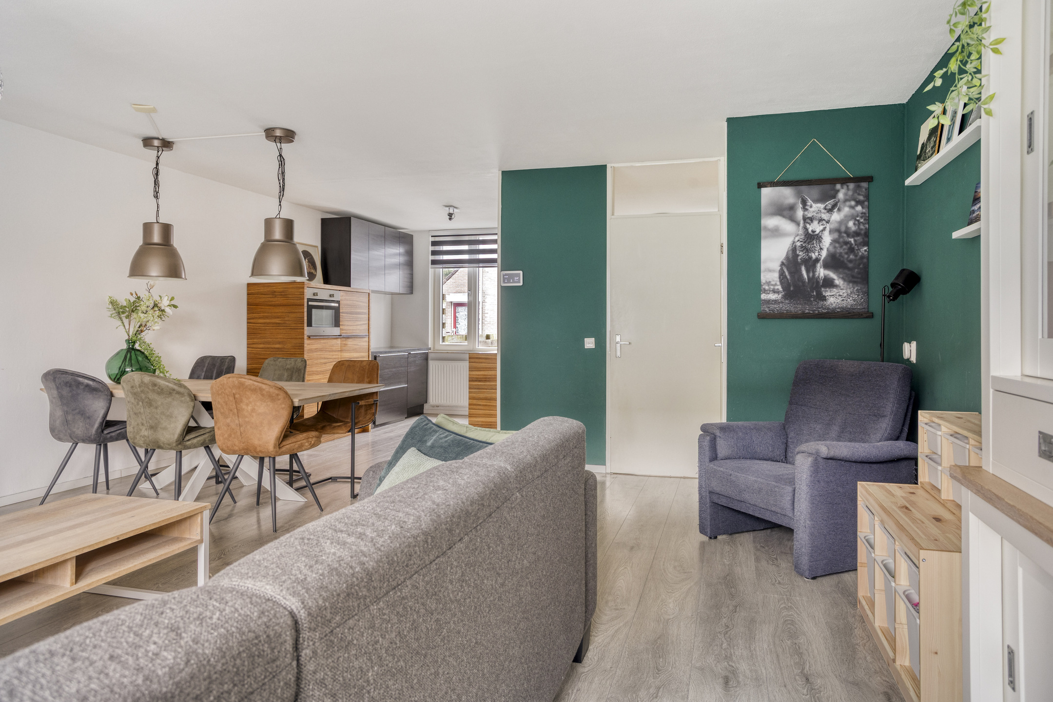 Begane grond: entree/hal; met toilet en toegang naar bijkeuken/berging; tuingerichte woonkamer met deur naar tuin en provisiekast; open keuken voorzien van gasfornuis, afzuigkap, vaatwasser, koelvriescombinatie en vaatwasser.