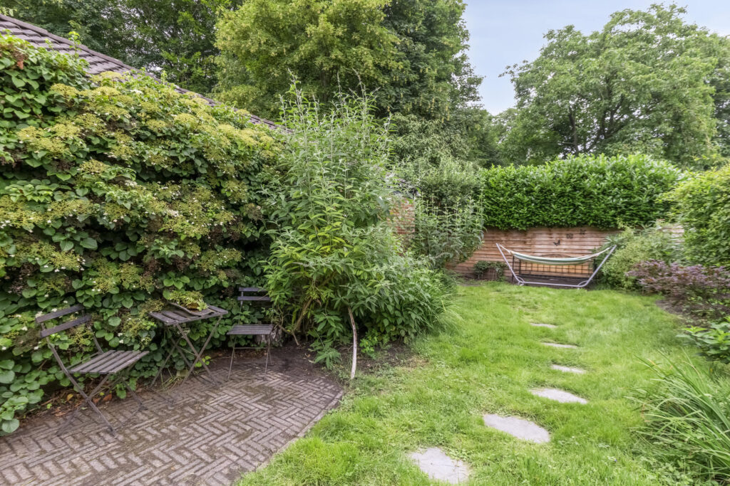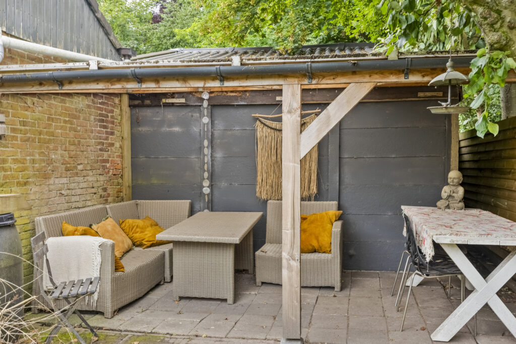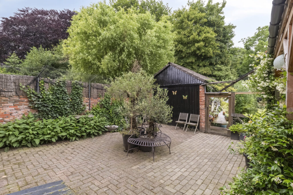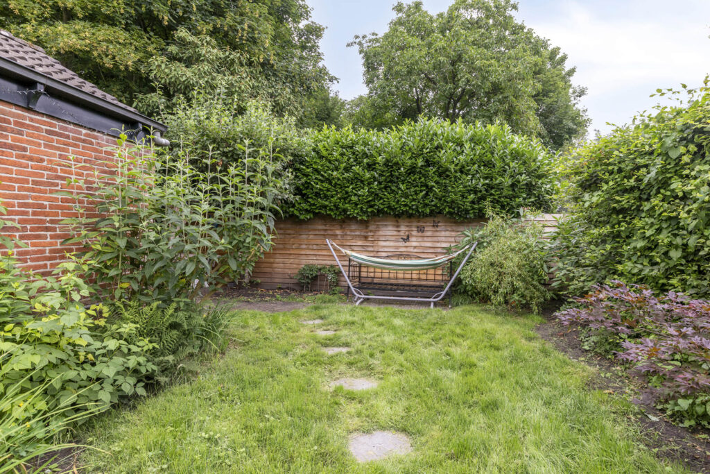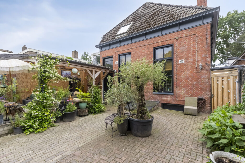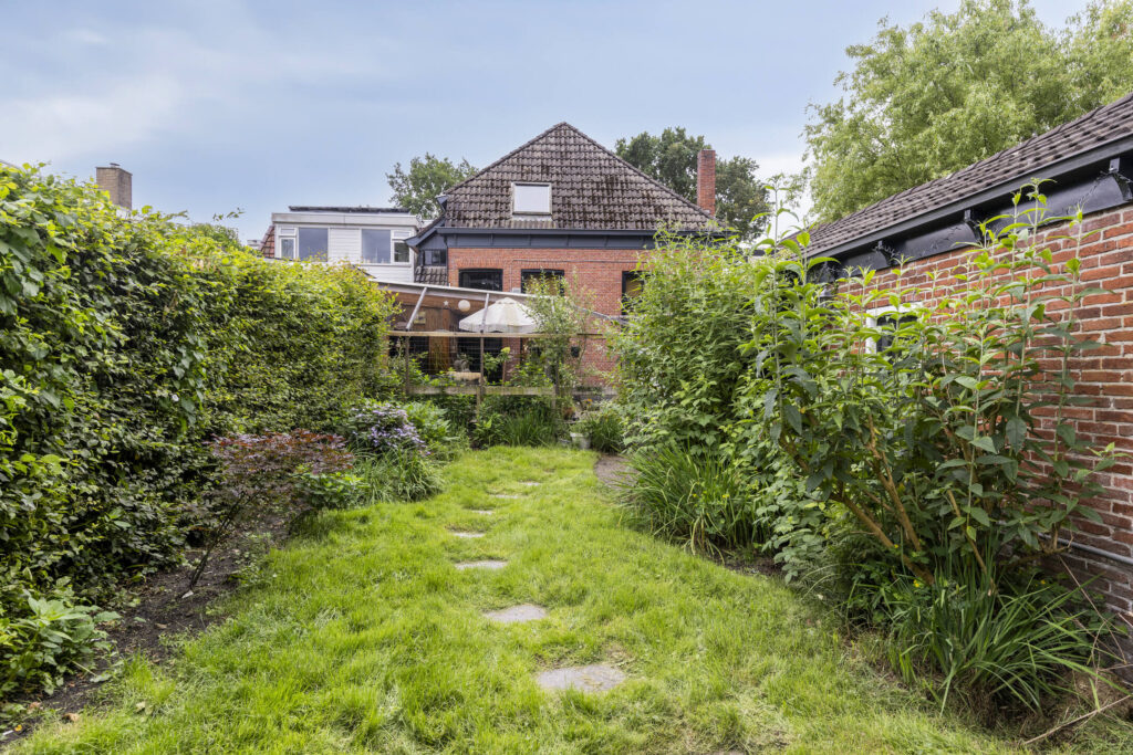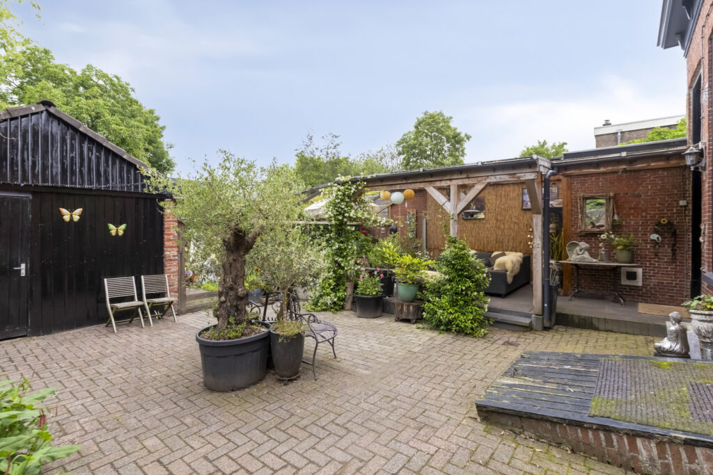 De achtertuin is bereikbaar via een praktische achterom aan de westzijde en beschikt over een vrijstaande stenen schuur – ideaal voor hobby, opslag of een creatieve werkplek.