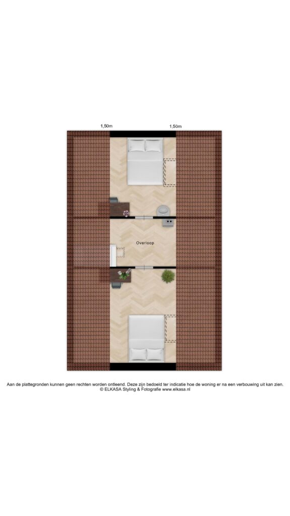 Tweede verdieping: overloop met cv-opstelling; twee ruime slaapkamers met meerdere dakramen.