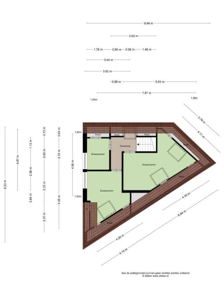 Tweede verdieping: overloop; drie slaapkamers.