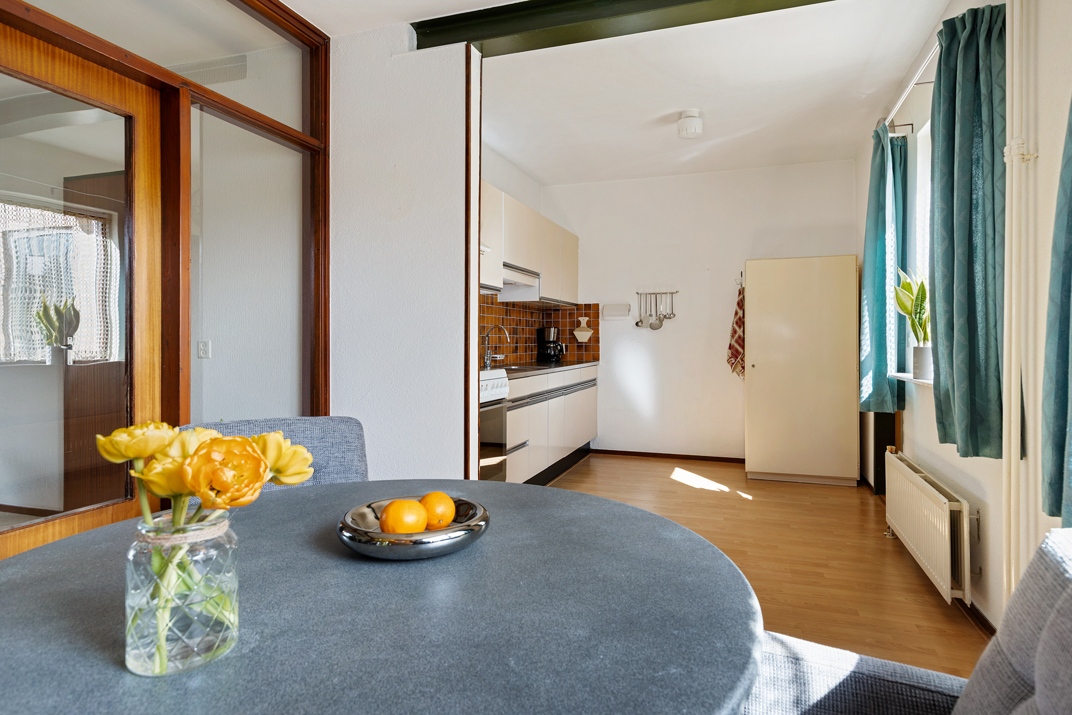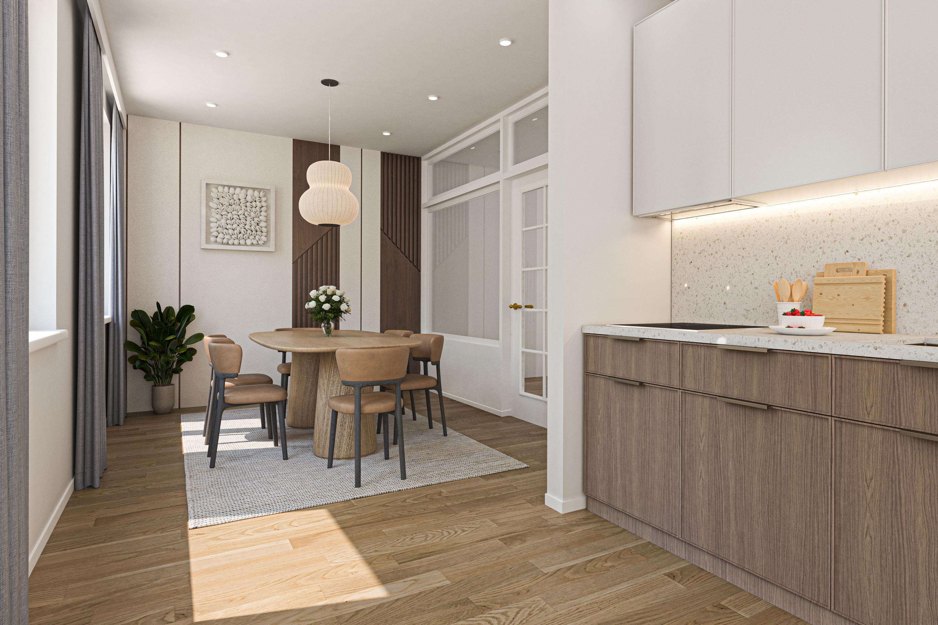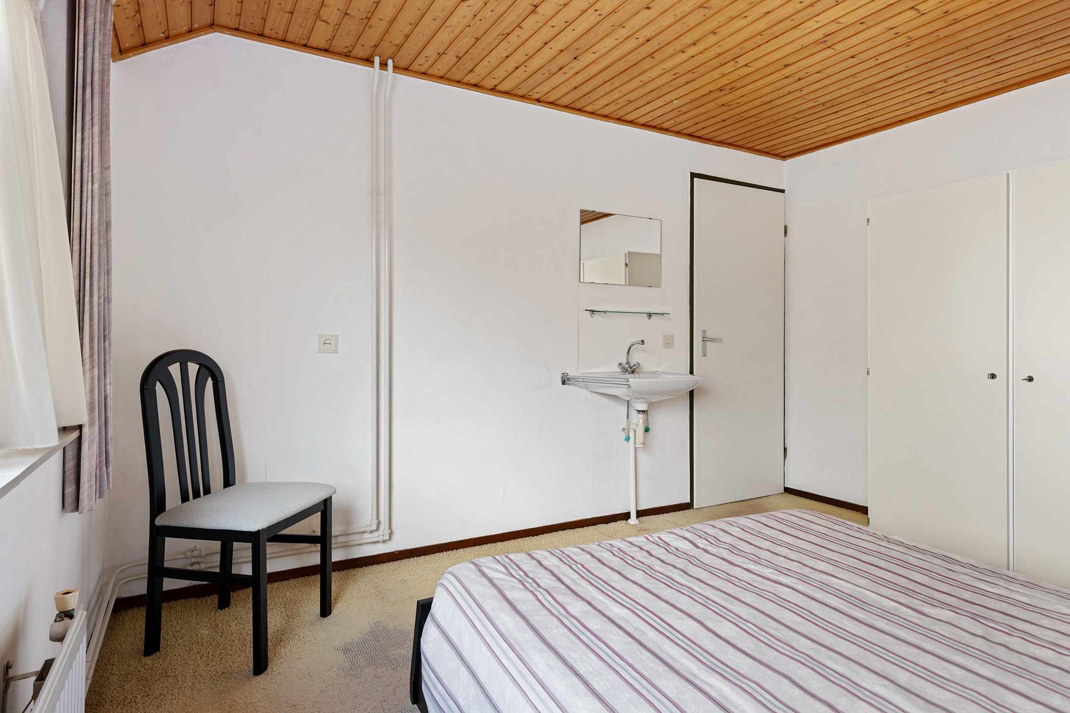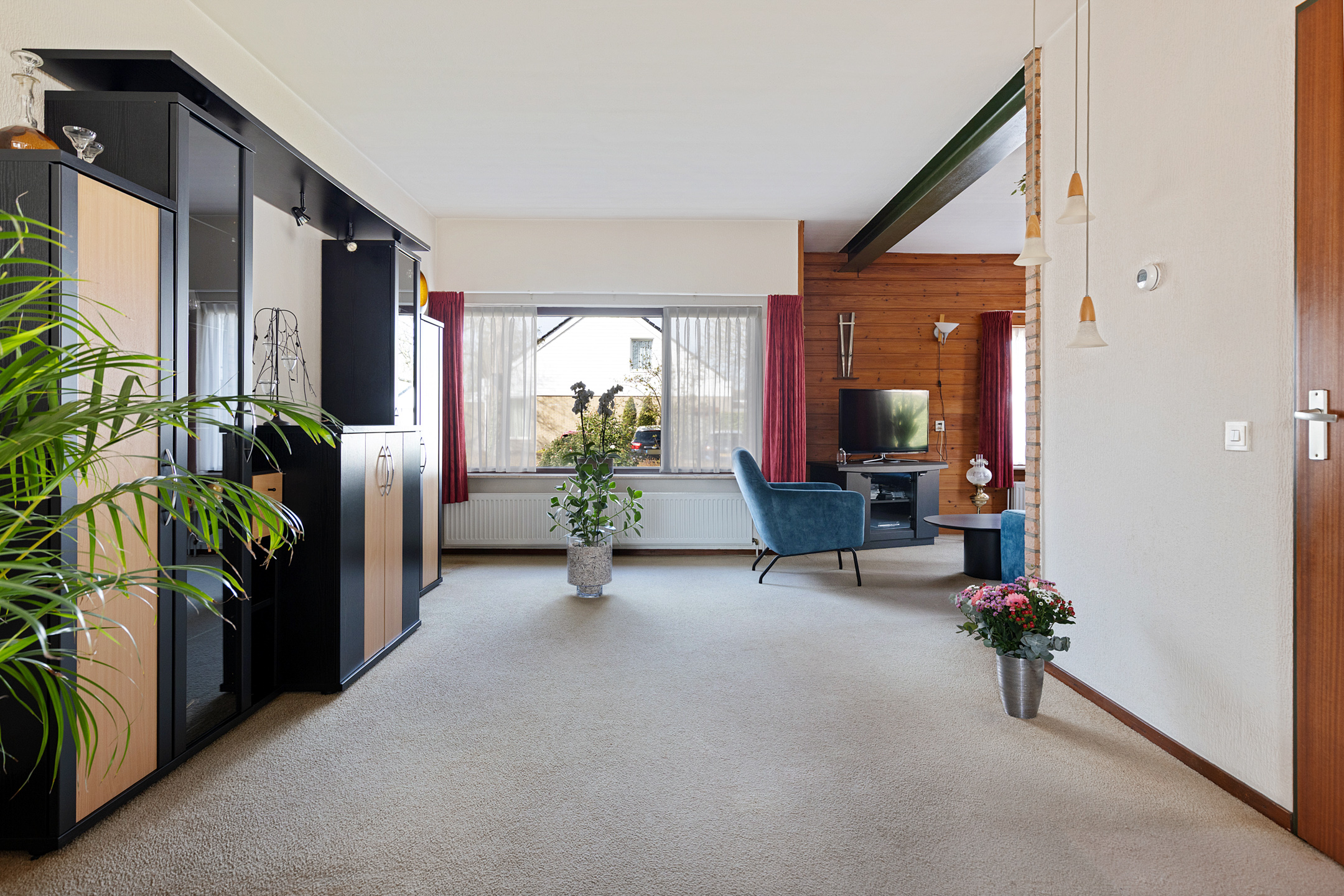 De indeling van de woning is onder andere op de begane grond royaal, speels maar zeker ook functioneel of praktisch te noemen. Om te beginnen de woonkamer aan de straatzijde. Heerlijke maatvoering in een Z-vorm die middels een oorspronkelijke ‘Engelse suite’ in verbinding staat met de woonkeuken. De woonkeuken beschikt over een eenvoudige inrichting maar staat in een rechtstreekse verbinding met de bijkeuken. Het geheel wordt op de begane grond gecompleteerd door de ontvangsthal met eenvoudig toilet en trapopgang naar de eerste verdieping. Op de eerste verdieping in totaal vier slaapkamers, allen rechtstreeks toegankelijk vanaf de overloop. Ook de eenvoudige badkamer is op deze woonlaag gesitueerd. Een vlizotrap leidt tot slot naar de bevloerde zolderberging.