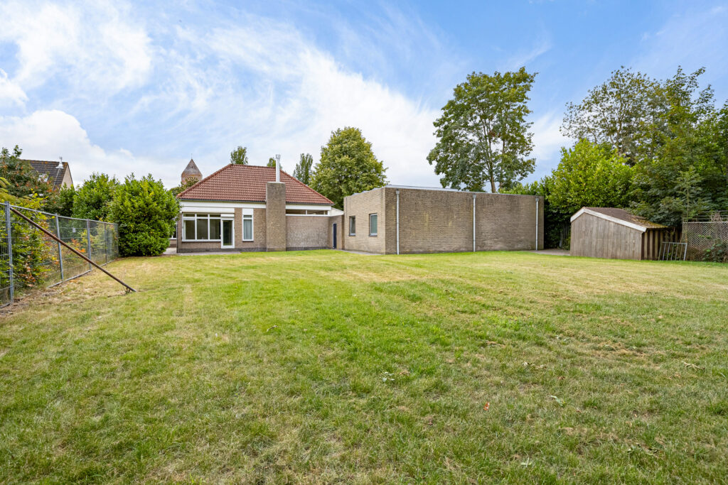 De hoofdentree van de voormalige school draagt nog steeds dezelfde functie en leidt naar een royale ontvangsthal. Vanuit deze ruimte zijn beide woningen te bereiken. In de eerste plaats die aan de straatzijde. Inderdaad, met vanuit de woonkamer zicht op de kerktoren. Verder kenmerkt deze ruimte zich door de pelletkachel, schuifpui naar terras en de open - moderne - keuken. De moderne keuken beschikt over een spoeleiland annex eetbar en diverse inbouwapparatuur. Afhankelijk van hoe de koper de ruimtes gaat verdelen beschikt deze woning over drie slaapkamers, een nette badkamer en een ruime bijkeuken met buitendeur. De tweede woning is aan de achterzijde gesitueerd en beschikt over een grote leefruimte. Opvallend hier is de aanwezigheid van een sfeervolle houtkachel en aangrenzende veranda. Een nette keuken en badkamer completeren het geheel samen met de slaapkamer aan de tuinzijde. Let op, een eigen entree voor de woning aan de achterzijde is relatief eenvoudig te realiseren. Tot slot op het gebied van duurzaamheid. De spouwmuren zijn nageïsoleerd, er is sprake van dak- en glasisolatie waarbij er ook twaalf zonnepanelen zijn geplaatst!