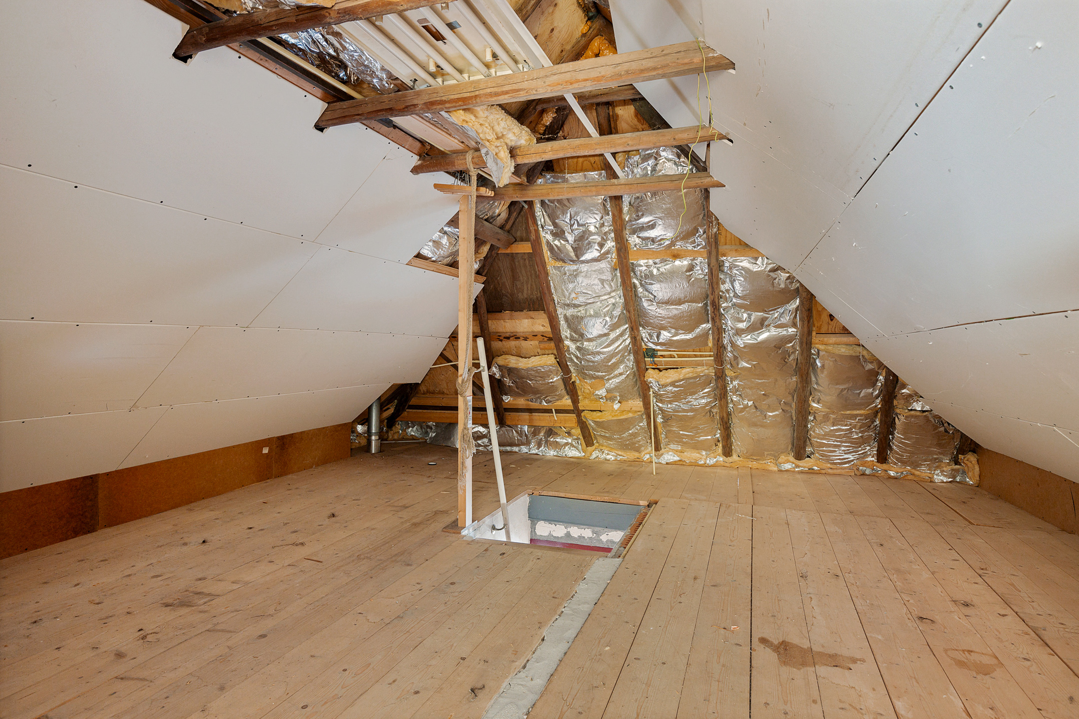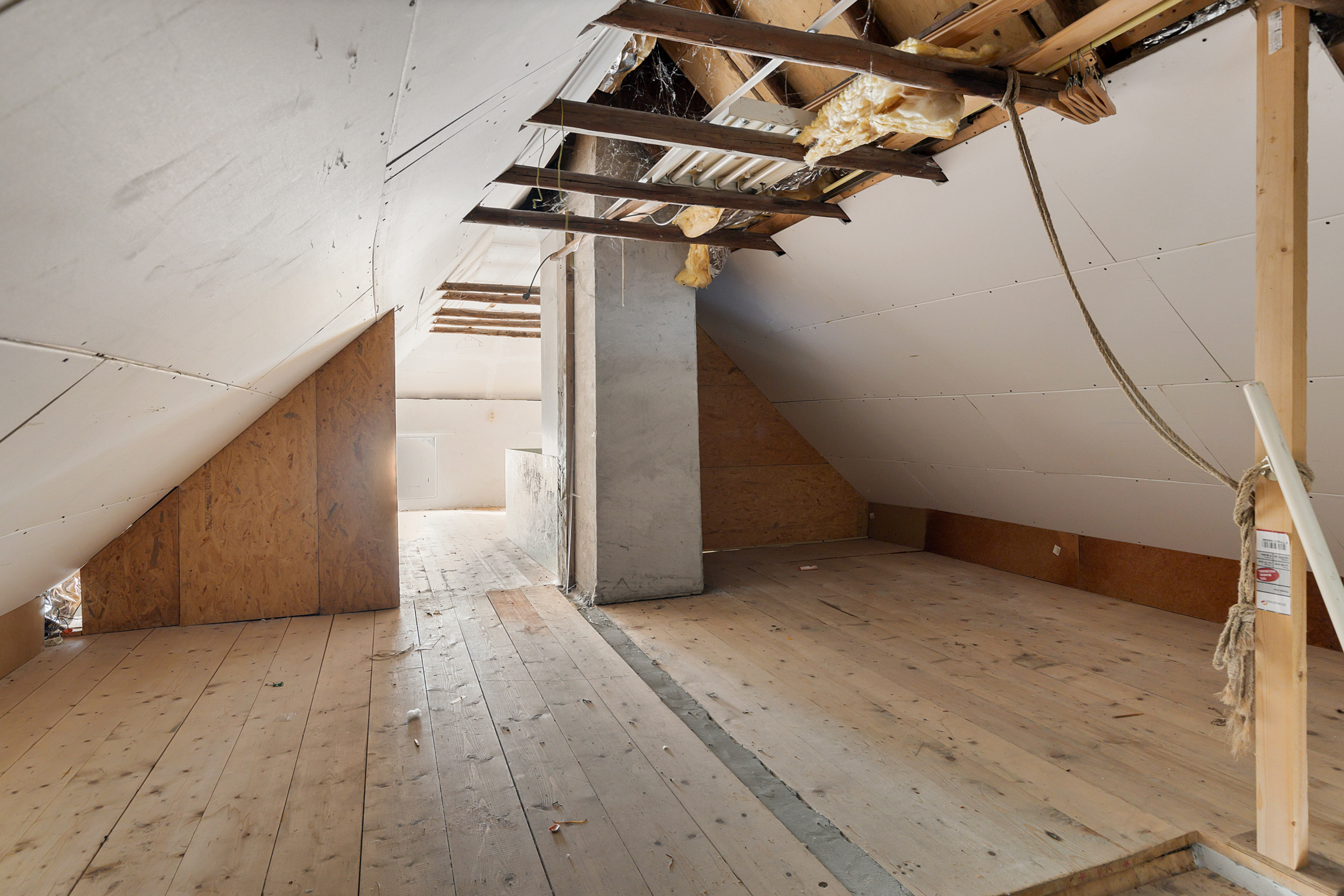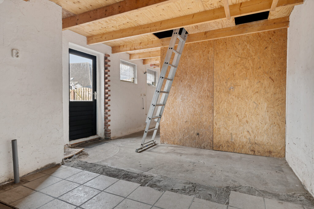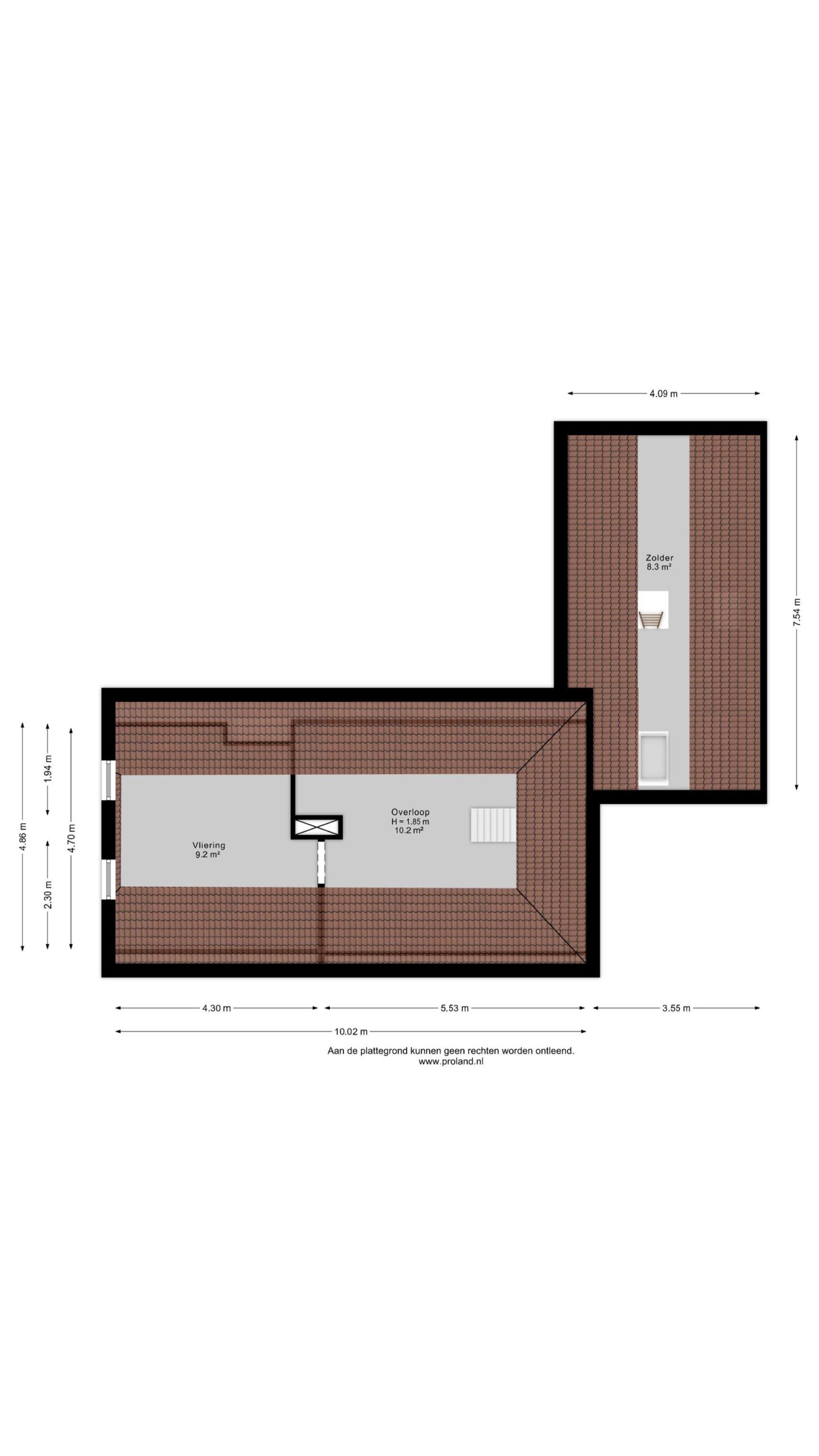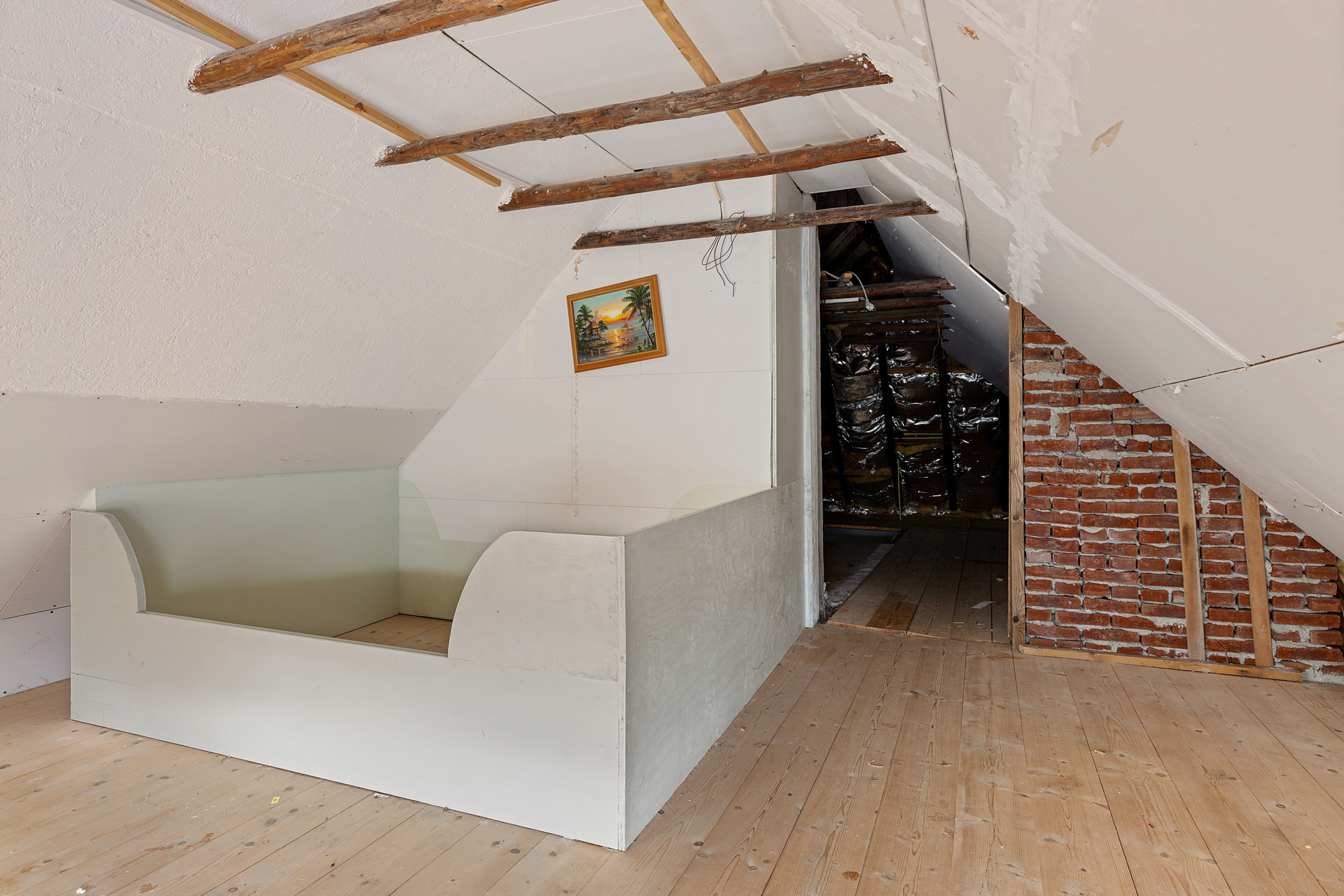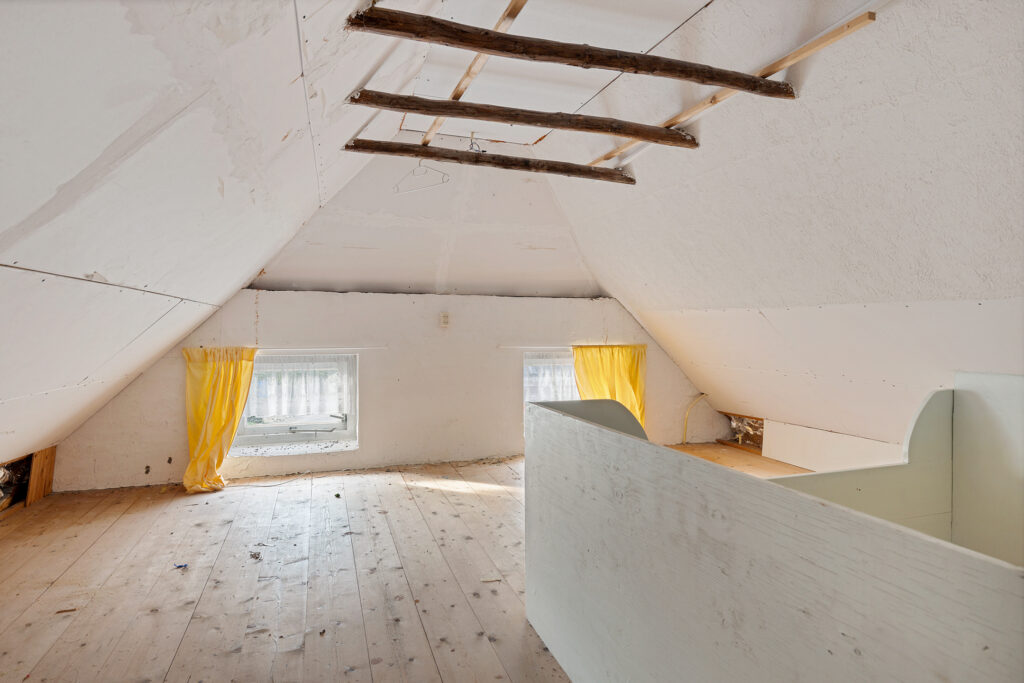 Middels vaste trap te bereiken overloop (ca. 10 m²) met aangrenzende vliering (ca. 9 m²).