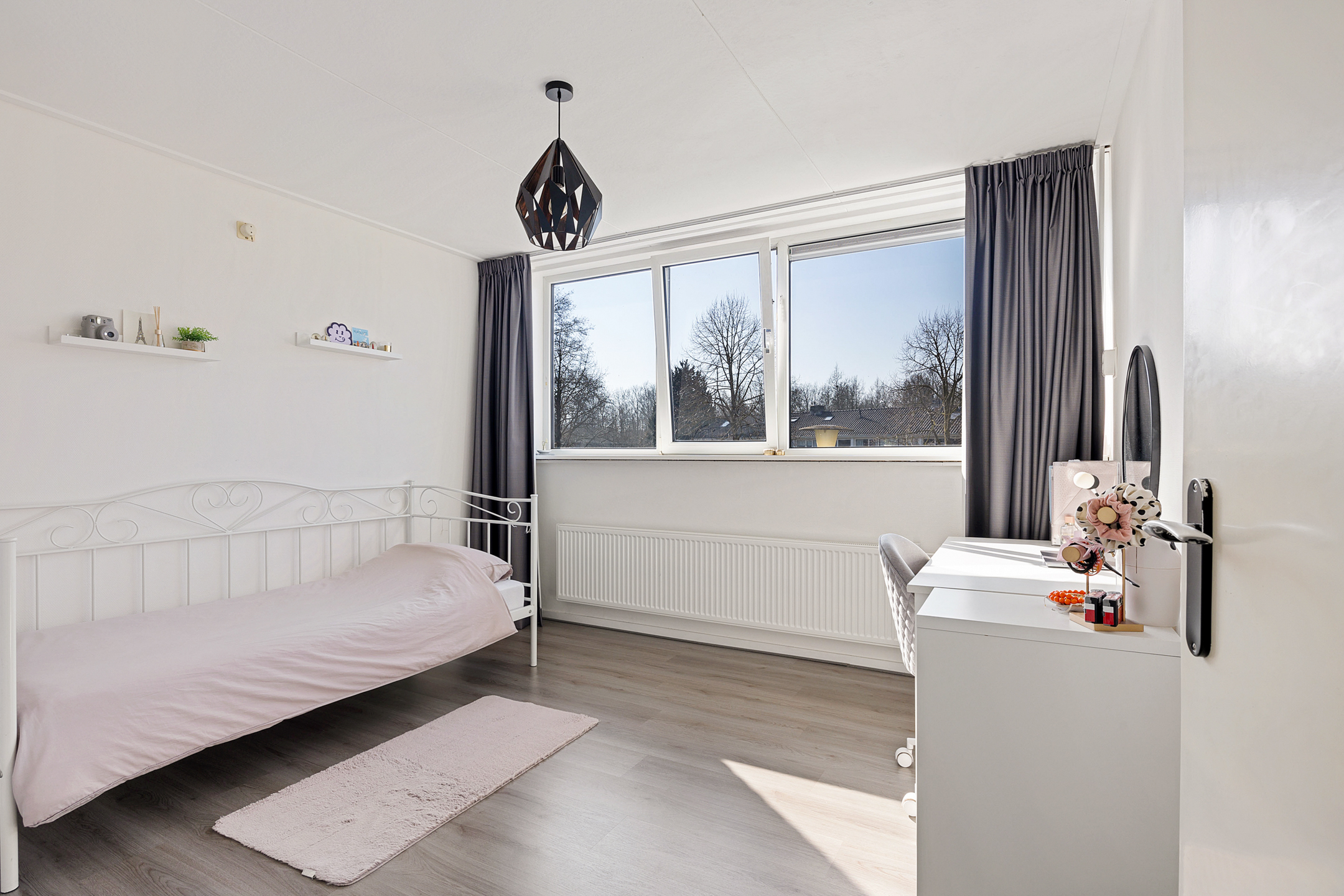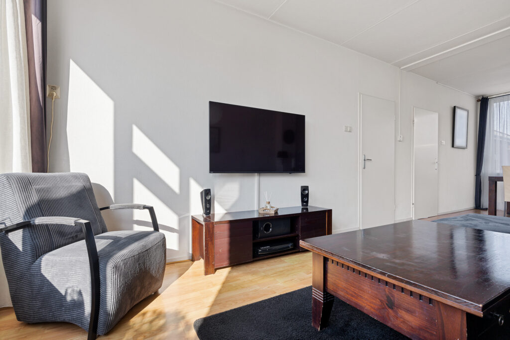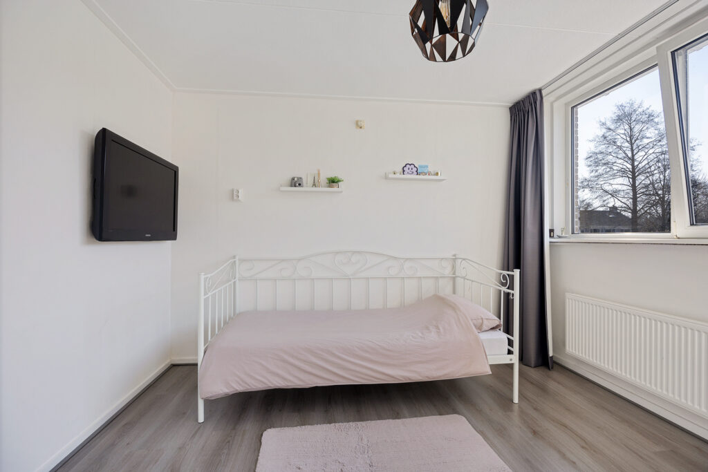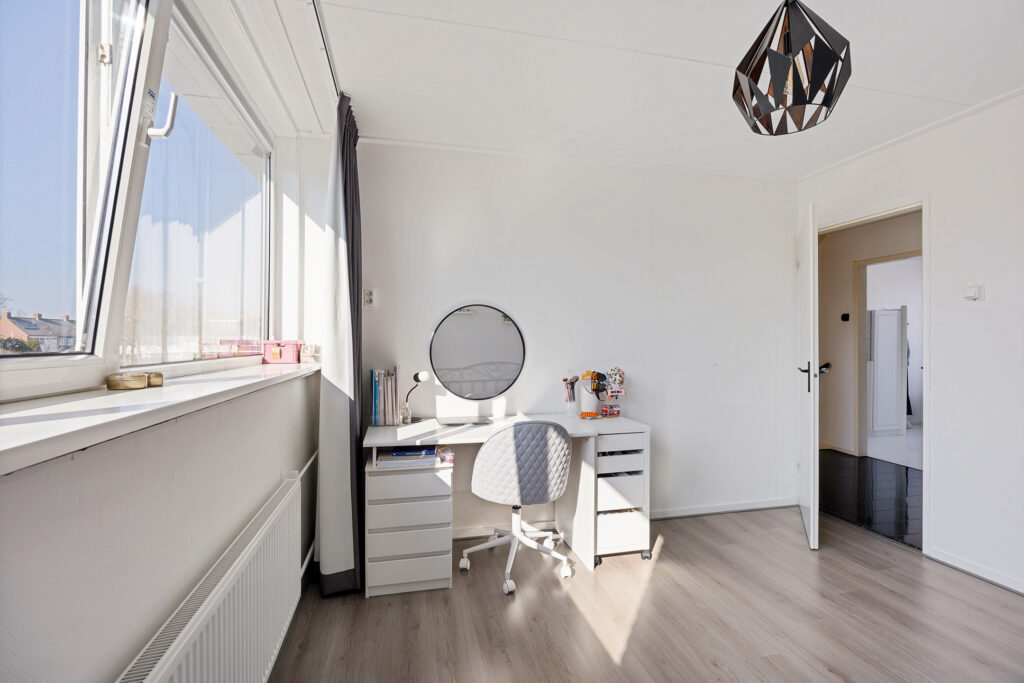 De indeling is naast royaal zeer functioneel te noemen. Denk aan de woonkamer, type door-zon met veel lichtinval. Aan de tuinzijde de dichte keuken, voorzien van een nette inrichting met tuindeur. Het geheel wordt op de begane grond gecompleteerd middels een toilet en de trapopgang naar de eerste verdieping. Op deze verdieping maar liefst vier ‘echte’ slaapkamers en een eenvoudige badkamer. Een vaste trap leidt vanaf de overloop naar de tweede verdieping. Ook hier een overloop met was- en stookruimte met aansluitende de nader af te werken vijfde slaapkamer met royale dakkapel.