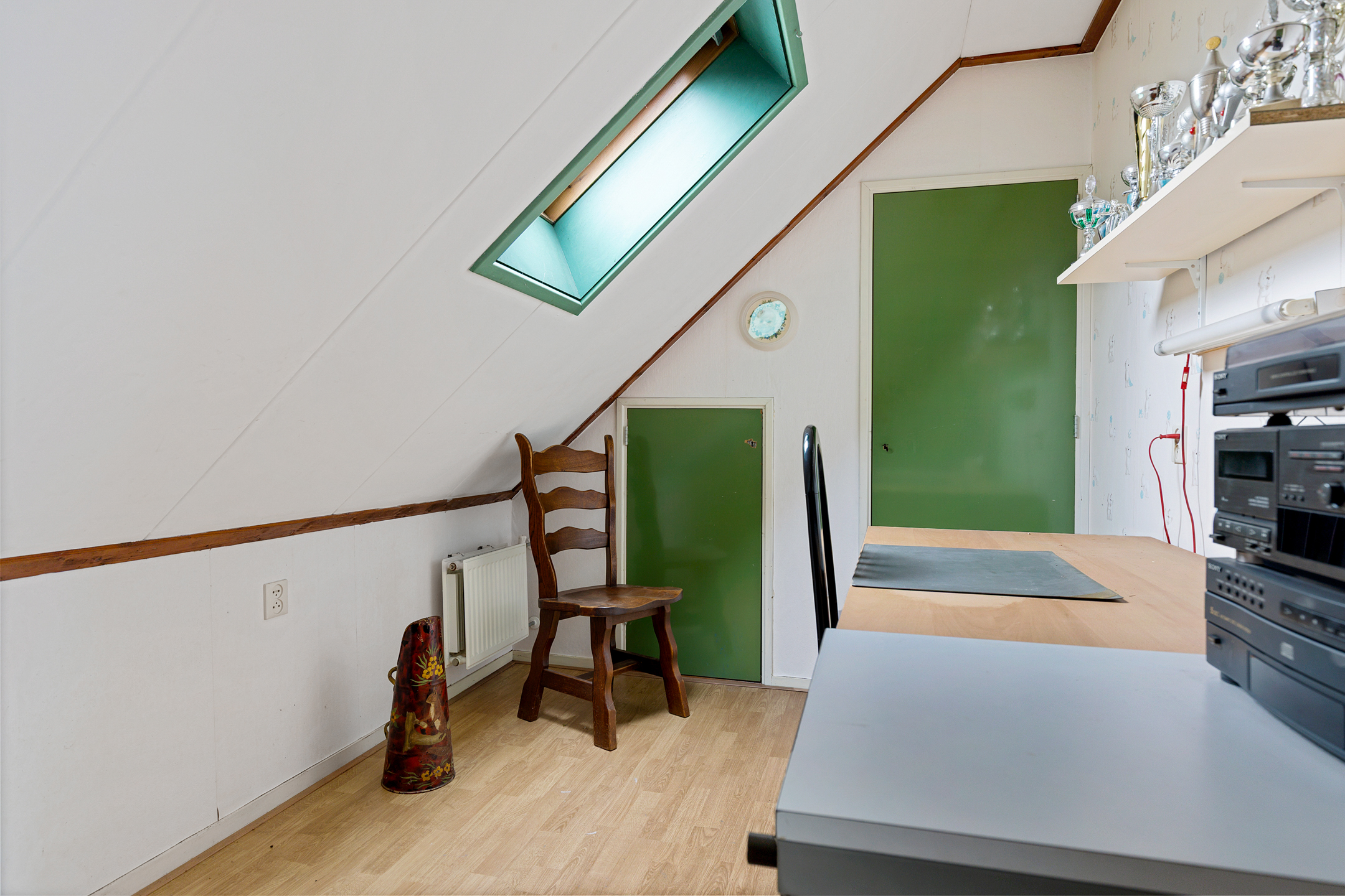 De indeling van de woning kent op de begane grond een fraaie ontvangsthal, die toegang biedt tot zowel de woonkamer enerzijds en een slaapkamer anderzijds. De woonkamer staat in open verbinding met de keuken, die is voorzien van een passende en eigentijdse inrichting met inbouwapparatuur. Daarnaast bevindt zich op de begane grond een eigentijdse badkamer met douche en wastafelmeubel. Het toilet is separaat en bereikbaar via de hal. In het achterste gedeelte van de woning zijn meerdere bergingen aanwezig, waarvan één voorzien van een werkbank. Via de centrale hal met trapopgang bereikt u de eerste verdieping. Hier bevinden zich drie slaapkamers, allen voorzien van laminaatvloeren en vaste kasten. De verdieping wordt gecompleteerd door een zolderberging aan de achterzijde van het woonhuis.