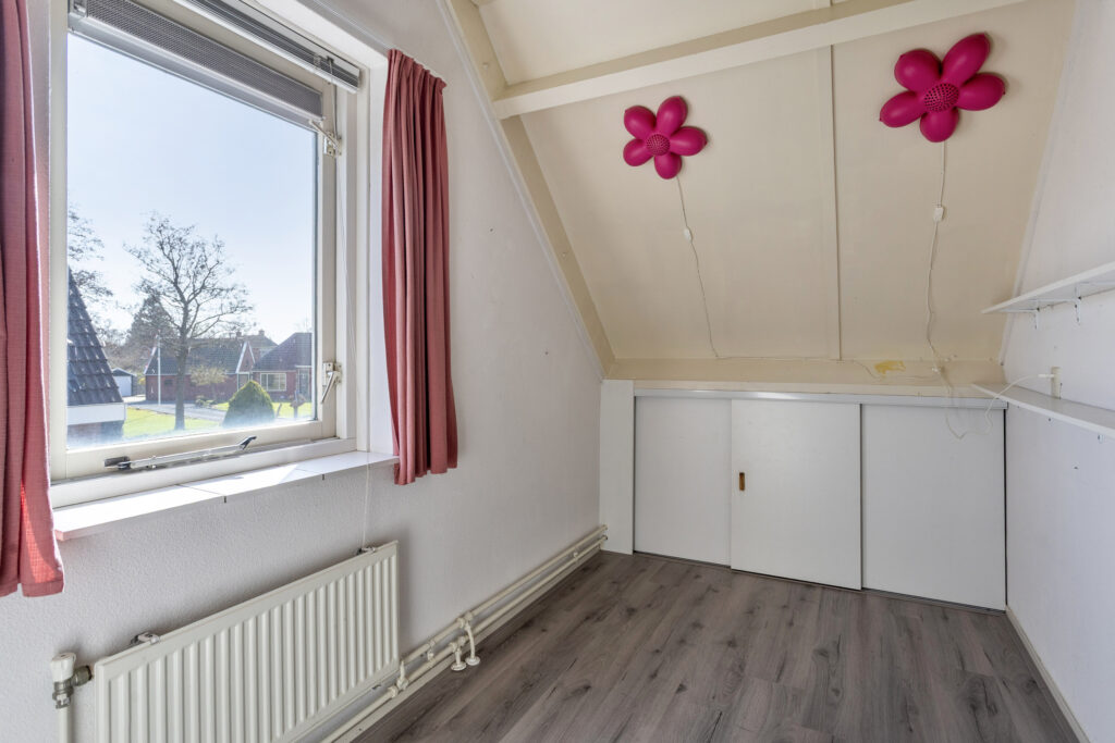 Middels een overloop op de verdieping toegang tot 3 slaapkamers van ca. 6, 8 en 13 m² en de badkamer. De badkamer van ca. 3 m² met een tweede toilet, wastafel en douche. Middels een vlizotrap op de overloop heb je toegang tot de bergzolder. De gehele bovenverdieping is voorzien van een laminaatvloer.