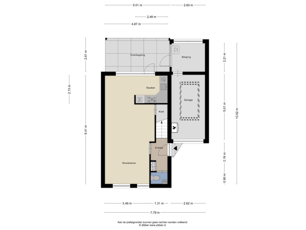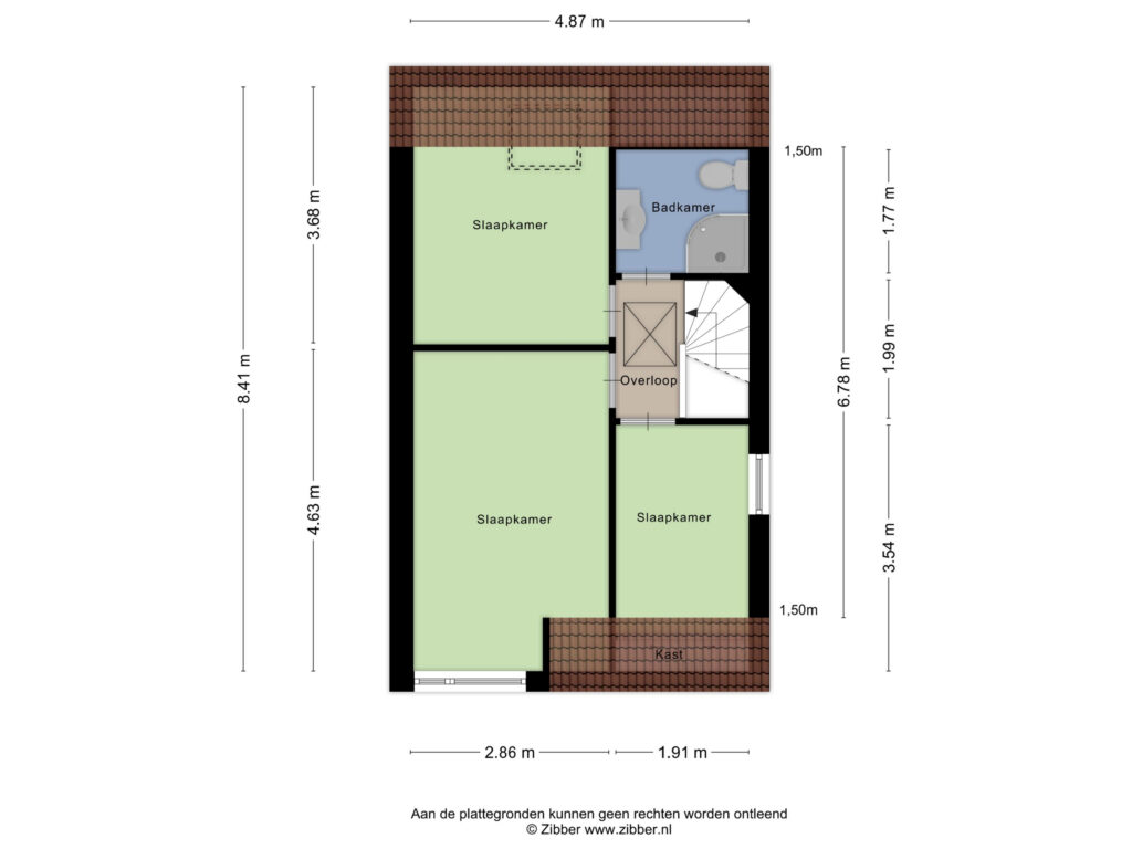 * Overkapping achterzijde 4.87 m bij 2.61 m