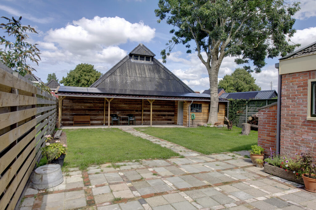 Op het terras is meer dan genoeg ruimte voor een heerlijke loungehoek en lekker buiten eten aan een grote tuintafel kan natuurlijk ook. Achter in de tuin vind je een vrijstaande houten berging (2,13 x 3,76) met aangebouwde terrasoverkapping (2,26 x 9,15) gedekt met 14 zonnepanelen. Mocht het toch niet zo heel erg warm zijn, dan kan je denken aan het plaatsen van glazen schuifpanelen in de overkapping om de ruimte winddicht te maken. Dan kan je het hele jaar genieten van het buitenleven.