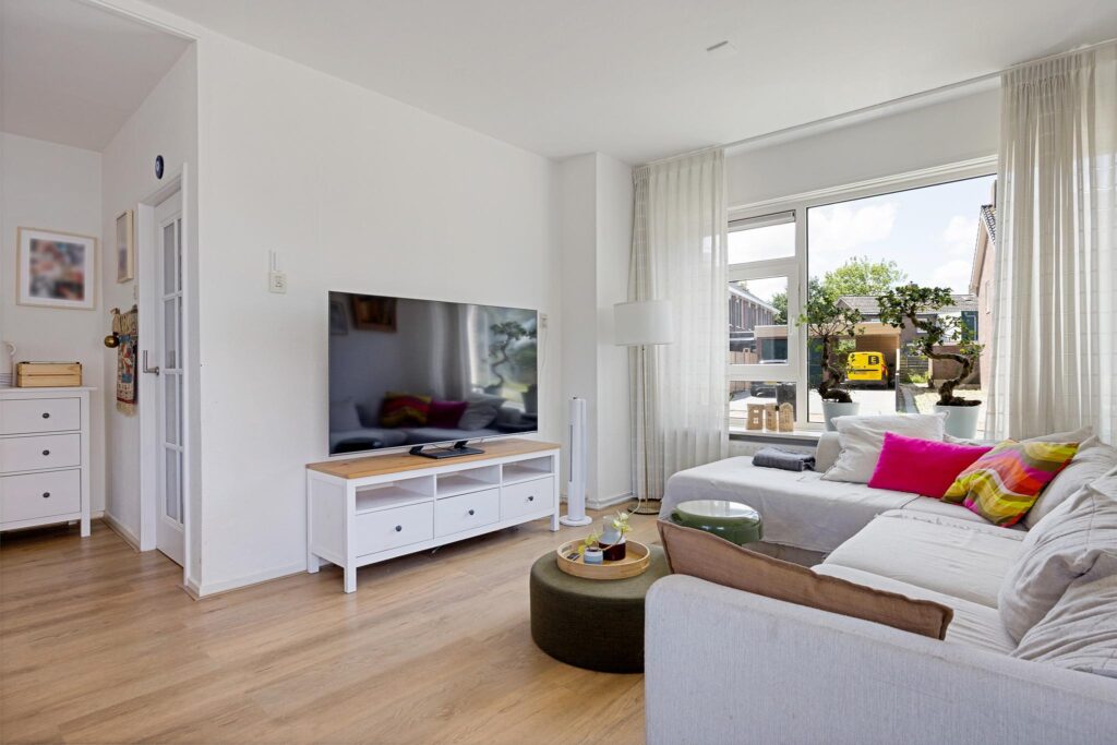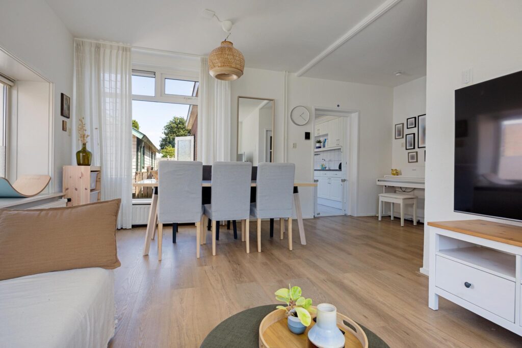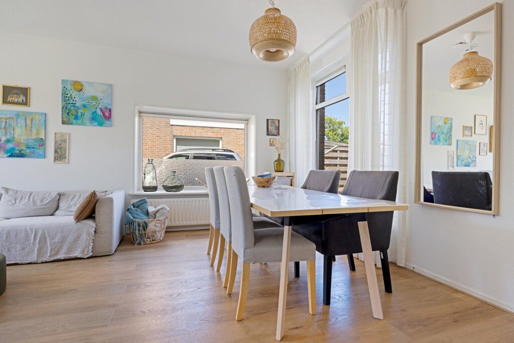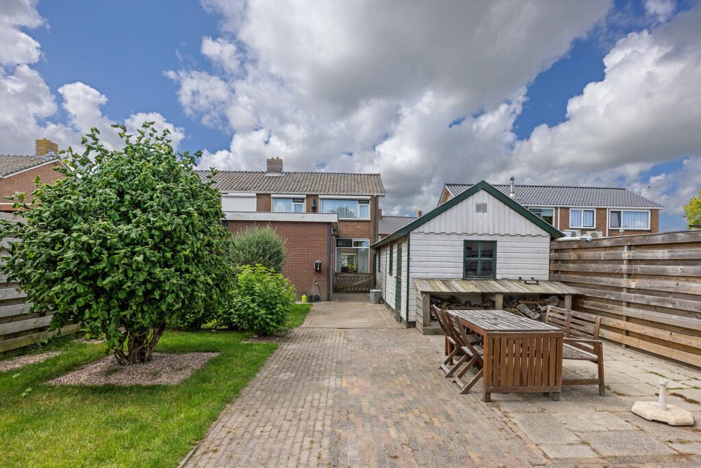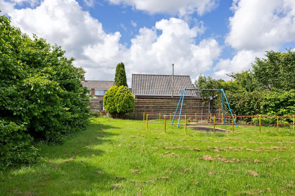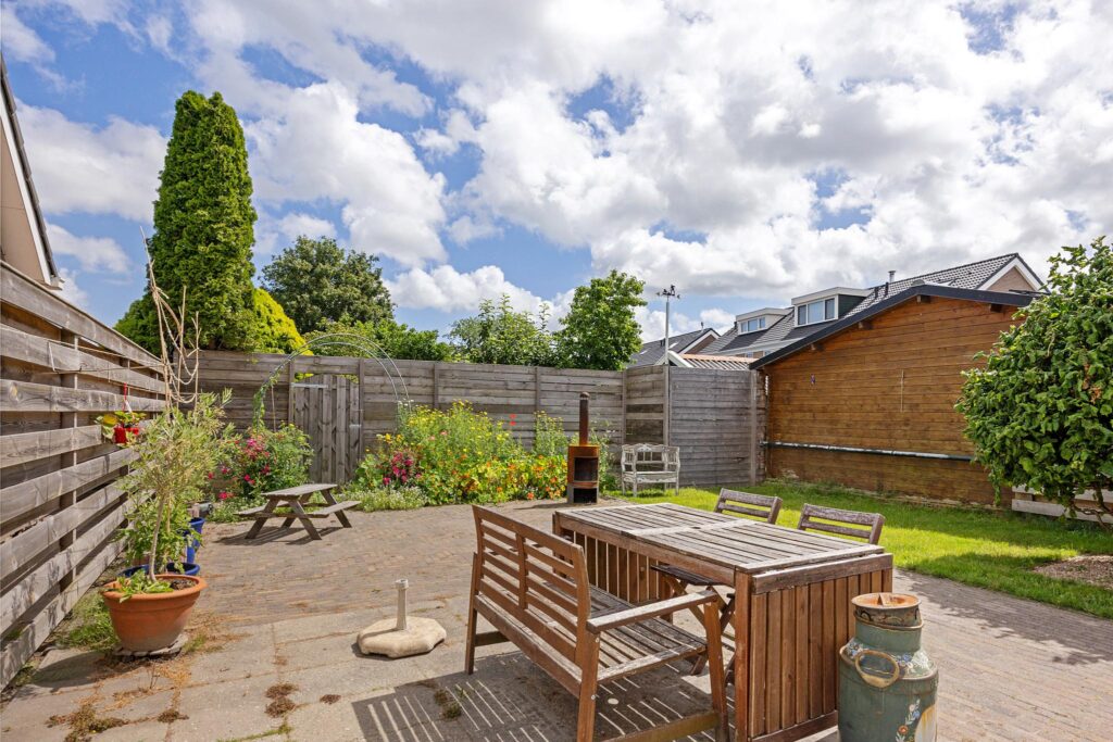 Op veilige loopafstand van deze dorpse voorzieningen bevindt zich de Prins Bernhardstraat, waar Brandsma De Jong op huisnummer 8 een heerlijke starterswoning te koop aanbiedt. Het betreft een 2-onder-1-kap woning, compleet met een uitgebouwde keuken en bijkeuken aan de achterzijde van de woning. Daarnaast beschikt het over een eigen oprit naar de vrijstaande houten garage, die met een maatvoering van bijna 24m2 royaal genoemd kan worden. Ook leidt deze oprit naar de verrassend diepe achtertuin met gazon, borders en een royaal zonneterras aan de achterzijde van de tuin.