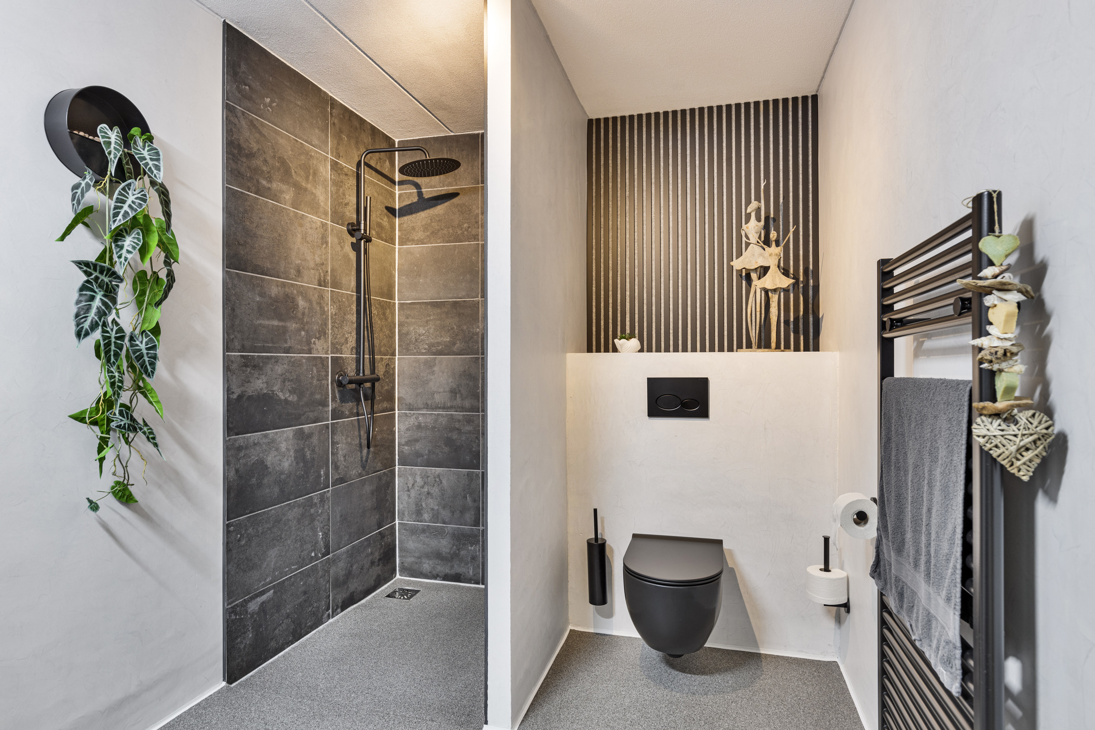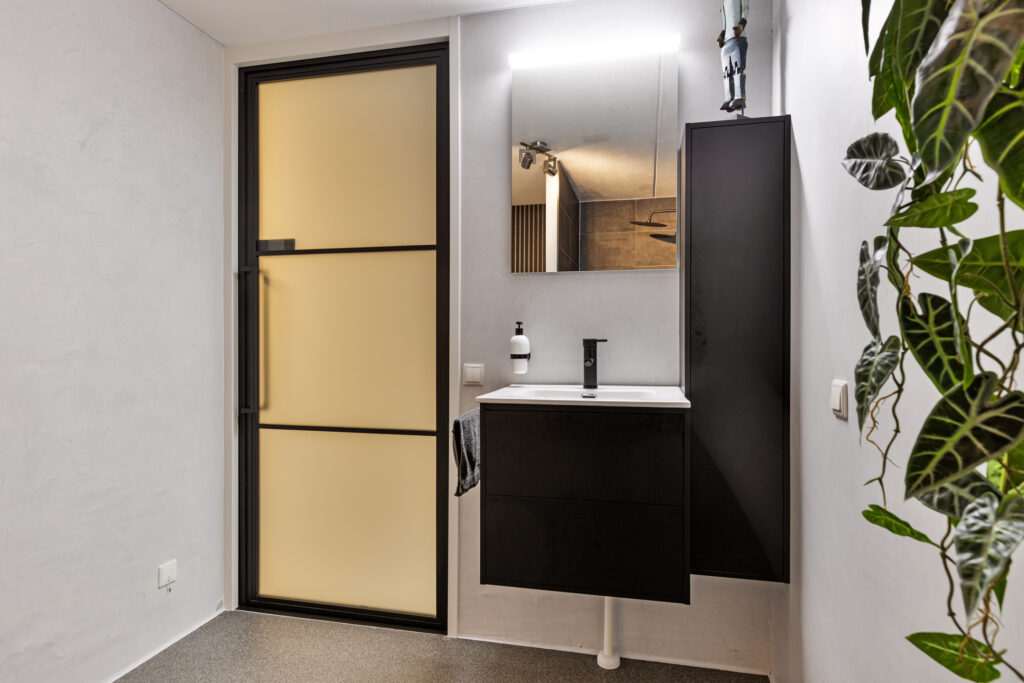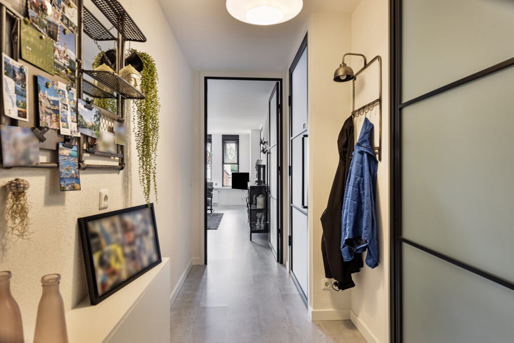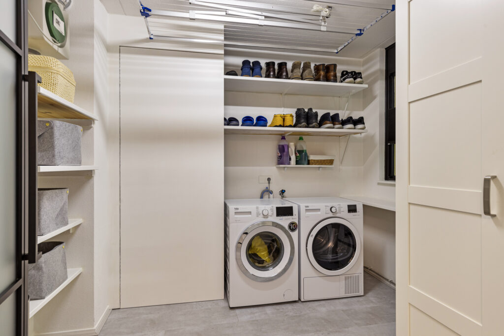 Entree/hal met een berging van ca. 8 m² met de CV opstelling en droger-en wasmachineaansluiting. Vanuit de hal tevens toegang tot de nette moderne badkamer van ca. 6 m² met toilet, inloopdouche en een wastafel met meubel.