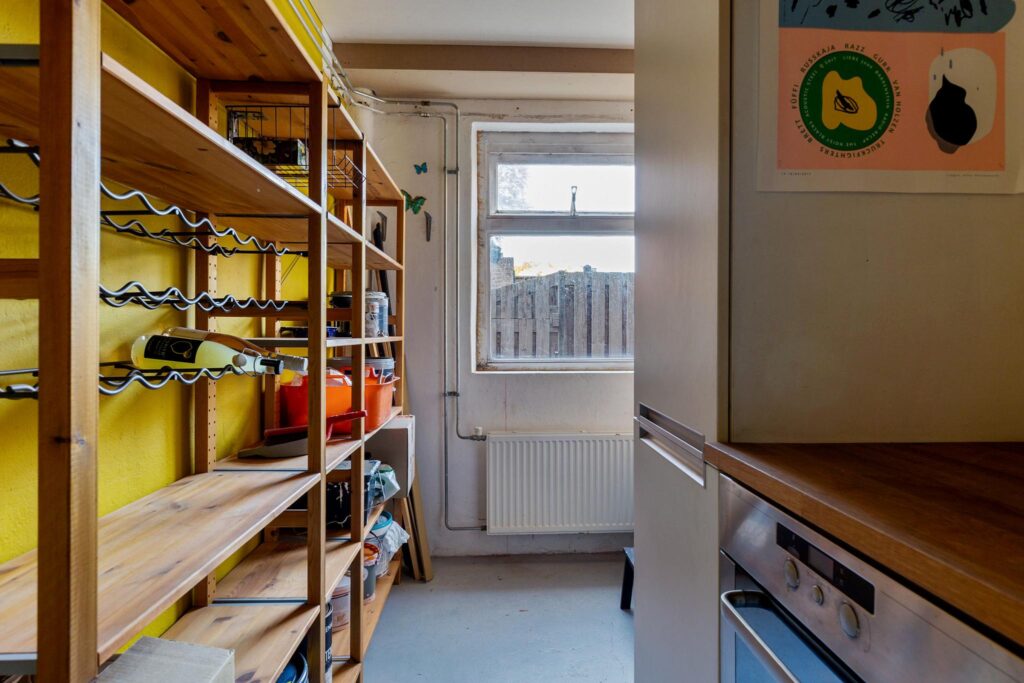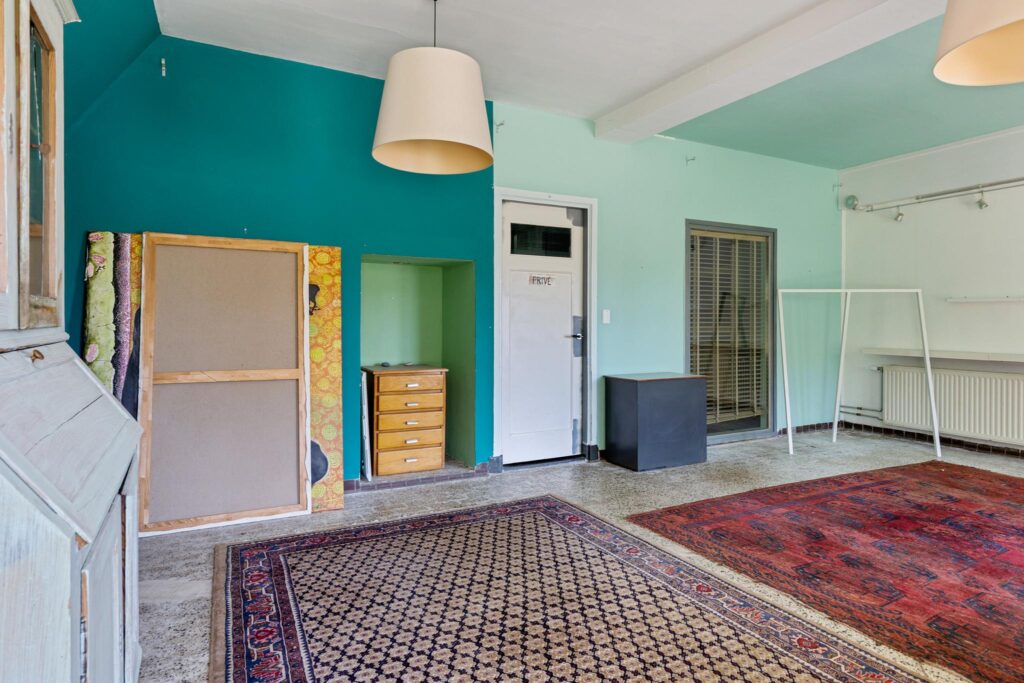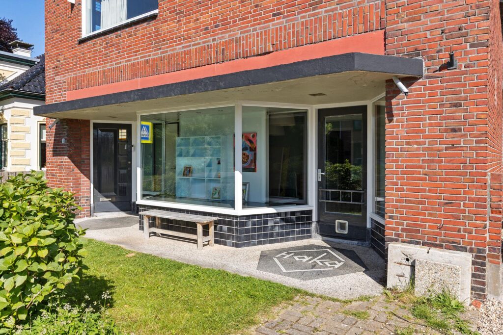 Aan de voorzijde bevindt zich een voormalige winkelruimte, waarbij de fraaie etalage nog intact is gebleven. Dit geeft het pand niet alleen een charmante uitstraling, maar biedt ook volop kansen voor bijvoorbeeld een atelier, praktijkruimte aan huis of kantoor.